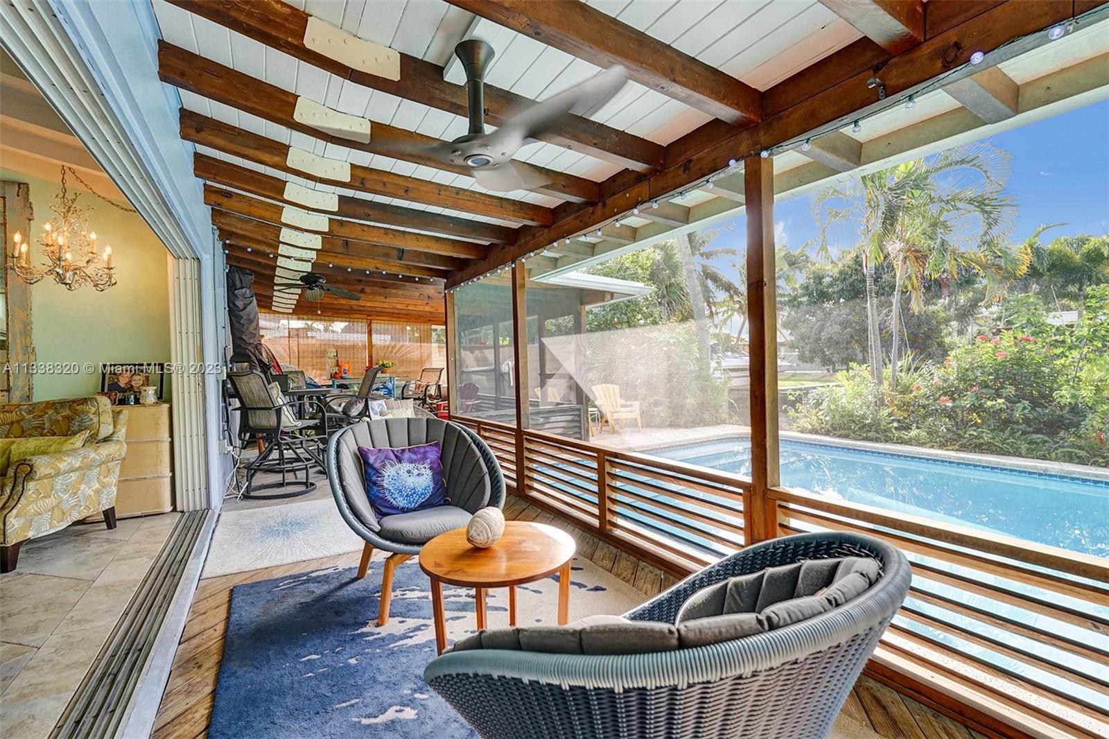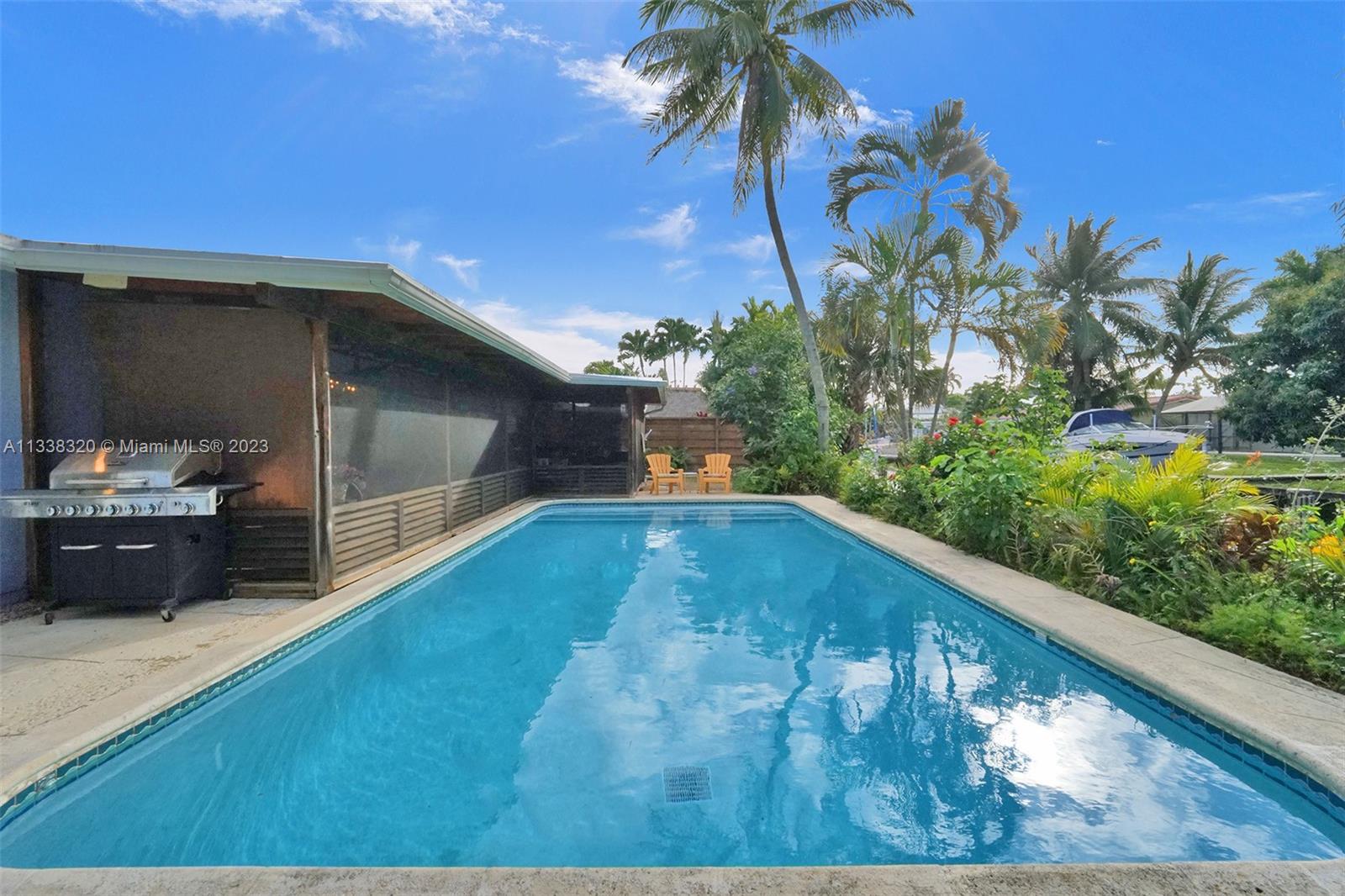 WELCOME TO YOUR WATERFRONT HOME! AIRBNB AND INVESTORS! This 2 bed 2 bath home with a 1 car carport and pool. House has been updated in the kitchen and bathrooms. Tile and terrazzo throughout the house except in one of the bedrooms. Hurricane windows throughout and open concept slider to the backyard (not hurricane rated). 65 feet of waterfront to put a boat. Pool has brand new equipment. Roof 5 years of life remain, new tankless water heater, and multiple split AC units throughout the house that push out 6 tons of AC. Just a 40 min boat ride to the ocean and 15 min to downtown Las Olas, no fixed bridges! Conveniently located near I-95, downtown Ft Lauderdale and the beach! Limited traffic street. Owner's are very motivated to sell.