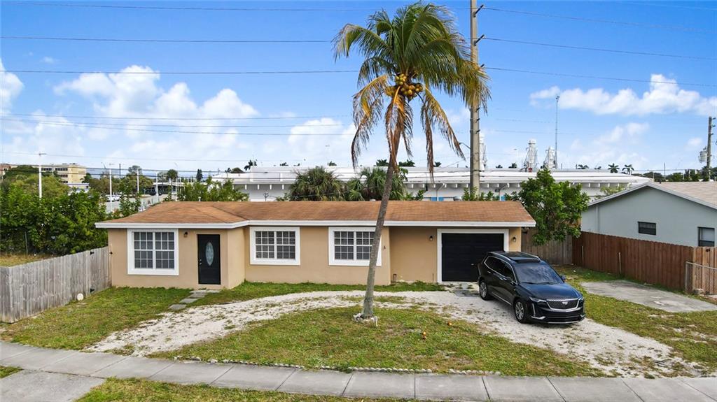 Great single family home nestled on a HUGE oversized fenced in corner lot. This property is located just West of Federal Highway and features tile flooring throughout, stainless steel appliances and large garage with tons of storage. This large corner lot has plenty of room for expansion, pool addition or parking a boat/RV. This home is currently tenant occupied. Perfect for owner user or investor.
