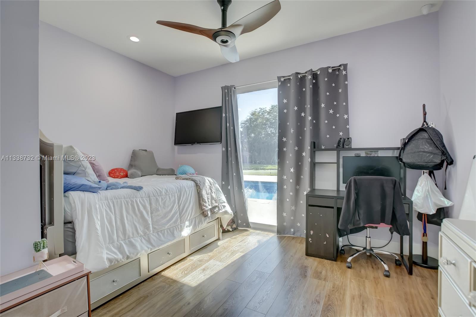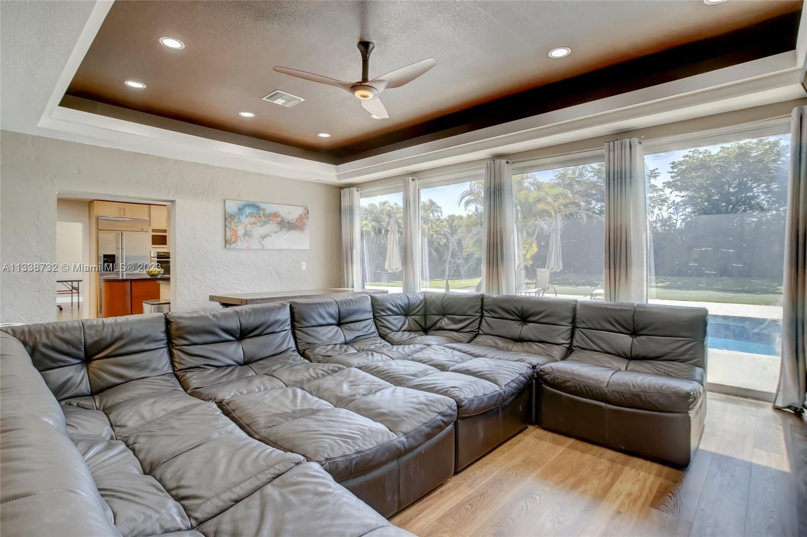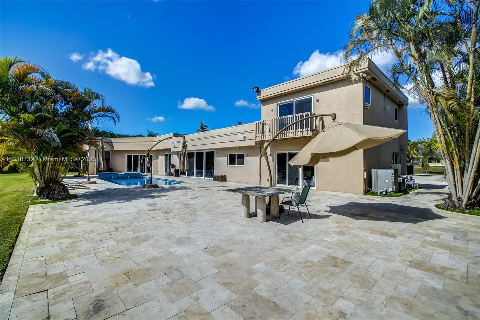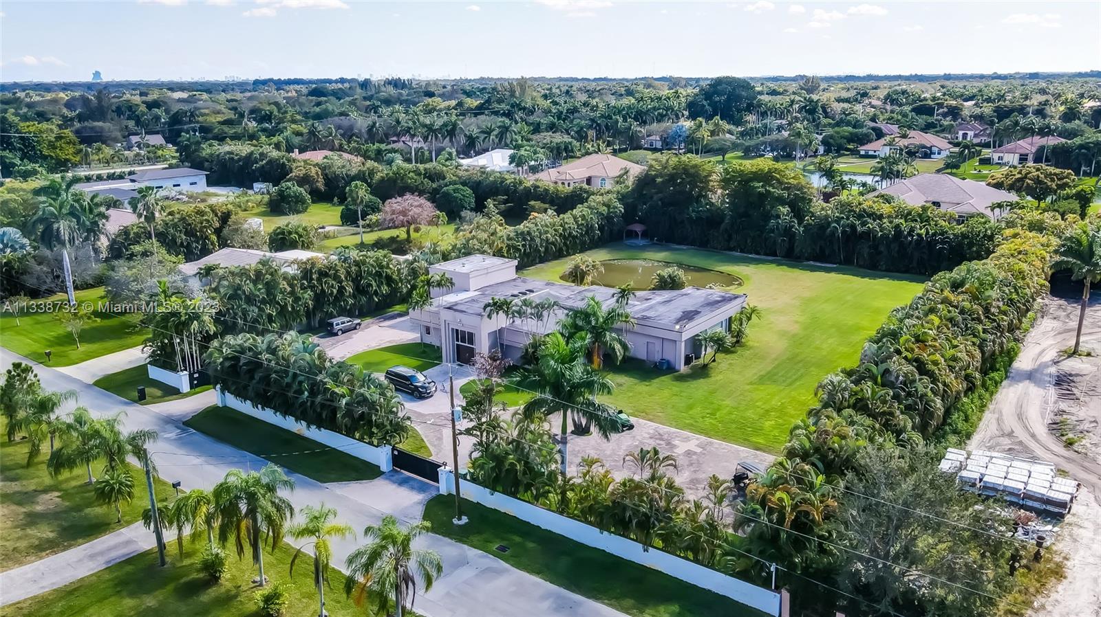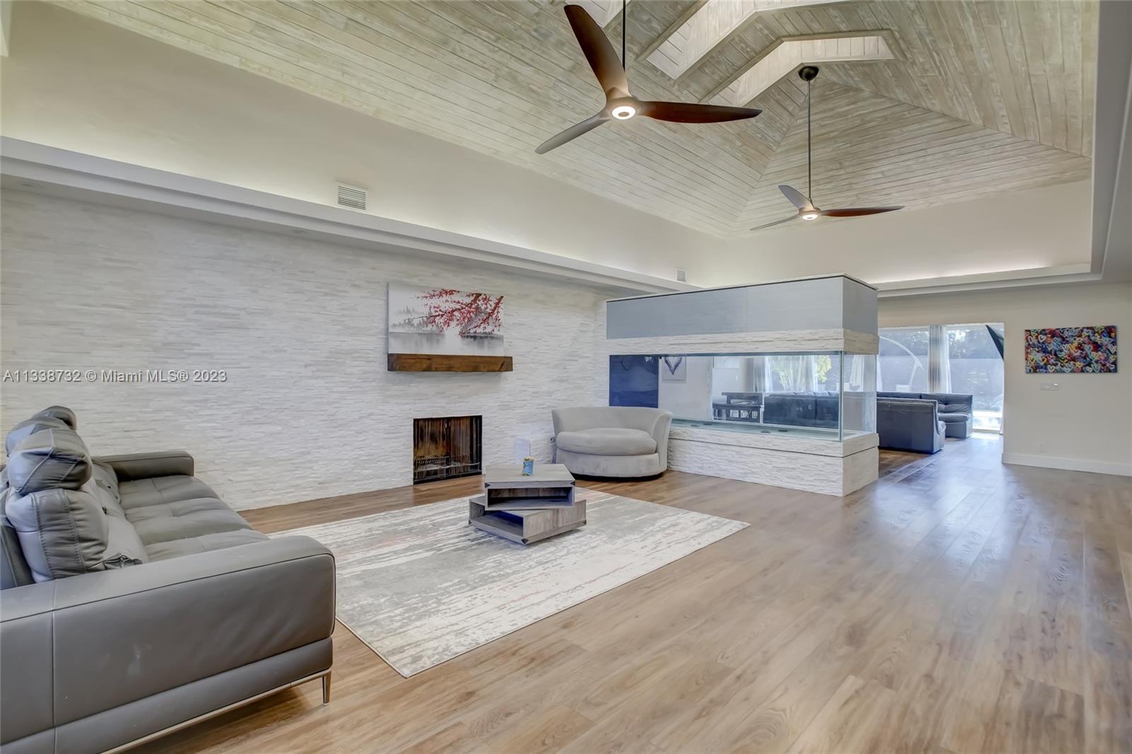 Private gated estate is an entertainers dream home on 1.5 acres of land in the heart of Davie. 5/3.5 baths + a bonus room that can be an office or gym featuring neutral laminate flooring in all main living areas and bedrooms. Huge open spaces including oversized great room with stone wall, and fireplace. Eat in kitchen with extended snack bar, granite counters, and wood cabinets. Expansive first floor master suite with 2 big walk-in closets, and master bath that features dual sinks, soaking tub, and step-in shower. Big secondary bedrooms with redone bathrooms. Amazing salt water pool and spa surrounded by endless travertine pavers. Impact windows except for the glass block. Expansive driveway for all of your cars, toys, boats, or RV. No HOA, minutes from 595 and 75.