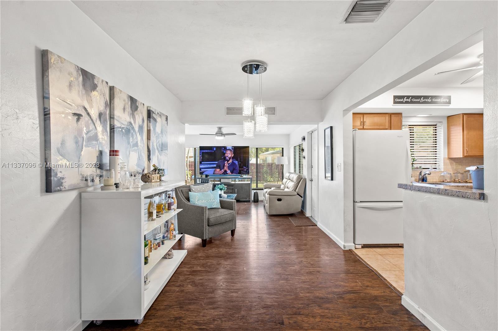 Located in the heart of Hollywood, housed on an oversized lot, is a lovely and modern 3 bed 2 bathroom, single family home. Greeted by an impressive front and great curb appeal, the driveway accommodates two vehicles. Upon entering, there is a grand living area featuring large landscape windows. Further inside, there is a separate living room, formal dining and family room. Kitchen is equipped with great appliances, granite counters and plenty of cabinets. The laundry room can function as additional storage or art studio or additional entertainment. The backyard offers a large setup for outdoor furniture and a pool. Wooden fence throughout the back for privacy along with fruit trees. The neighborhood is well managed and one may think you are in the gables. ACCEPTING BACK UP OFFERS
