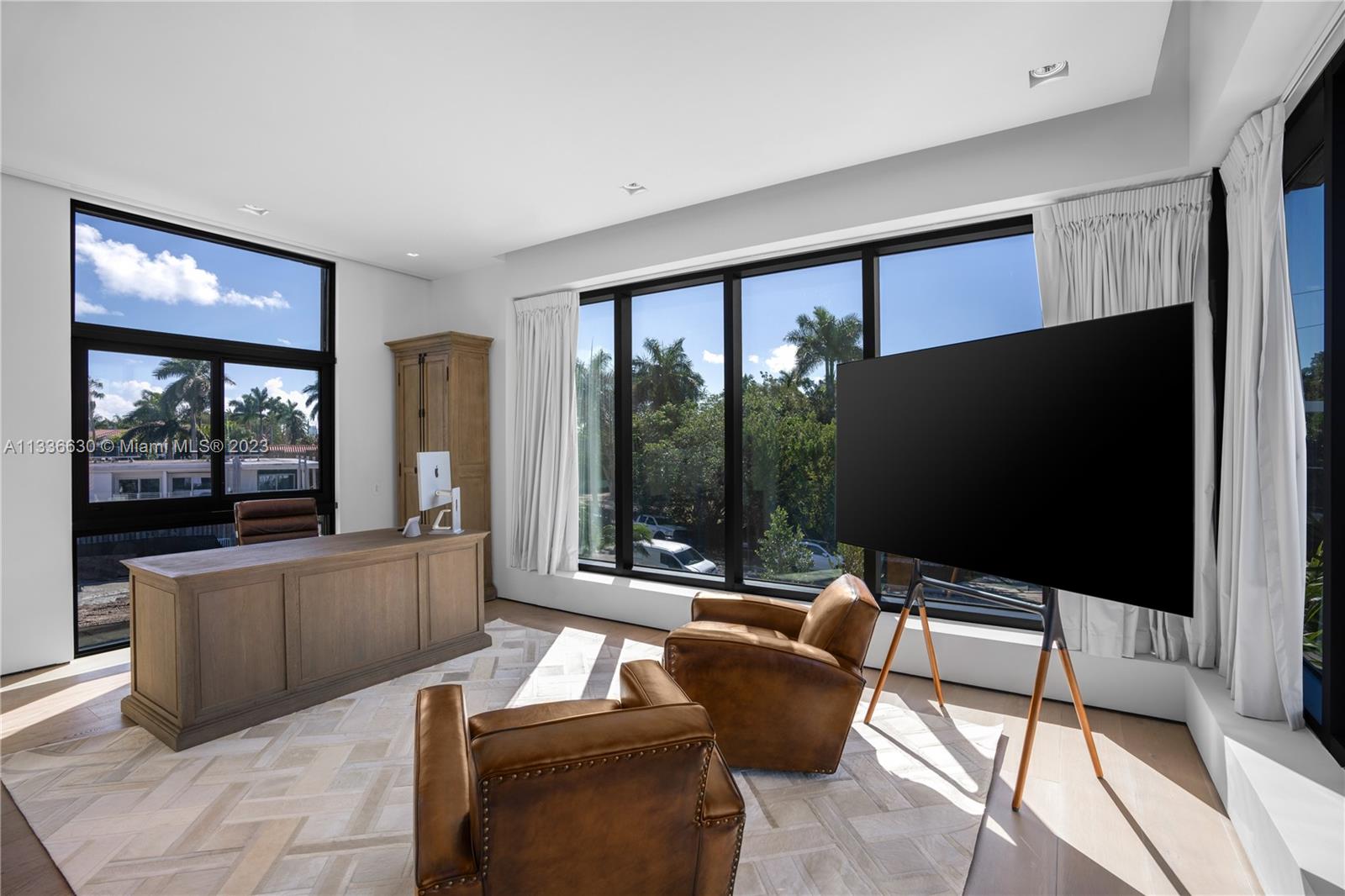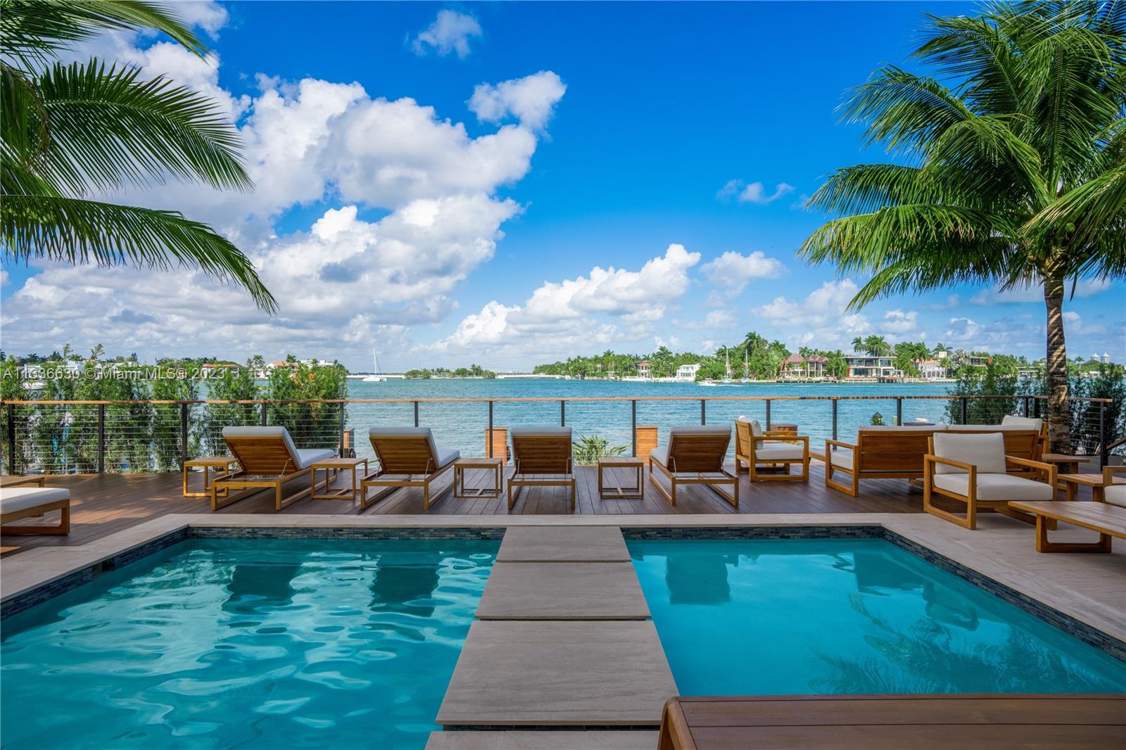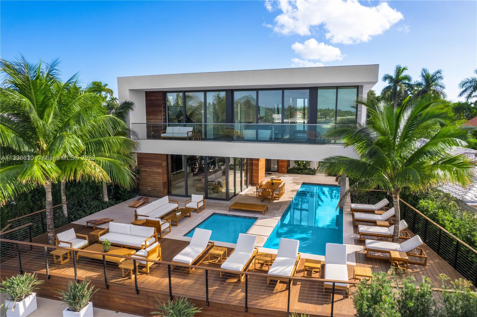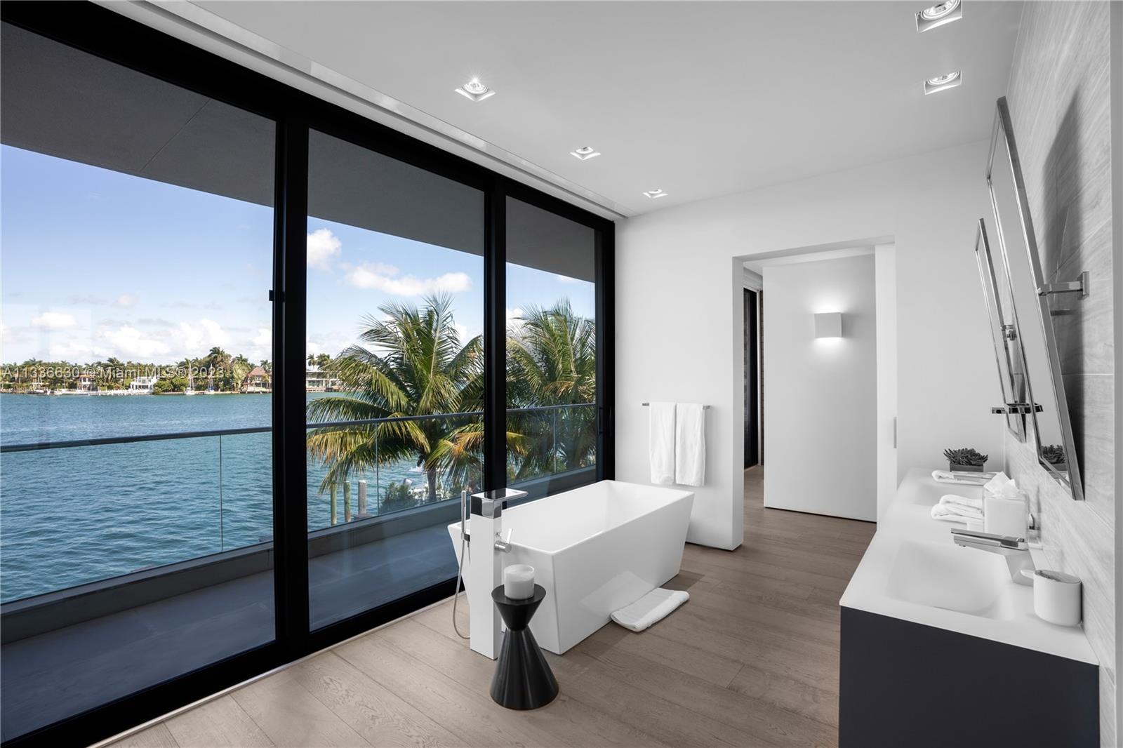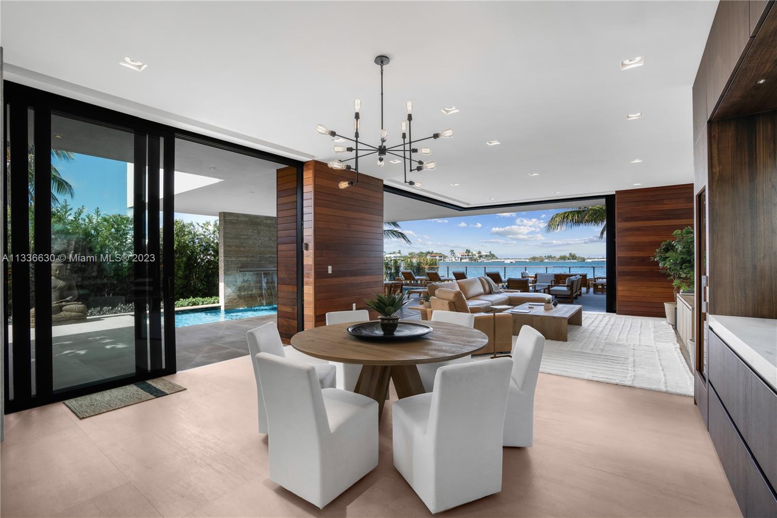 Stunning tropical modern home with westerly sunset views located on prestigious Hibiscus Island with 24/7 police guarded gated entrance. Wide bay Biscayne views upon entry to this luxury home, masterfully designed in 2017 by award-winning architect Choeff Levy Fischman. Indoor/outdoor living on ground floor is perfect for entertaining with its open dining and family areas, with five bedrooms and office area, spacious master bedroom with dramatic water views. Featuring custom Italian kitchen, oak wood floors, Crestron smart home system, floor to ceiling windows and a two car garage. New Ipe rear deck decking with expansive relaxing outdoor area, and lush landscaping provides resort style oasis rear yard including a salt water pool and spa, and private dock.