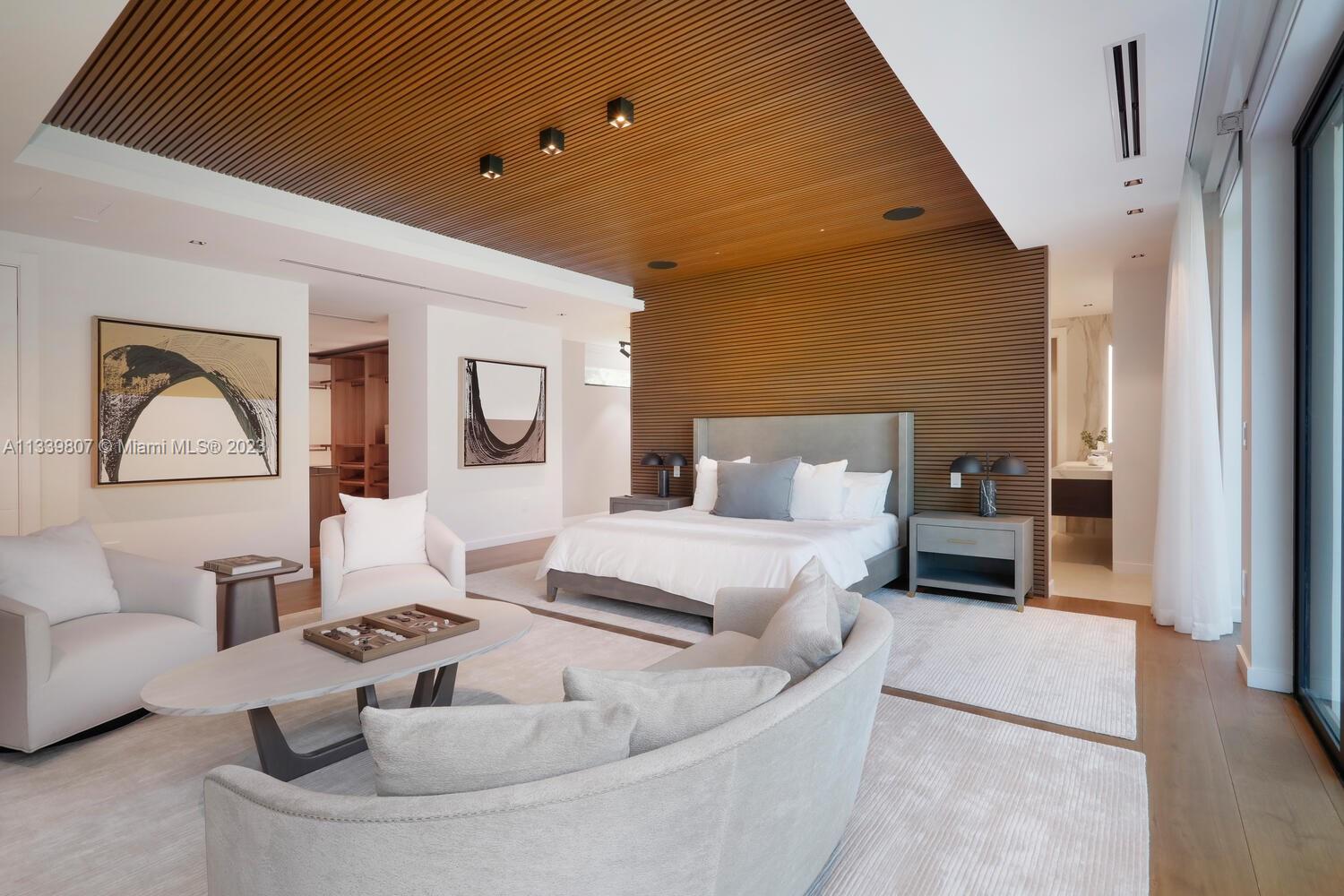 This gated North Pinecrest estate sits on a 50,529 sqft lot & has a total of 12,124 sqft, w/ 8 bedrooms, 9.5 bathrooms, theatre, gym, office, 3-car garage & a double carport. You are welcomed by the grand entrance surrounded w/ beautiful coral rock & double water display. The home features a mix of modern & traditional design elements, w/ an emphasis on sophistication & elegance. The home features Peruvian teak wood throughout the high ceilings, which adds warmth & character to the space. The Italkraft kitchen is equipped w/ Fisher & Paykel & Wolf appliances. All bedroom closets & bath vanities done by Miacuccina.The outdoor spaces include a pool, gazebo & summer kitchen, surrounded by a tropical setting. Includes: gas generator, wine display, Creston automation system & 2nd family room.