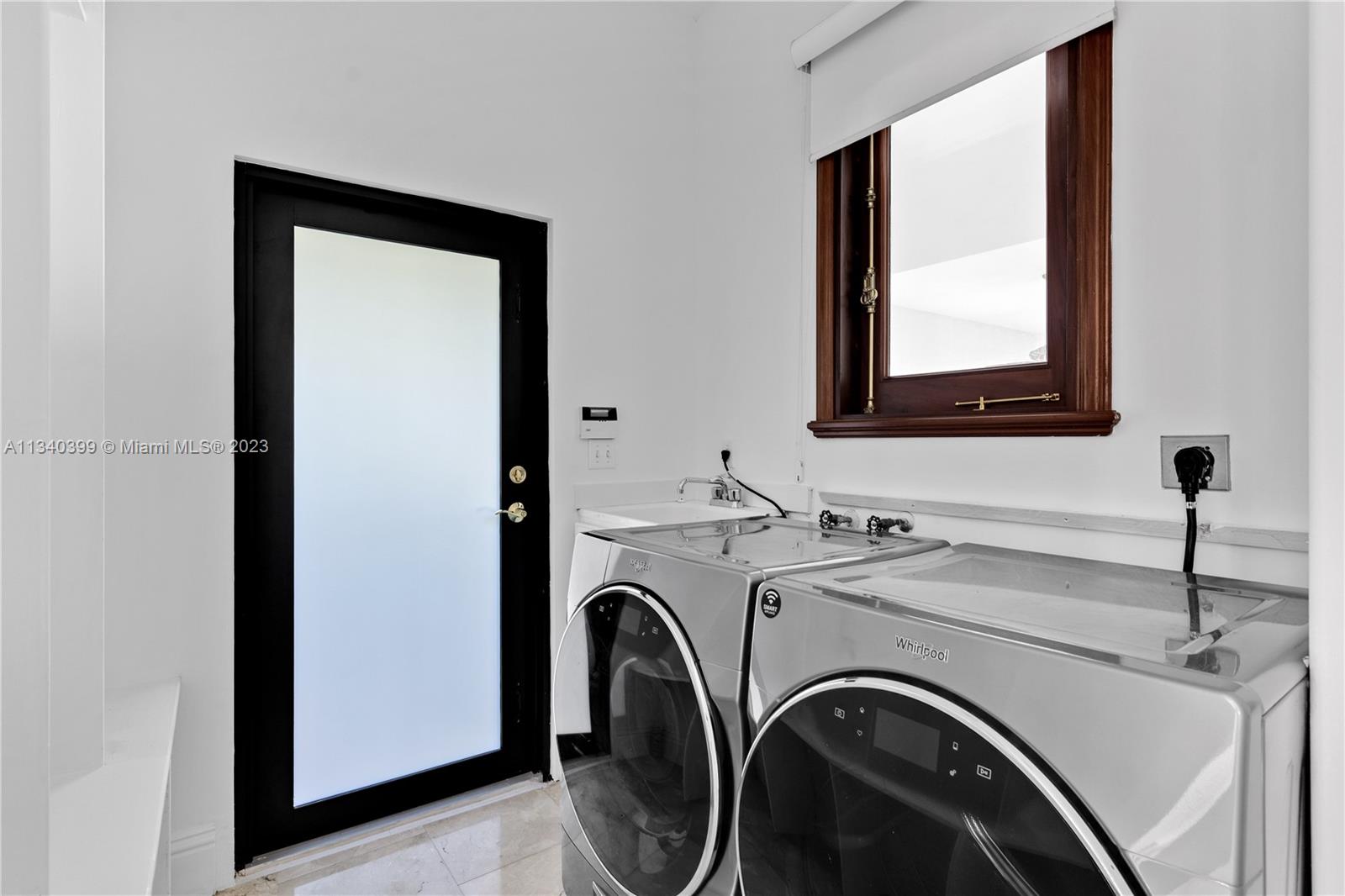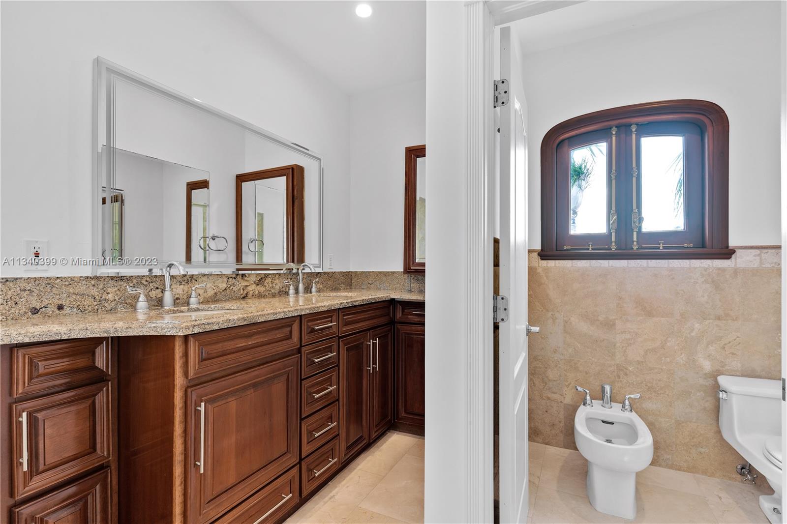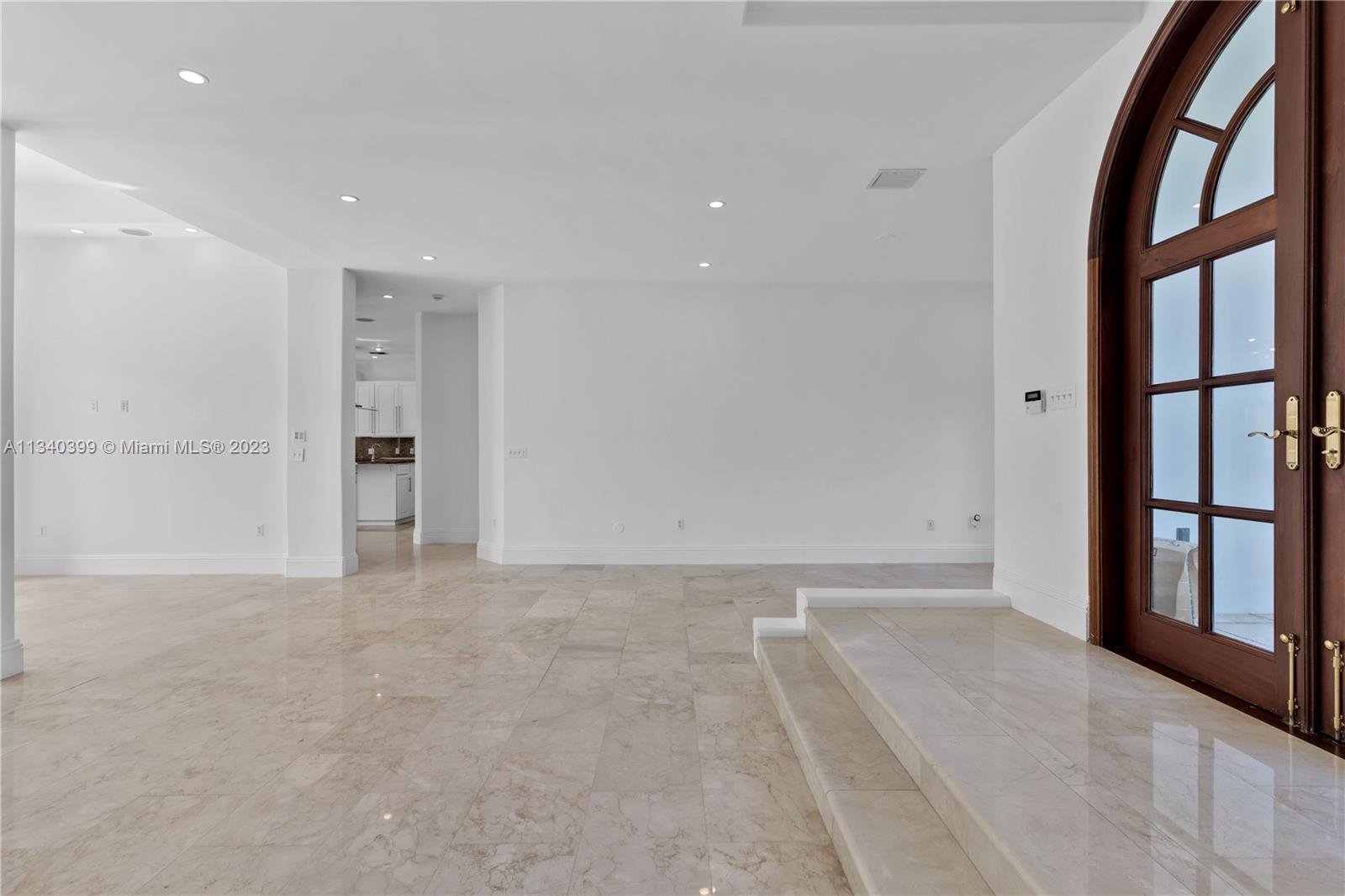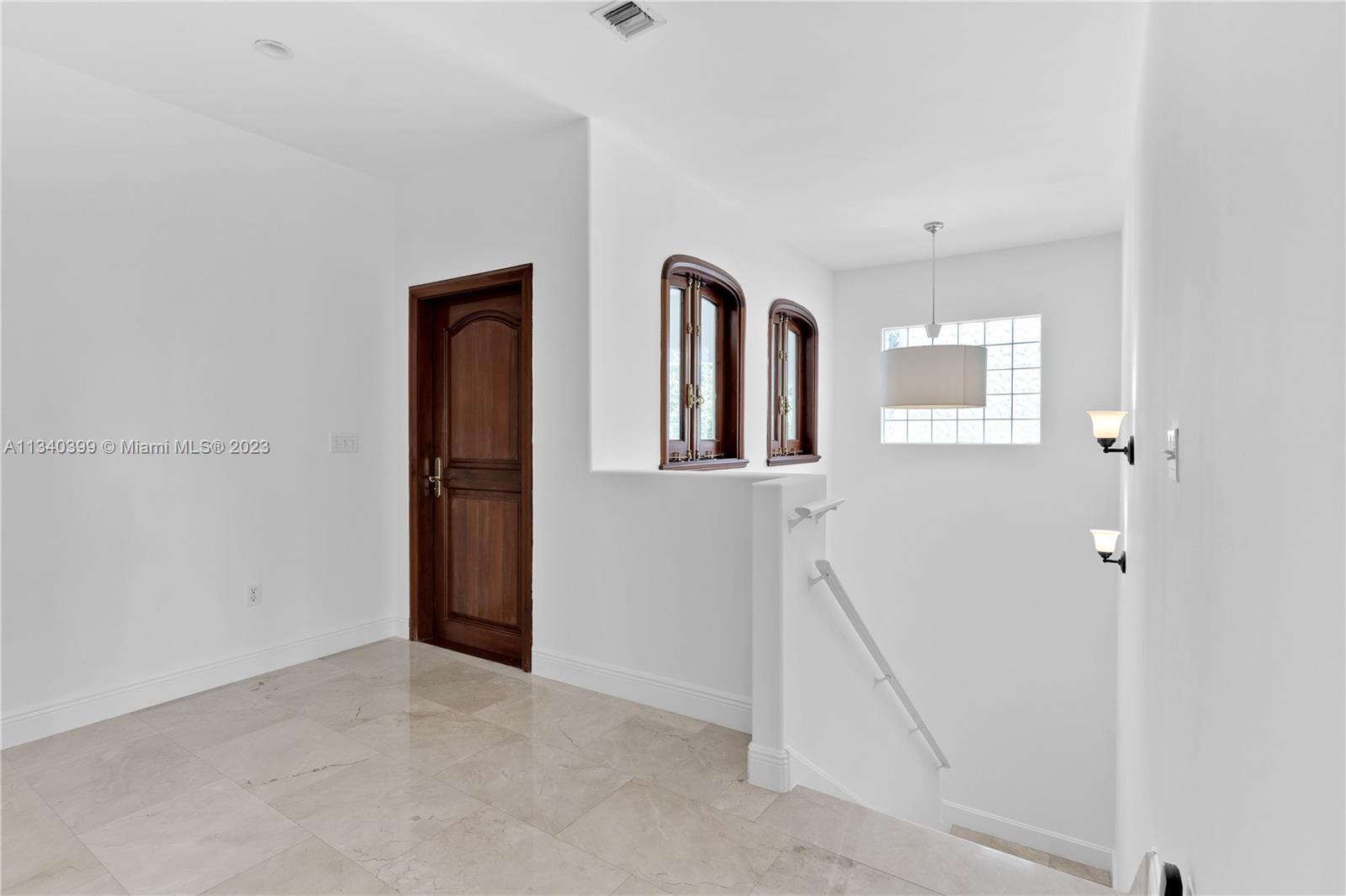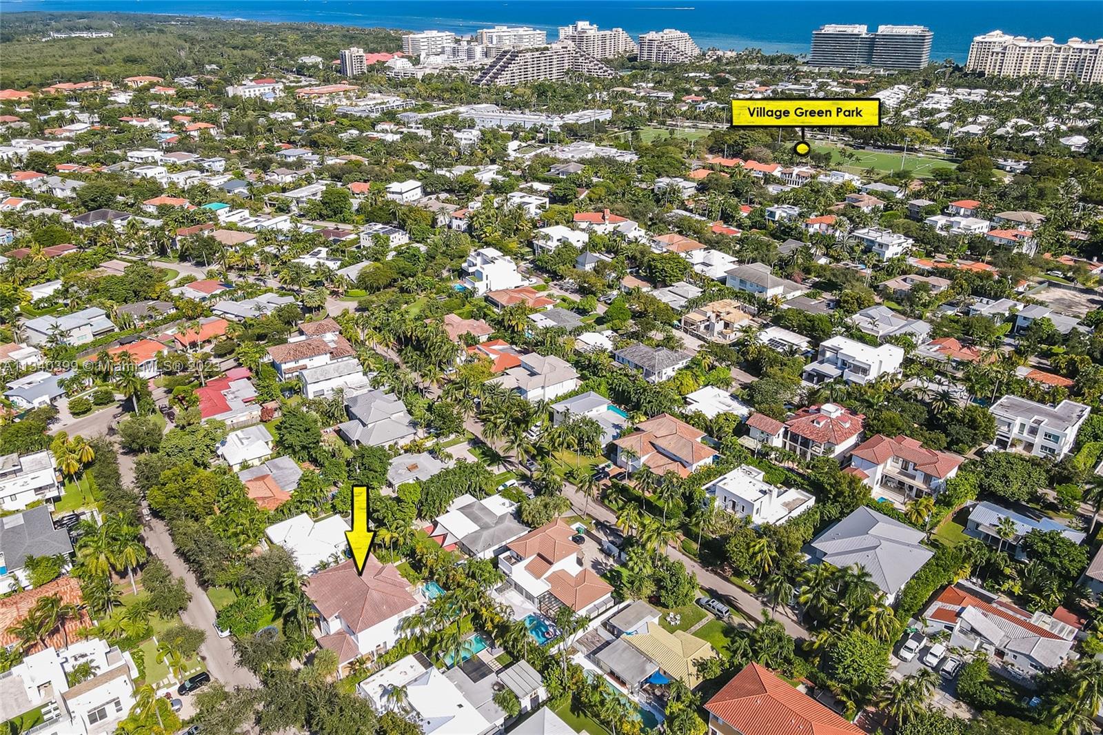 This wonderful elevated home has a fantastic layout with 5 Bedrooms plus an Office, 4/1 Baths and high ceilings. First floor consists of an ample foyer with formal dining and living room area, one Bedroom next to a full cabana bathroom, plus an Office and a powder room. Separated large family room, open kitchen and a very comfortable breakfast area filled with natural light. Second floor features a total of 4 Bedrooms and 3 Bathrooms (one of them is a Jack and Jill bathroom) with a very ample master suite with private terrace. Third covered terrace is a bonus: ideal to use as a gym, game area or another gathering area. Enjoy your spectacular pool with a very ample garden on the side, manicured landscaping with elegant palm trees, located steps from the Village Green.