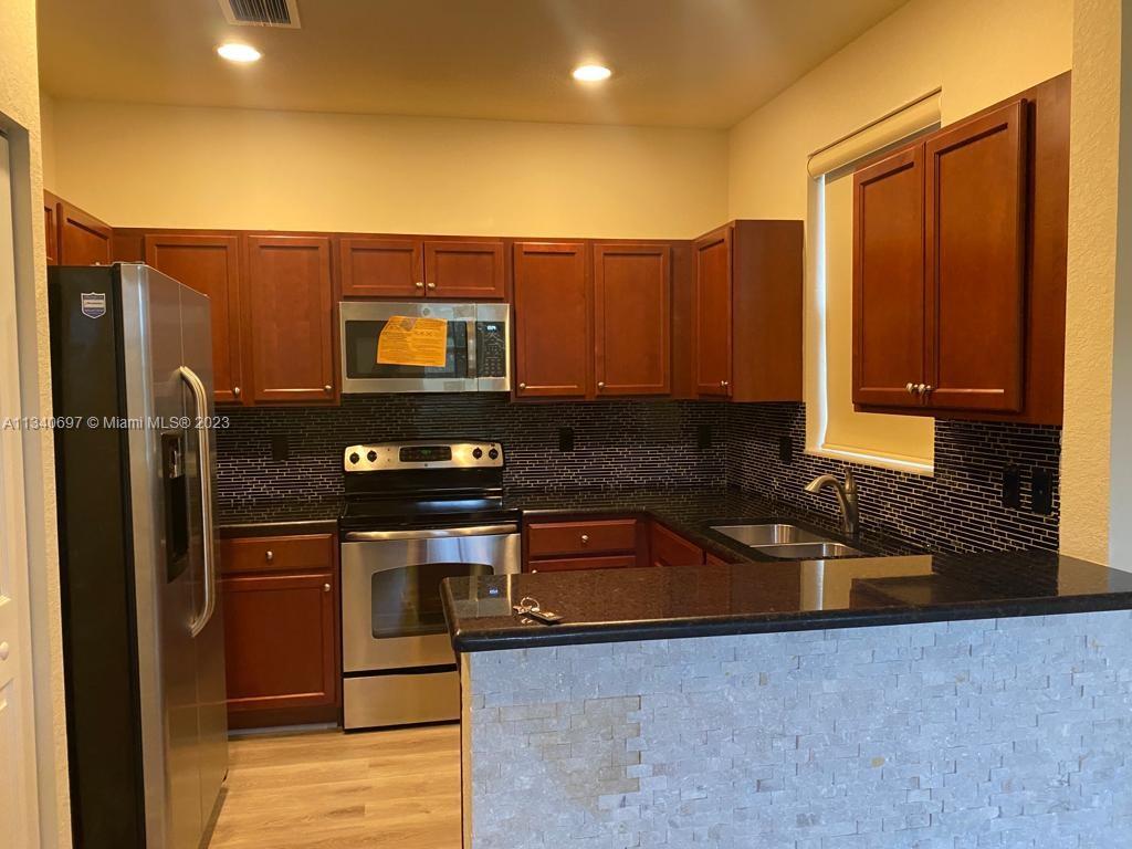 3 bedrooms, 2.5 baths plus one car garage, laminated floors in living areas, carpeting in bedrooms, fenced patio with pavers, kitchen with stainless steel appliances with granite & backsplash. Association Island at Doral Santorini $183.50 plus $112.00 Island Club. Easy to show, Vacant on lockbox.
