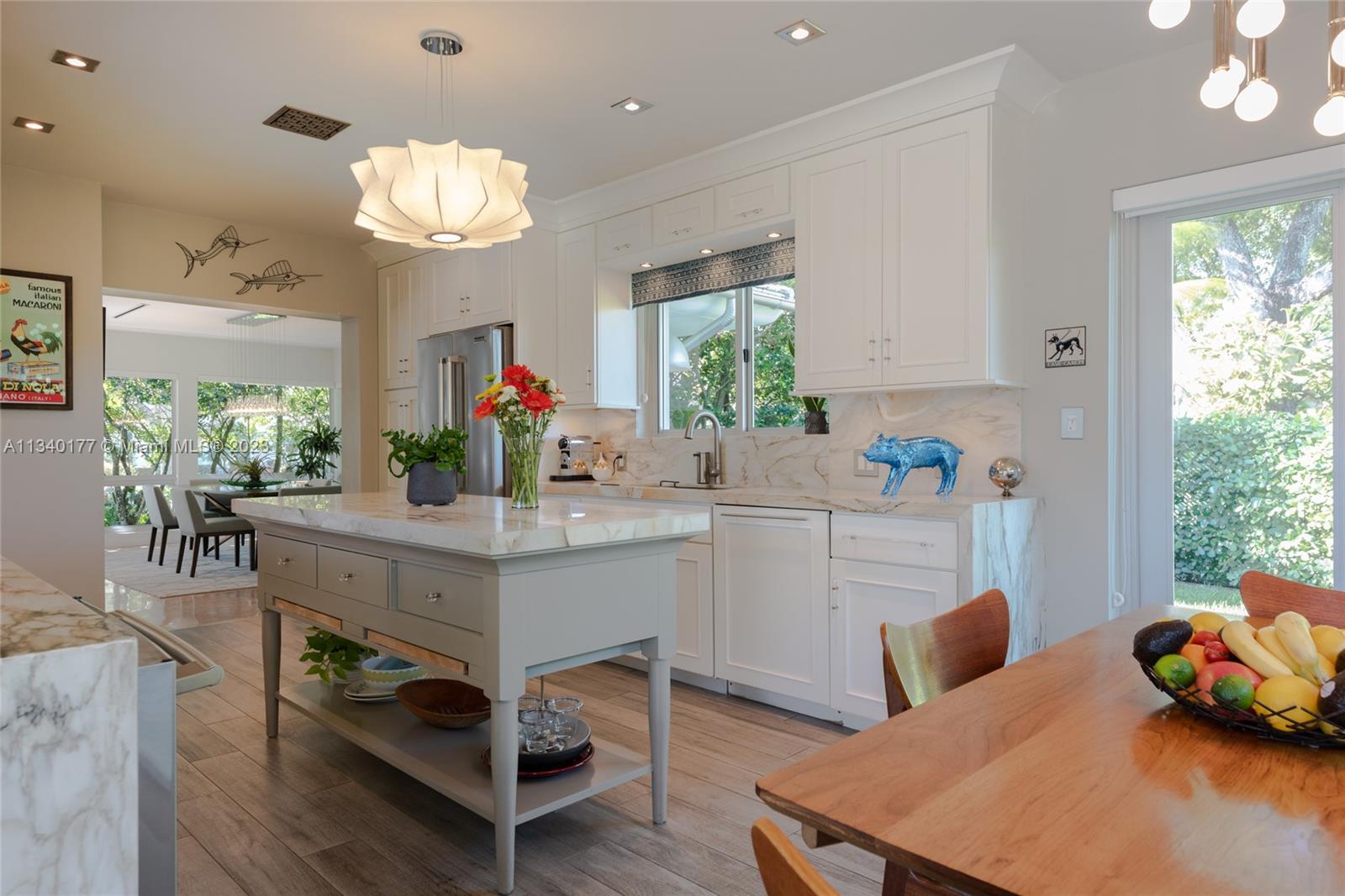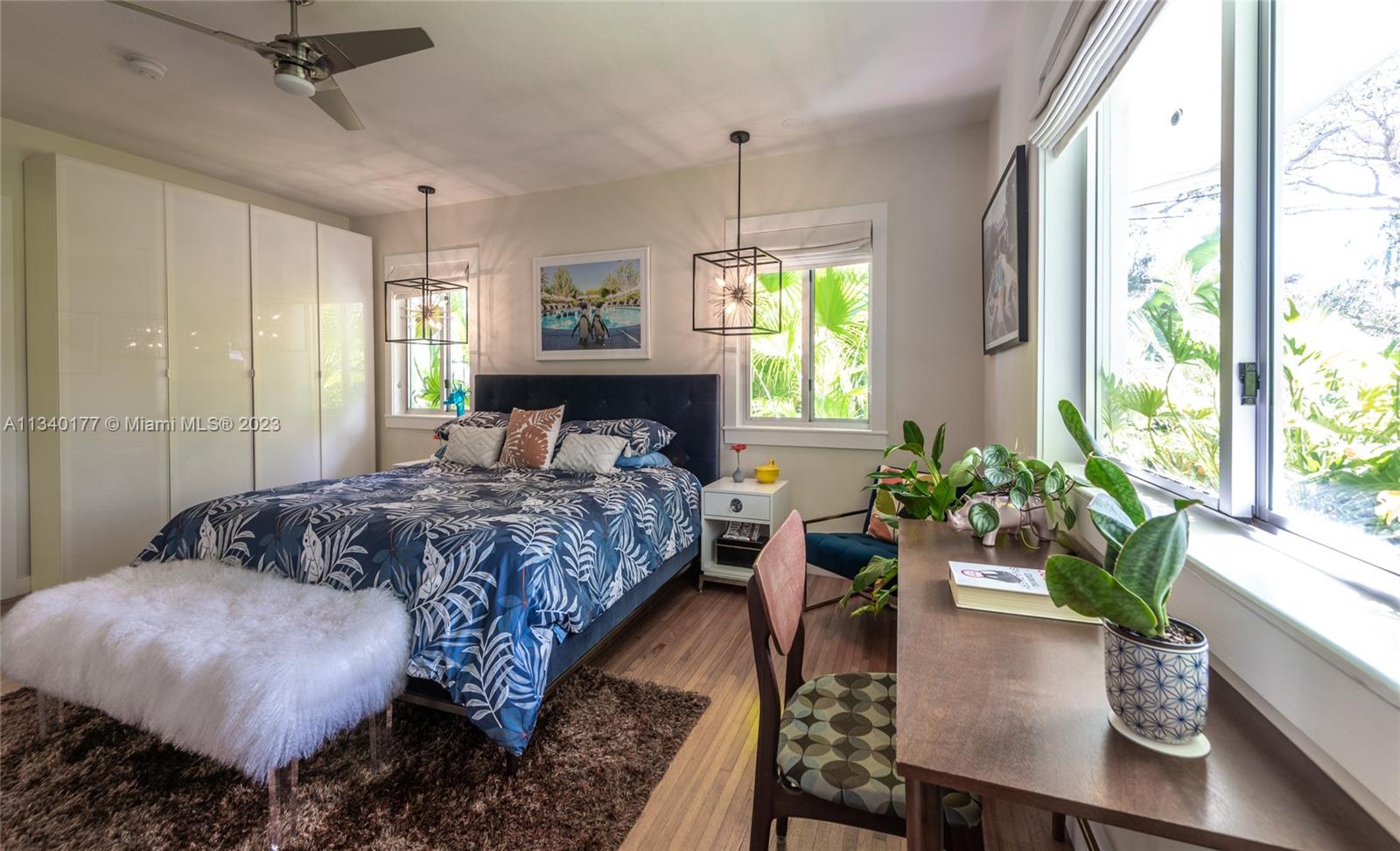This stunning mid-century modern masterpiece has been completely remodeled down to the concrete walls. Originally designed by architect Percy P. Turner, it is located on a large corner lot on one of Miami Shores' most beautiful streets. All 3 bedrooms have remodeled en-suite bathrooms. This home has an oversized 680 sf 2 car garage! Other features include new plumbing, updated electric, newer A/C including ductwork, a high-end gourmet kitchen, floor-to-ceiling impact windows and doors, a new septic system, a heated private courtyard swimming pool, polished terrazzo and rich wood floors. Surrounded by mature tropical landscaping and protected with full house Generac generator. No flood insurance is required!
