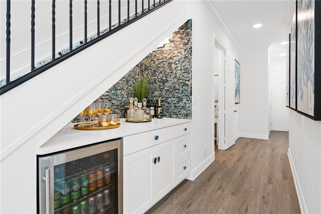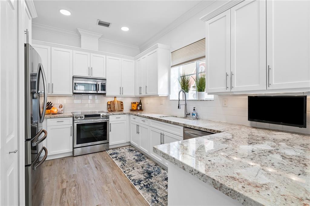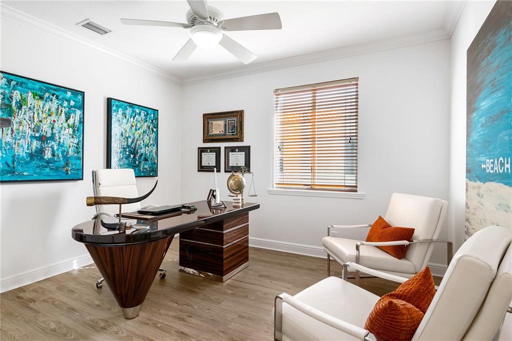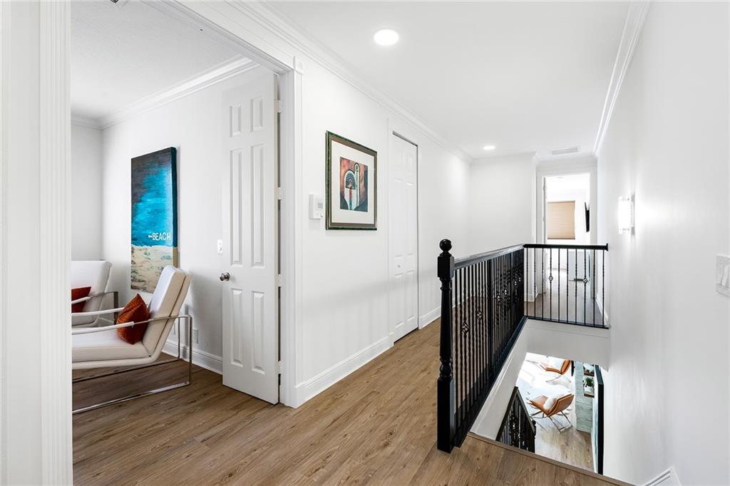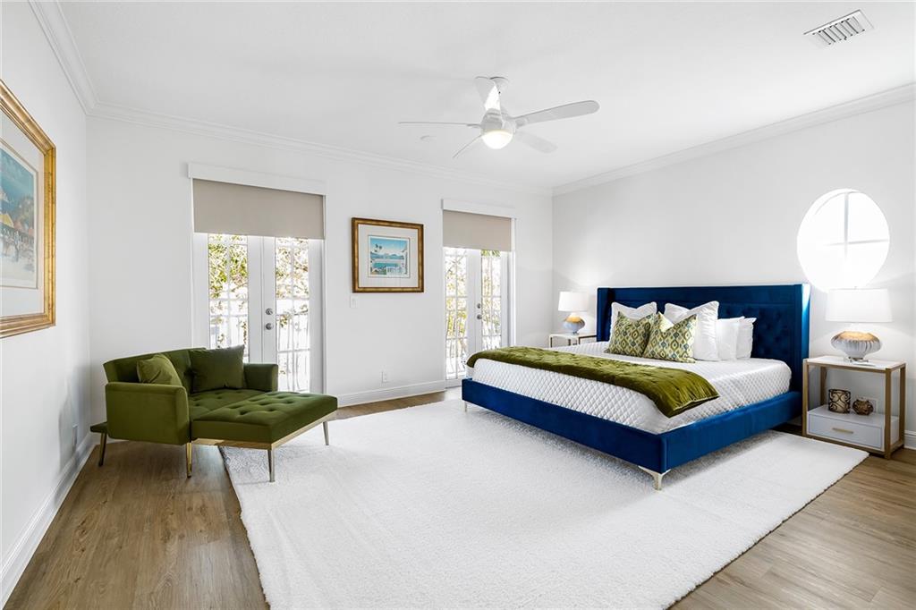 Corner Townhome, updated & inspired by contemporary design. Ideal for today's lifestyle w/a spacious & luminous open flr plan, enhanced by vol. ceilings & modern accents. The open kitchen w/tremendous counter space & snack bar overlooks the dining area, custom bar & great rm. French doors open to the oversized tropical backyard, a lrg. free form pool, patio, & custom BBQ equipped w/an entertaining area for dining, lighting & bluetooth sound system. The spacious primary suite provides the ultimate retreat w/an open balcony overlooking the pool & patio area, 2 custom walk-in closets & spa inspired bathrm w/a Jacuzzi & large walk-in shower. The Jr. Primary suite has 2 open balconies & the 3r br. is currently used as an office. Mins to shopping, restaurants, parks & the beach. Sq ft from BCPA