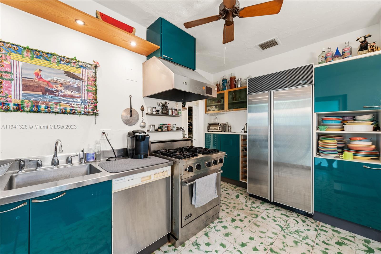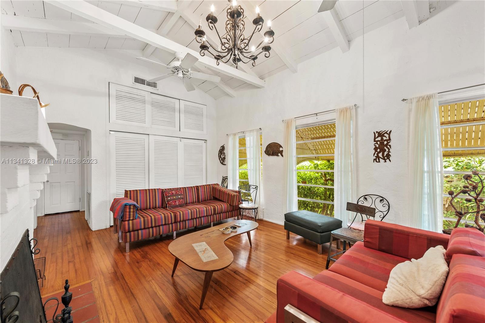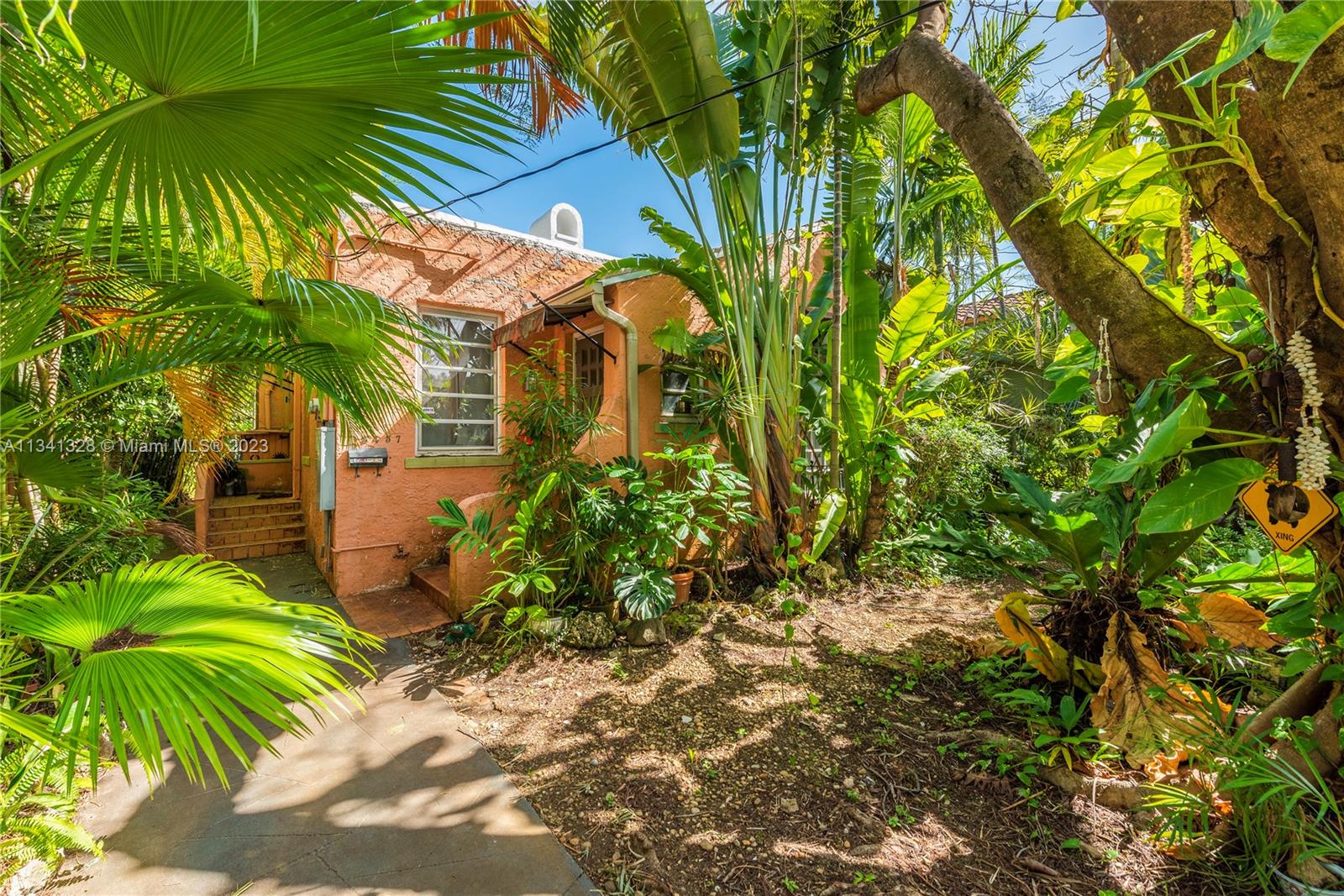 Charming tropical oasis centrally located in Miami Beach. Home features include: 2,222 sf (living area) on a 7,500 sf lot. Main house is 3 bed, 2 bath. Guest house is 1 bed, 1 bath with kitchenette. Dramatic living room with high Cyprus ceilings, Dade County Pine wood floors, laundry room, gas range, partial impact windows, lush landscape, kitchen dining, fireplace, outdoor shower. High walking score - close to beach, shops, restaurants, Sunset Harbor, 1-95, 41st Street, houses of worship.