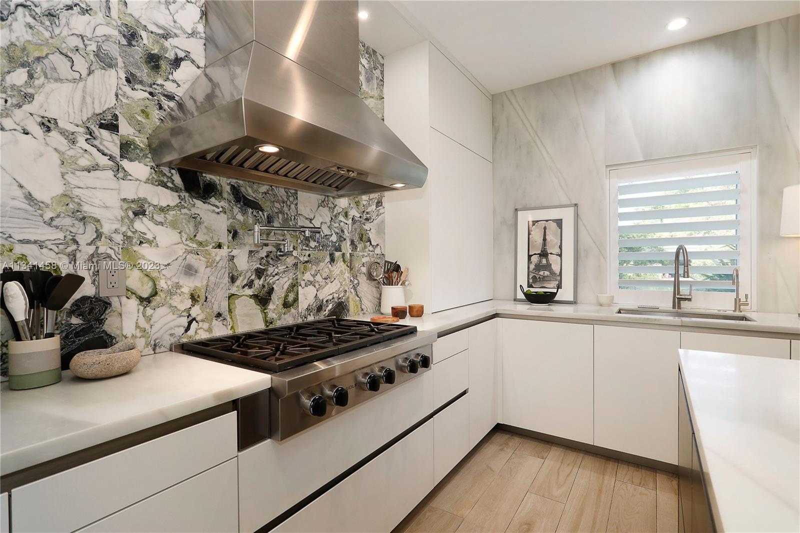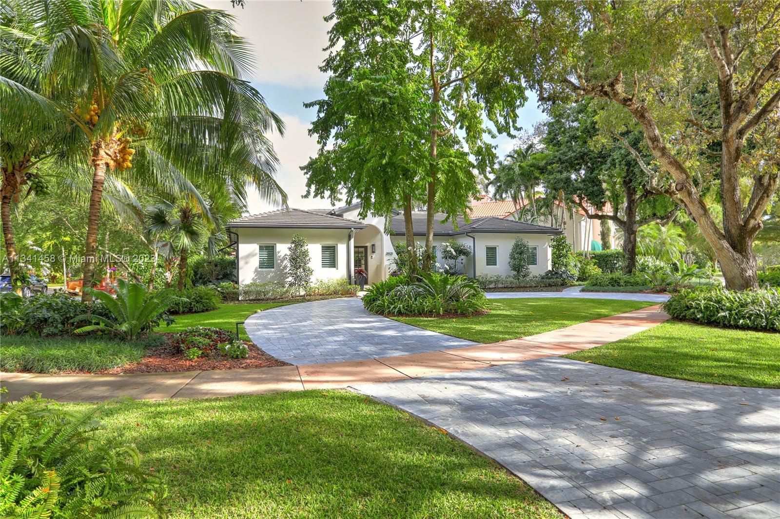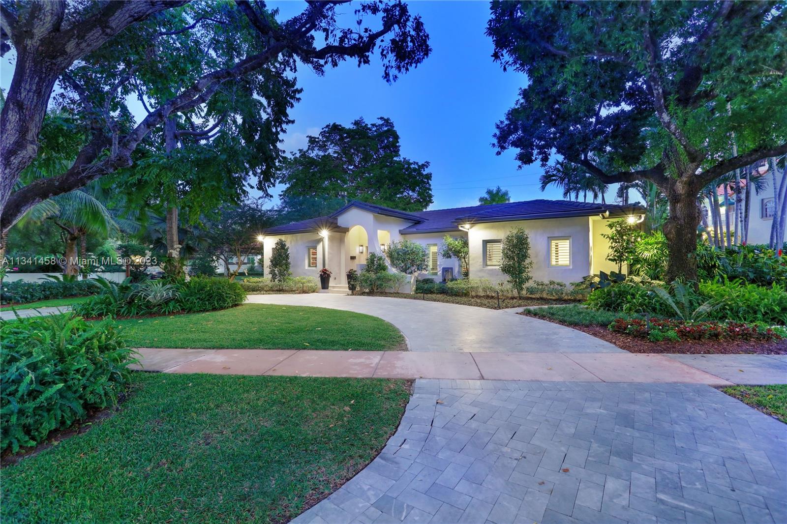 Perfection in the Golden Triangle! This home has been beautifully & meticulously renovated from top to bottom. Enter through the impact glass front door into a spacious open-concept masterpiece w/ the finest finishes including fabulous custom cabinetry, marble counters, Wolf, Miele, & Sub-Zero appliances, full-house generator, gorgeous tilework, California Closets, & more! Ideal for entertaining, the home enjoys gracious indoor & outdoor liv spaces, 2 dining areas, gourmet kitchen & summer kitchen. 3 BRs feature en-suite BAs, the primary bedroom has 2 closets, spa-like BA, & magnificent garden views. The corner lot feels like a secret garden w/ lush, mature landscaping, it also has a circular driveway & side drive that leads to the 2 car gar & large laundry room. A true showstopper!