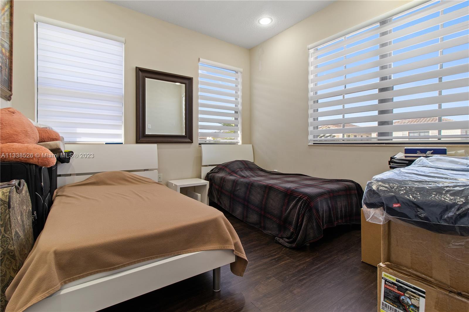Spectacular HOME 5 ROOMS/(3.5 Bathrooms). Includes 2 MASTER BEDROOM SUITE'S, YES 2 MASTER! (1 on the GROUND FLOOR),on a block away from clubhouse, Approx. $100K of upgrades: Jacuzzi with hydromassage inside a master room, features dual sinks in the bathrooms & separate shower/tub, custom made all walk in closets, features gutters, beautiful porcelain tile on the main floor,High Hats & lamps, eat-in kitchen with upgraded cabinets and granite countertops, smart home audio and security camera system, High-Quality vinyl-wood waterproof laminate floors on second floor. Stainless Steel appliances, great fenced in backyard patio perfect to BBQ, Living room opens onto the outside patio with marble travertine flooring, 24 hour gated security. Clubhouse with party room, kids playroom, gym & pool.