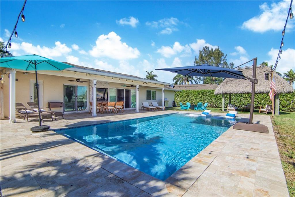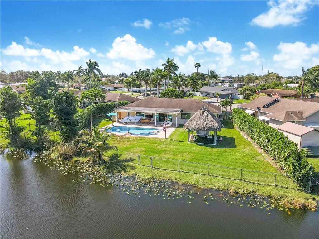 WOW FACTOR! Welcome to this updated lakefront home, located on a quiet cul de sac in desirable Orange Tree Lakes. The back yard is serene and perfect for entertaining. Modern saltwater pool w/ luxurious sun-shelf and expansive travertine patio (new 2021). Covered patio feat. Brazilian hard wood ceilings, recessed lighting, fans, custom TV wall, and outdoor shower. Tiki hut w/ synthetic turf. FULL IMPACT windows, impact doors and sliders. Primary bedroom w/ lake view, ensuite renovated (2021) cabana bath, and walk-in closet. Guest bath reno 2022. Large indoor laundry (W&D 2022). New AC 2022. New 2022 SS appliances. Bonus room great for office or playroom. Living room w vaulted ceilings and built in surround sound. Control 4 home automation system. NO HOA and great schools!