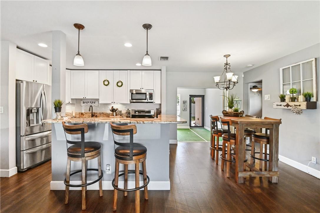 Spacious Three Bedroom, Two Bath Split Floor Plan with a One Car Garage Boasting an Almost 500 SF Bonus Entertainment Room with Large Screen Projector, Perfect for Game Day Parties With Friends and Family. Additional Storage Room for Luggage, Seasonal Decor or Household Equipment. Outside Storage for Lawn Equipment, Eight Perimeter Cameras and a Portable Generator that Plugs Directly into the Panel. Central Ac Plus Four Mini-split for Selective Cooling. Impact Windows Through Out With Accordion Shutters on Back Room Windows. Large Newly Fenced Yard with Room for a Pool (Plans Approved and Available to Buyer). 1,864 SF of Family Living Plus a Garage. No HOA, Centrally Located with Quick Access to All Commuter Highways! Ready to Move in!!!