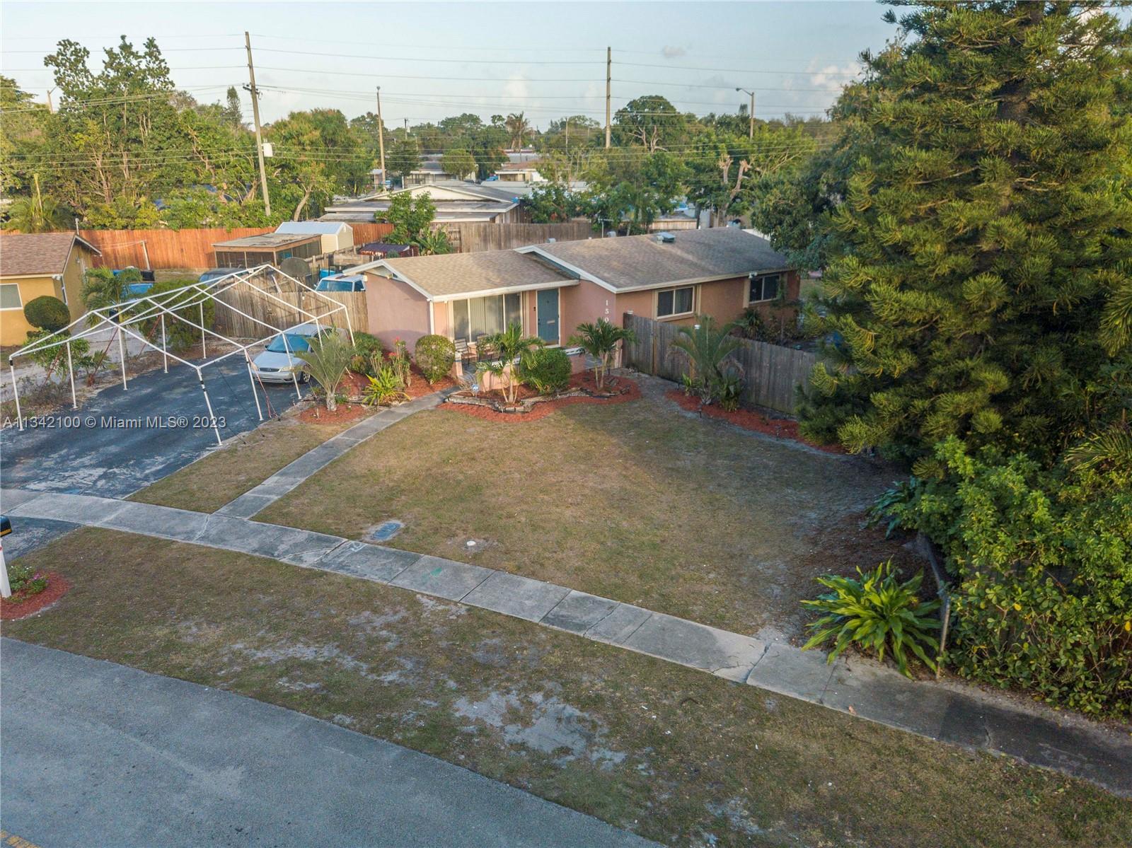 This beautiful 3 bedroom 2 bathroom home has ample parking. There is a covered car option for the driveway. Tarp for parking stays. No garage. Nice front porch and landscaping. Washer and Dryer. Plenty of storage areas. One of the largest lots in the community. Fenced-in large backyard. Fruit trees/plants. Large pool. Open patio area. Covered outside bar/rec area. No rental restrictions/HOA fees. Enjoy the Annual Ft. Lauderdale Air Show from home as NW 9th Street is the turn around point. Sold AS IS. Seller Concession of $7,000 to Buyer for Remodeling. OPEN HOUSE CANCELLED for FEB. 18th 11a.m.-1p.m. Information provided may be subject to errors or omissions. It is the responsibility of the Buyer's agent to perform due diligence and to verify measurements and representations.