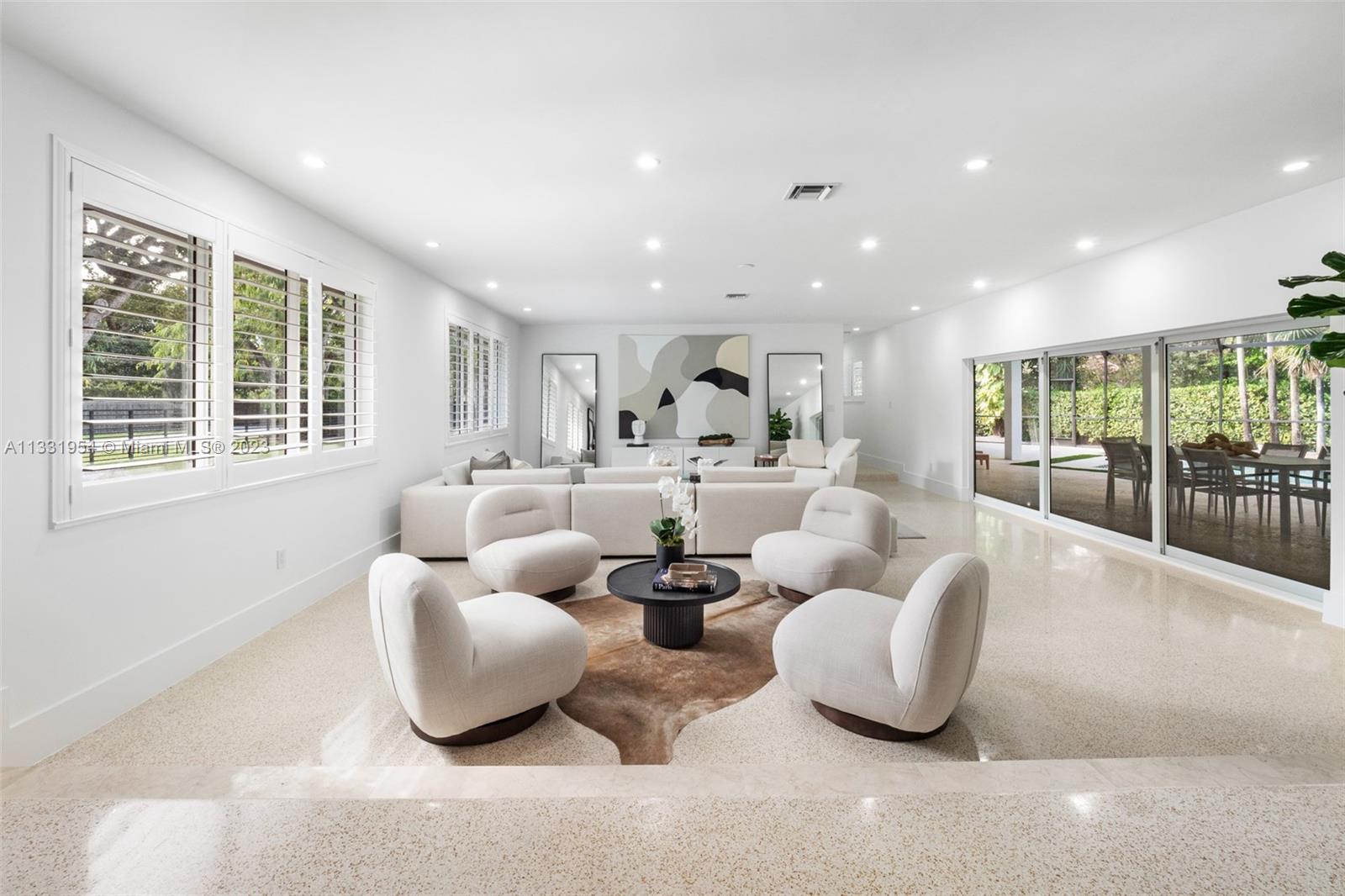 Completely and meticulously renovated contemporary home situated on an expansive 26,963 SF lot in the heart of Pinecrest. This turn-key luxury home features an open floor plan with spacious living room and dining area that open to a large covered terrace and a saline heated pool, perfect for year-round entertainment. Fabulous chef's kitchen features Italkraft wood, white lacquer cabinetry, stainless steel top of the line appliances, separate large laundry and storage room. This 4bd/4bath home offers ensuite guest bedrooms, a sumptuous primary bedroom with walk-in closet and beautiful bath. Enjoy swimming in the pool, playing a round of basketball or sitting in your backyard next to a natural waterfall grotto to calm the senses. 2 car garage w electric charger; Energy Saving Solar panels.