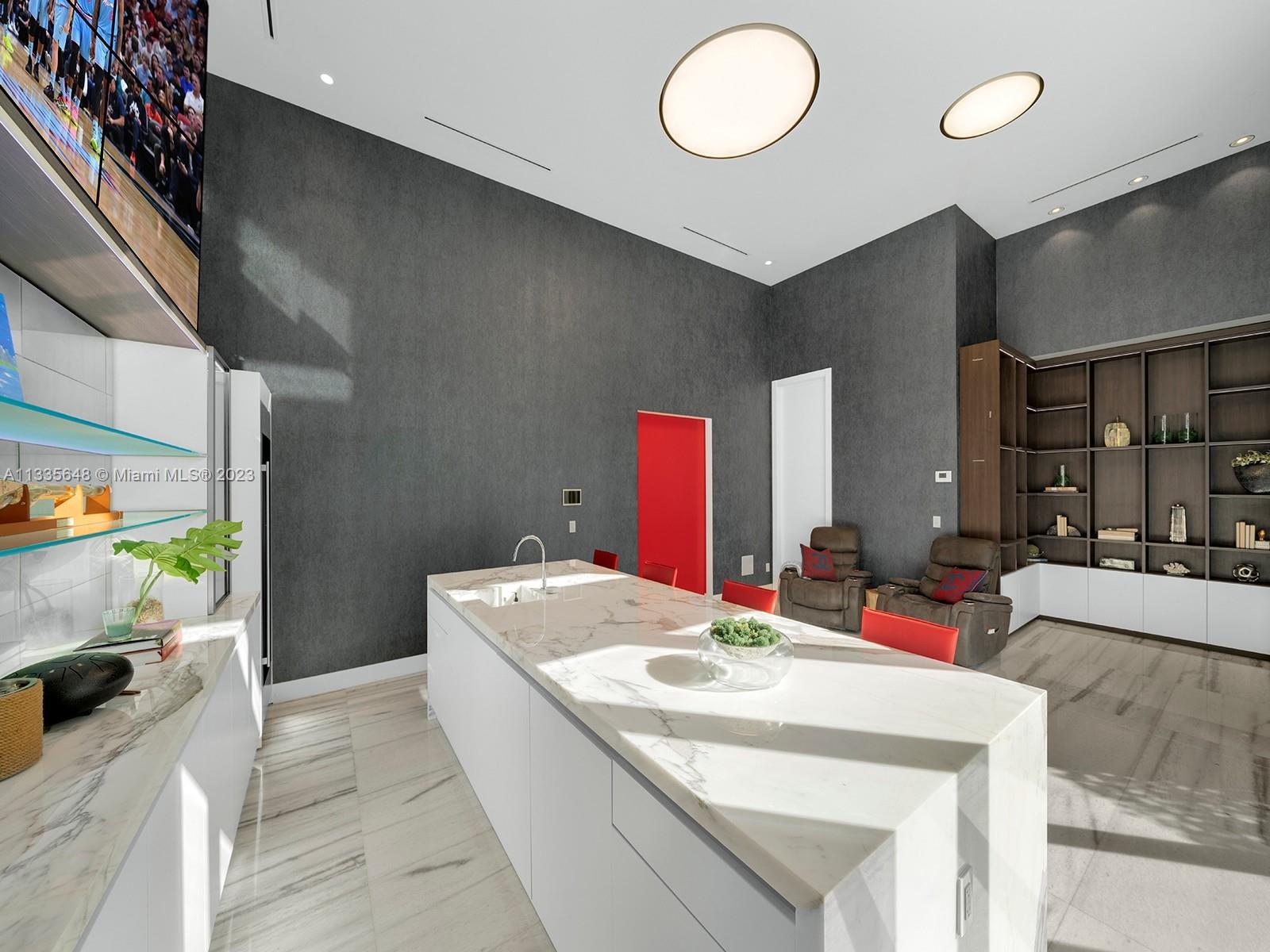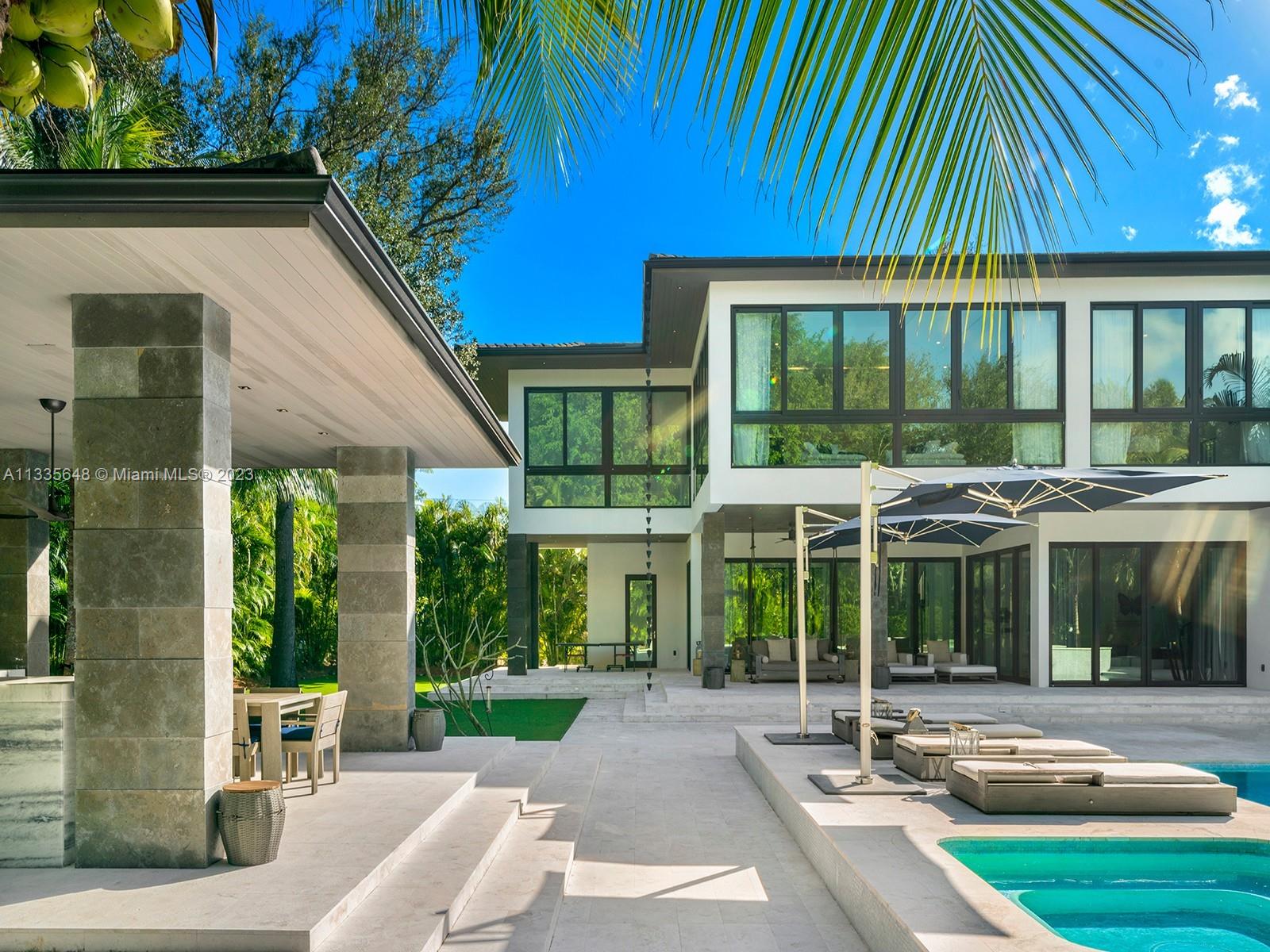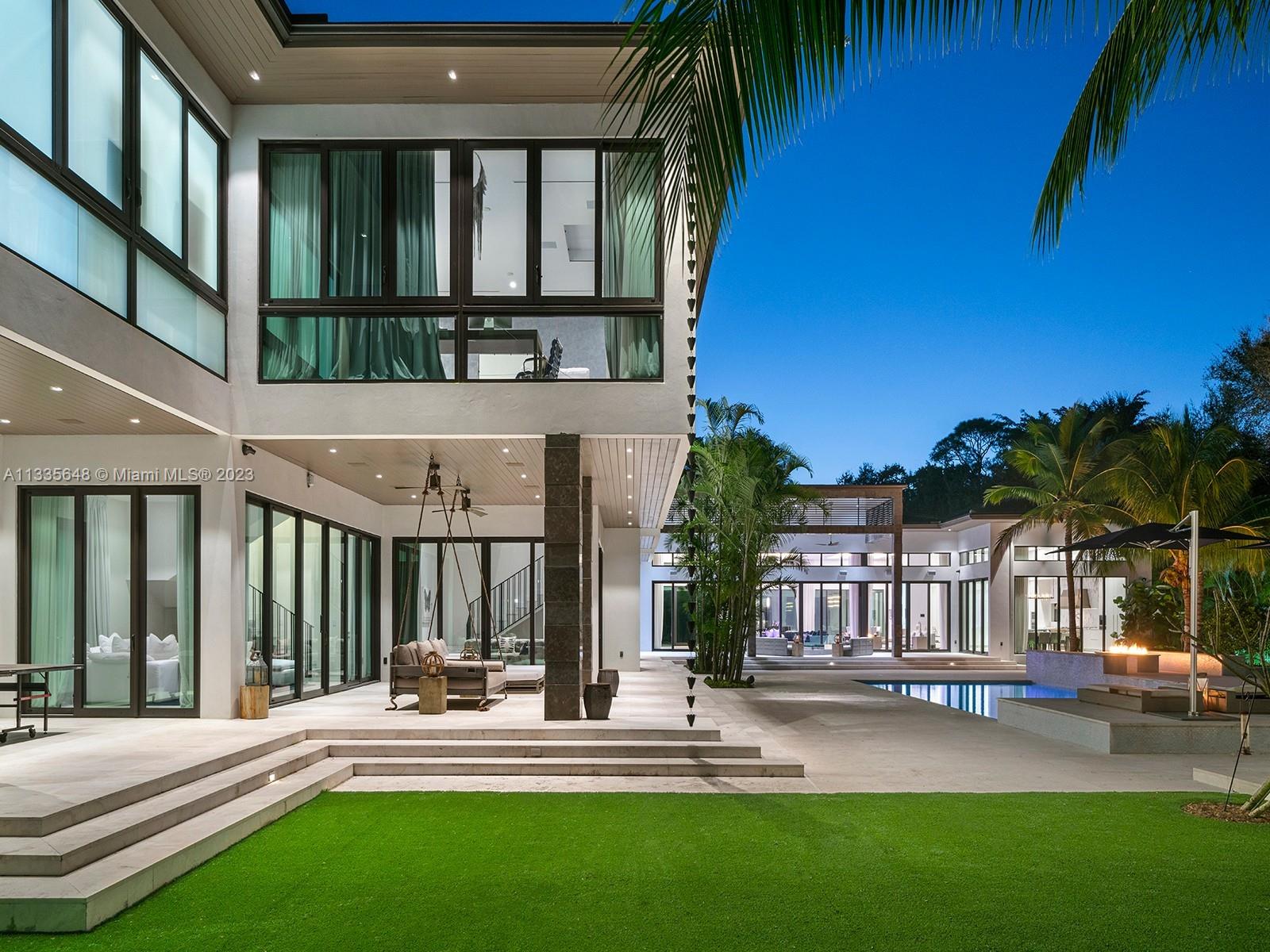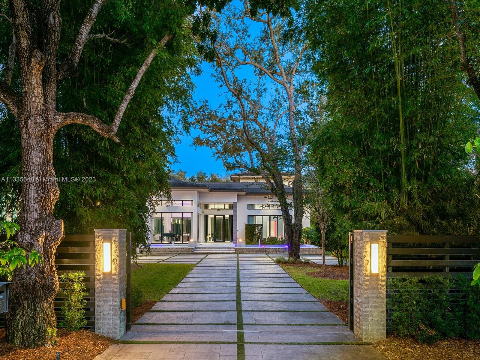 Modern Style meets unmatched elegance in this tropical paradise in N Pinecrest. This exquisite 2019 custom estate sits on over an acre & greets you w/multiple water features, grand foyer, volume ceilings & flr to ceiling white linen draperies. Unique open plan offering panoramic views of the outdrs from great rm. Quintessential kitchen by Officine Gullo w/walk-in pantry & Wolf/SubZero appl. This estate has it all w/state-of-the-art video & surround sound, home theatre, & sports bar rm. Bi-Level bedrms w/private sitting rms downstairs. Lavish master ste w/boutique WIC, sitting area, spa bath w/floating tub & 16ft shower. Outdr oasis w/pool, spa, covered terr, summer kit, outdr shower. Other Feat: elevator, maids rm, generator, 3 fire pits, 3 car gar w/space for lifts, elite schools nearby.