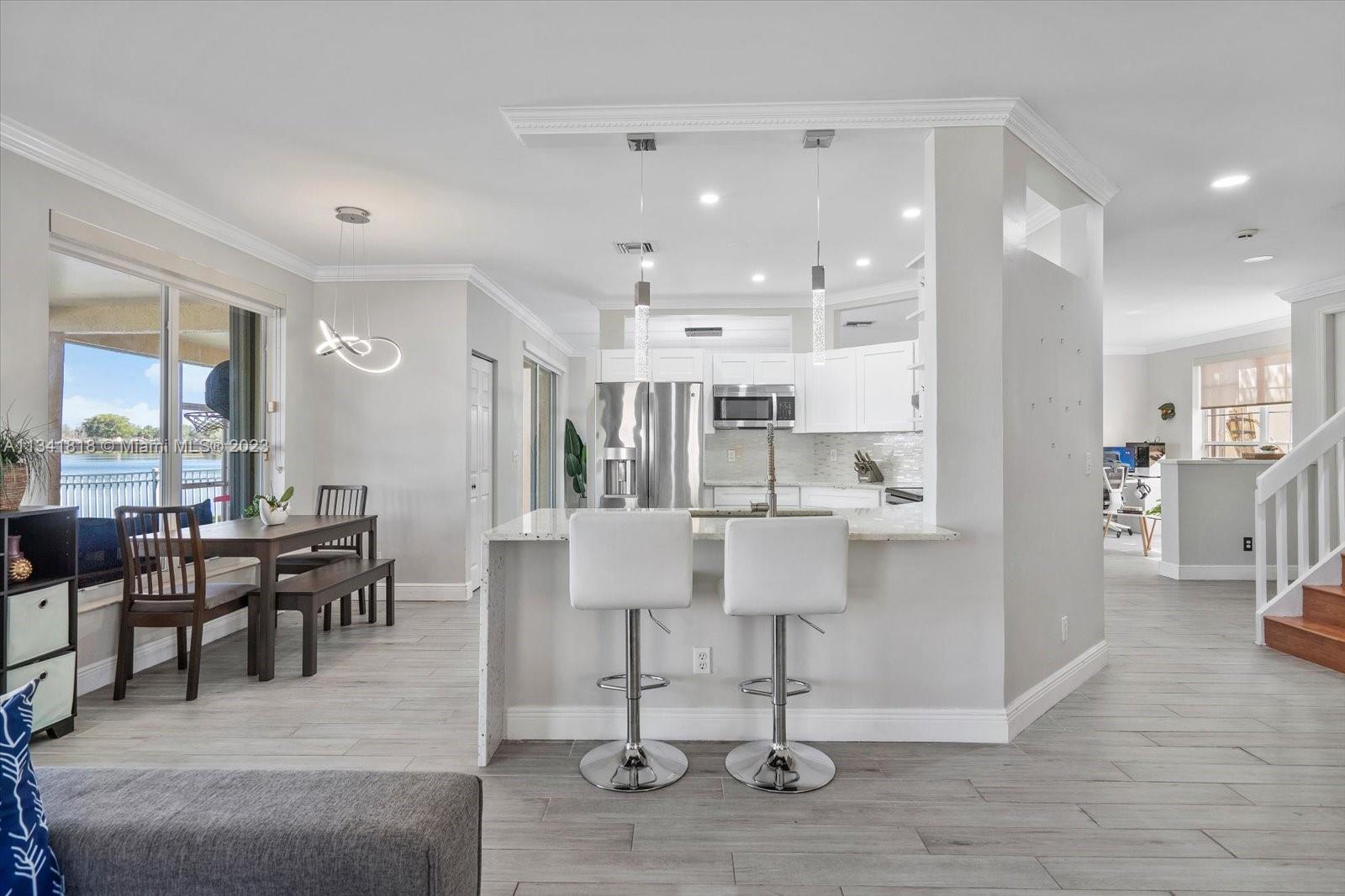**NEW ROOF!** This beautiful 4 Bedroom 2 1/2 Bathroom Water-Front home will have a new roof in about 30 days! Located in the Highly Sought-after Silver Lakes it features tile on the 1st level, an Open Floor Plan, Formal Dining & Living Rooms, and Stunning Lake Views. The kitchen has been completely renovated with solid wood cabinets, granite counters with waterfall end, & stainless steel appliances. The Primary Suite is truly spacious. It offers amazing water views, generous closets & ensuite bath. Enjoy low HOA fees, 2-car garage, screened-in Lanai & accordion shutters. This well-maintained community is close to highly rated schools, Miramar Regional Park & Amphitheatre, shops, dining & freeways. **All bedrooms are upstairs** Agents must review listing in mls & supplemental remarks