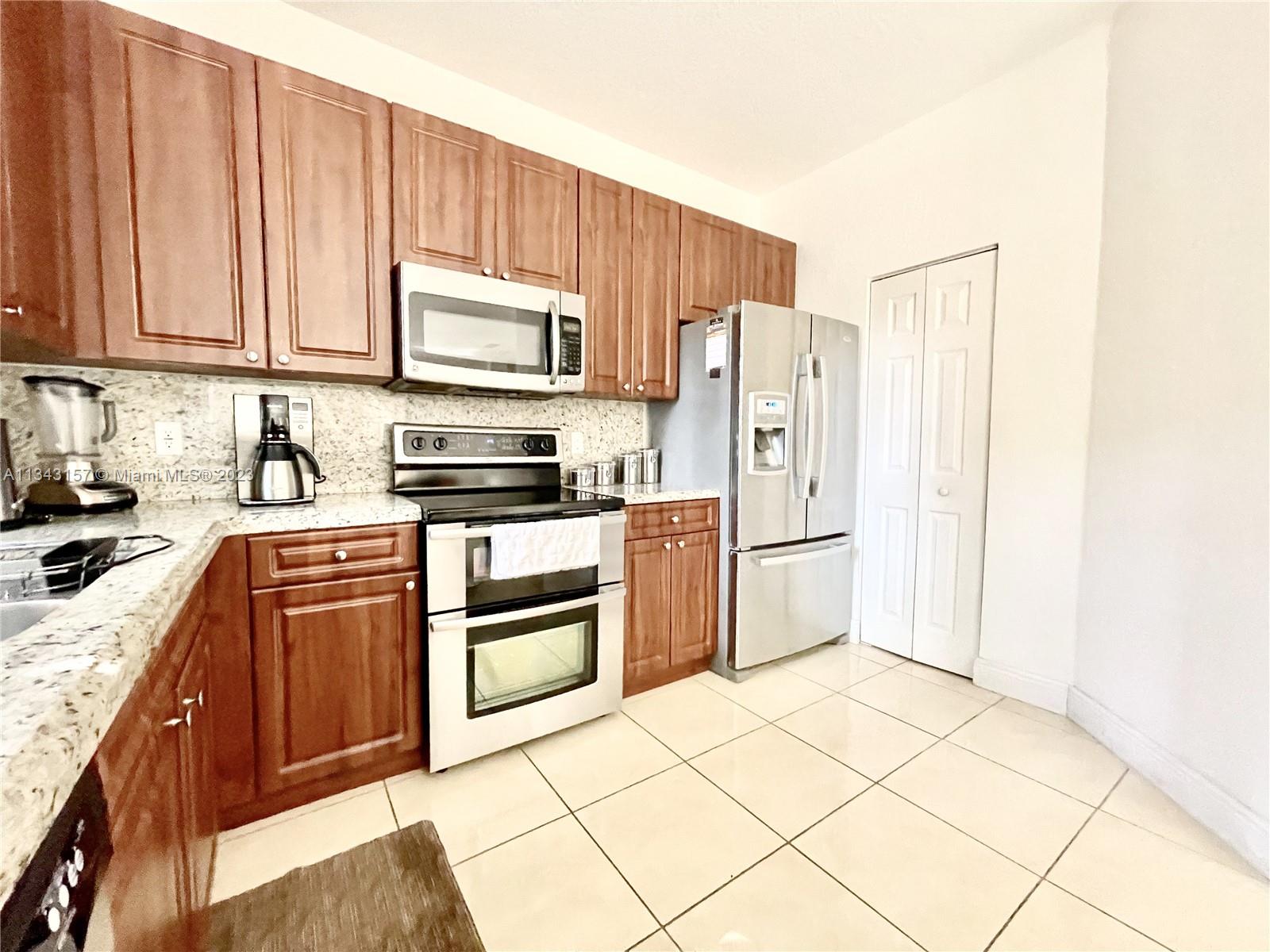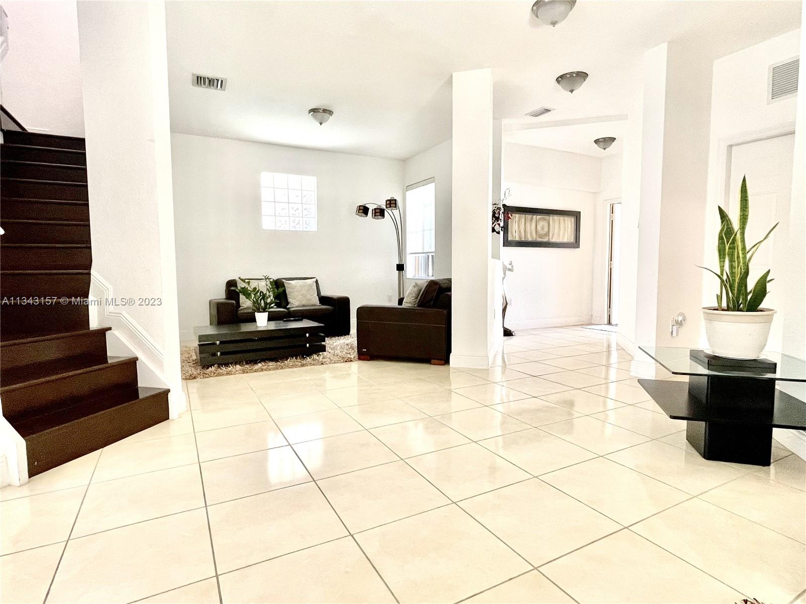 4 Bed/3.5 Bath, Split Level, Gated Community, Grade A Schools, SS Appliances, Marble Countertops, Laundry Room with Full Size Washer/Dryer and Small Washtub, Ceramic Tile Downstairs, Wood Laminate Flooring Stairs and 2nd Floor, Spacious Primary Bedroom with Oversized Walk-in Closet, Large Primary Bath with Double Sinks; Marble Floor in Backyard and Garage. Two-Car Driveway, Two-Car Garage, Hurricane Shutters for all Windows and Doors. Security System. Close to the Library, Churches, Dolphin Mall, International Mall, Miami International Airport, Restaurants and FUN places, easy access to the Turnpike.