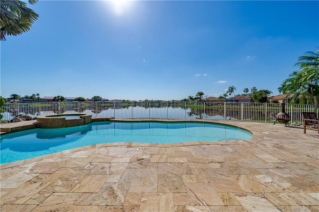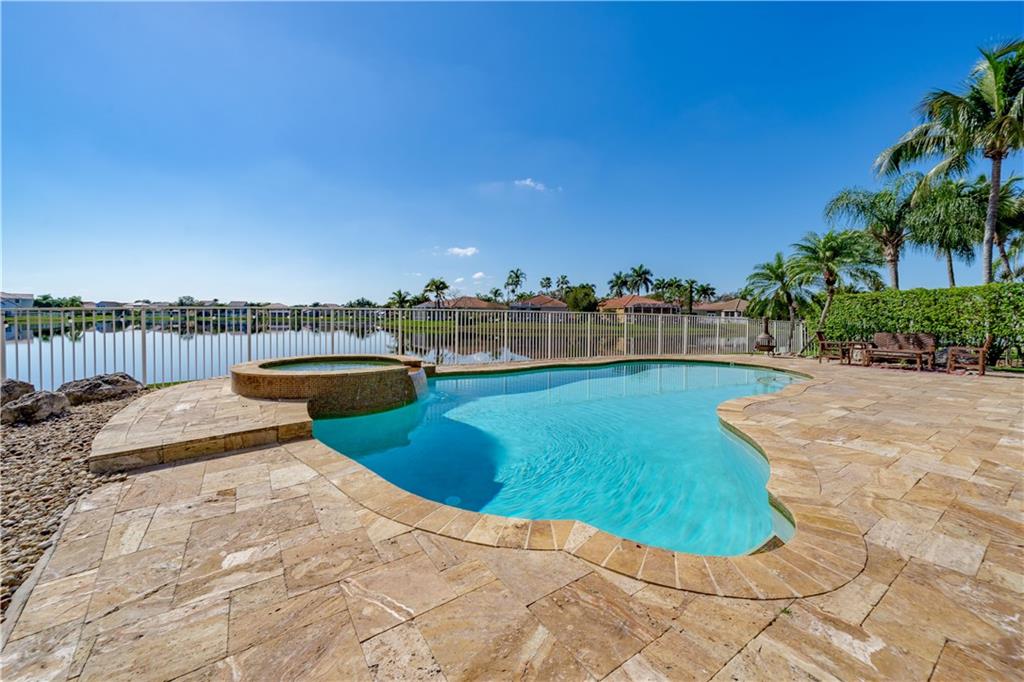 Enjoy one of the most gorgeous expansive lake views in Weston from this substantially remodeled 4br/2.5ba two-story home w/ nearly 100ft of lakefront on an oversized pie-shaped lot. Large heated salt system pool & hot tub w/ vast marble deck. Floor 1: Foyer, Living Room, 20ft volume ceilings; Dining Room, Kitchen, Family Room, beautiful pool & lake views through double French Doors; Powder Room w/ marble wall & floor tile; Laundry Room; Two-Car Garage; XL 12"x48" Italian wood plank porcelain tile flooring. Floor 2: Lakefront Master BR, ensuite BA w/ separate tub & shower, separate WC; three Guest BR (one used as office); remodeled Guest BA; new 9"x60" luxury XPL wood plank flooring. New Smart Light controls. Accordion & Electric Roll-Down Shutters. Transferable Home Warranty Plan (AHS).