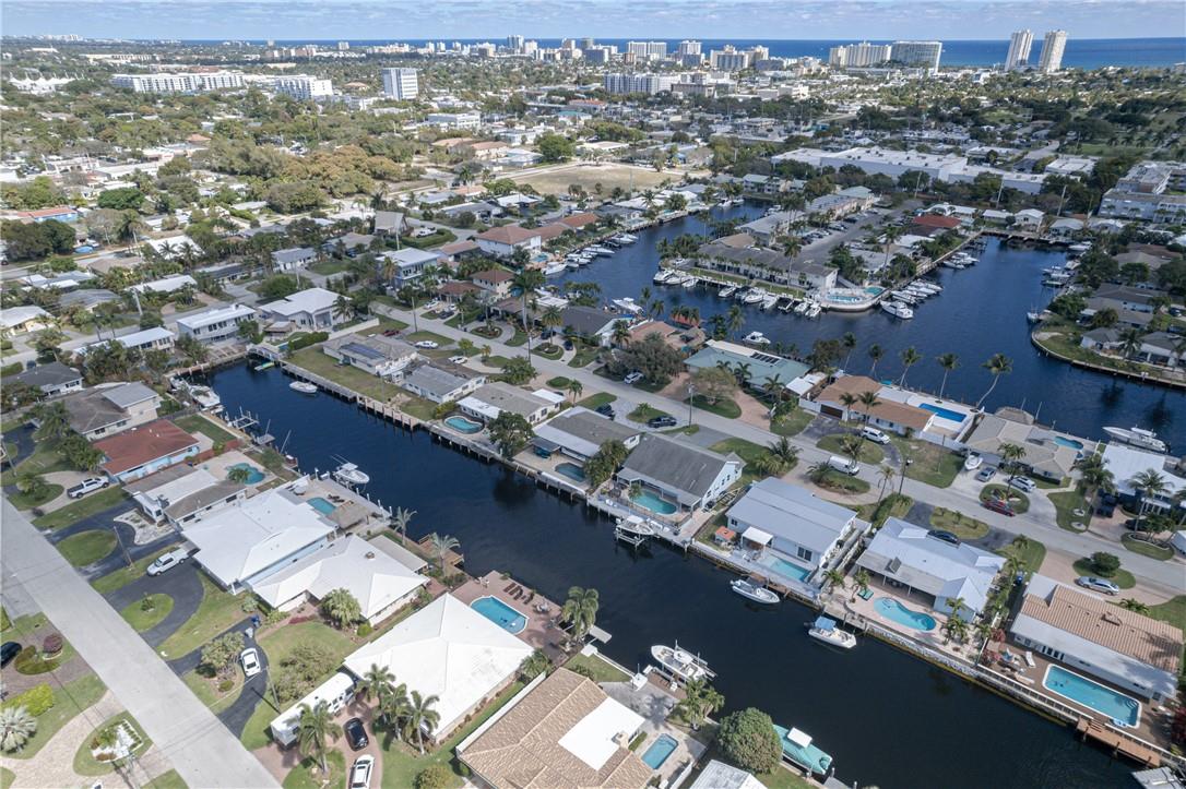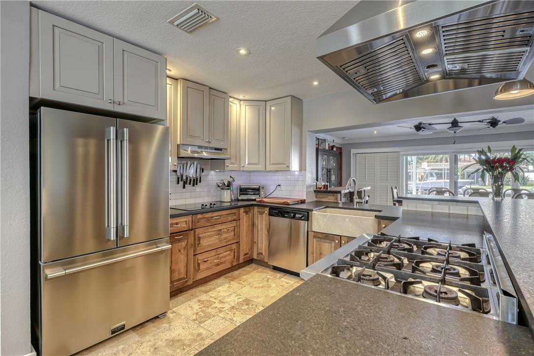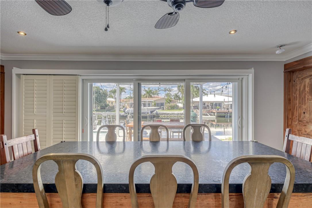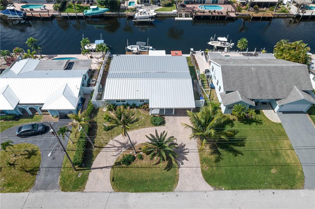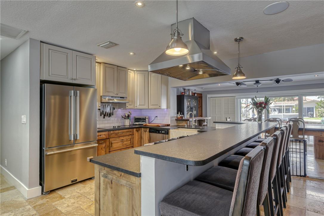 SNUG HARBOR: Situated on 70 feet of water, this home features 4 bedrooms, 2 bathrooms, 1 car garage, pool & is fully remodeled! Only 1 bridge at Federal Highway. Travertine floors throughout, recessed lighting, Plantation shutters, crown molding+++. Open kitchen has bar seating for 6, stainless appliances, leathered granite, built in pantry, 6 burner gas stove & more! Multiple living areas including dining & family room offer great space & wonderful water views. Spacious master w/ walk in closet, sliders to the pool, large shower & double vanity. Fenced yard, custom pergola, large covered patio, heated salt pool. Fully upgraded w/ impact windows & doors, upgraded electrical, metal roof 2022, AC 2022. All ages, no HOA, rentals OK. Enjoy waterfront living at its finest!