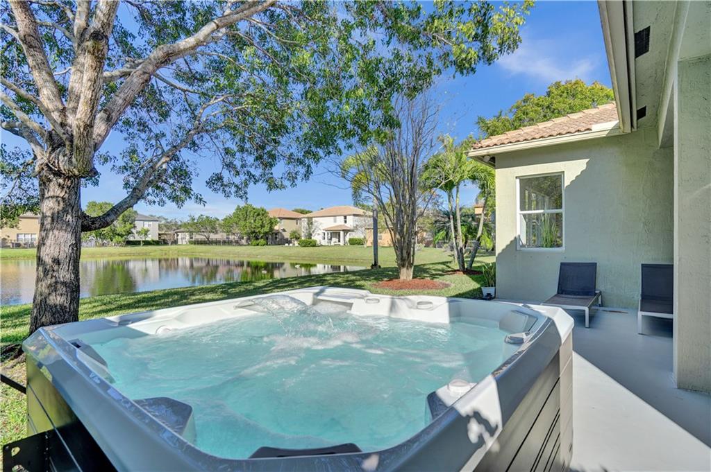 Spectacular one-story Home boasting an open, bright, airy floorplan with amazing and relaxing lake views. Featuring 4 bedrooms plus a Den, 3 bathrooms, this home is perfect for anyone who loves to entertain. Totally updated and upgraded with modern finishes: flooring, kitchen, bathrooms and so much more. One of the standout features of this home is the top of the line spa with salt water. Whether you're looking to relax after a long day or entertain guests, this backyard is sure to impress. Isles at Weston is an exclusive guard gated community offering resort-style amenities that include a gym, two swimming pools, game area and so much more. This is a must-see! You won't be disappointed.