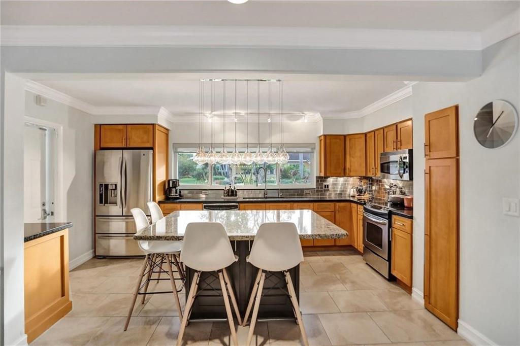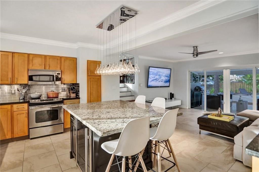 Desirable Coral Ridge Neighborhood in Bayview School District! Well-maintained Mid-Century Modern, multi-level home, designed by South Florida architect, Charles McKirahan, features 3BDRM, 2.5BA situated on a beautiful berm lot. Split bedroom floor plan, renovated second bathroom with Porcelanosa tile and European fixtures. Lower level features kitchen space with large island countertop and open living area with impact sliding glass doors leading out to the backyard oasis. Driveway and pool deck were completely remodeled in 2015 with travertine marble. Lush backyard features an oversized heated, salt water pool with built-in sun deck great for entertaining. Hurricane impact windows throughout, New A/C, full-size 2 car garage. This home is turn-key, move in ready.