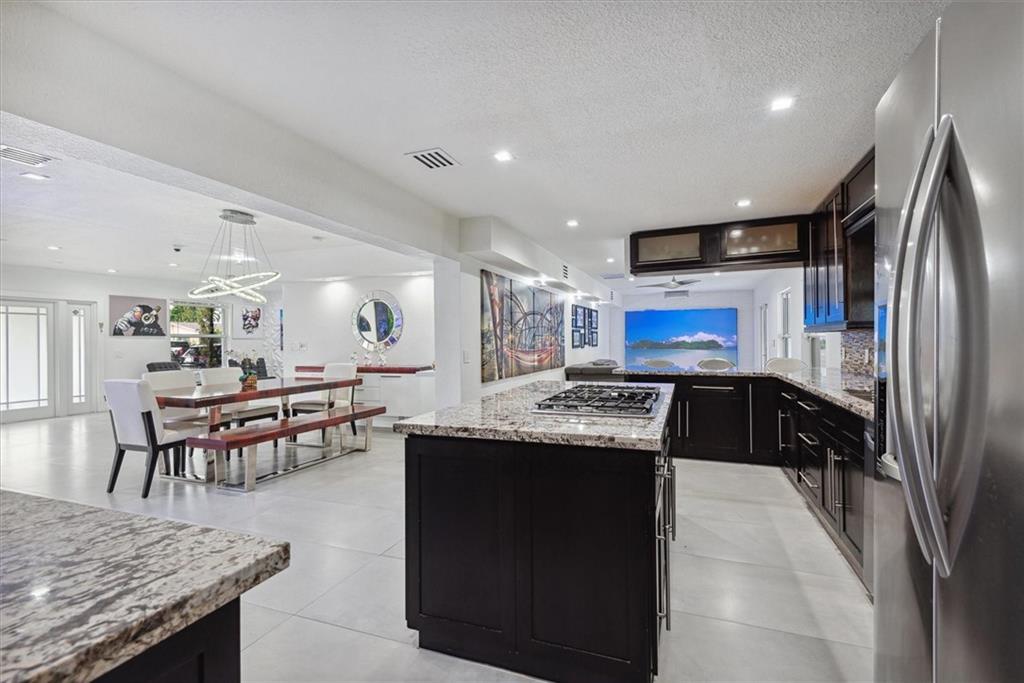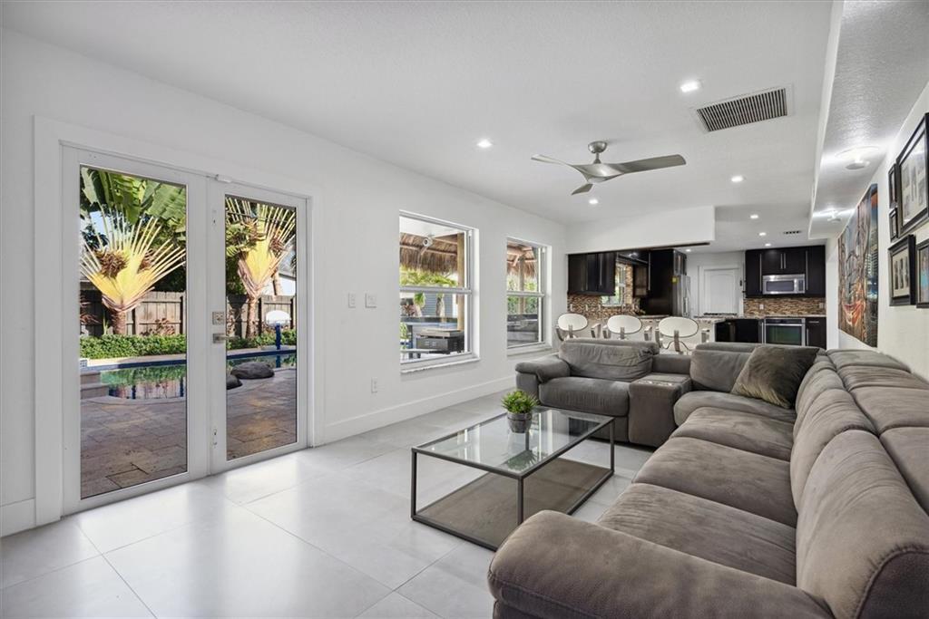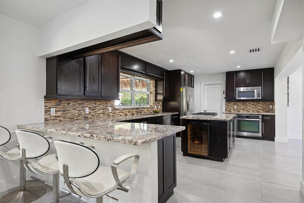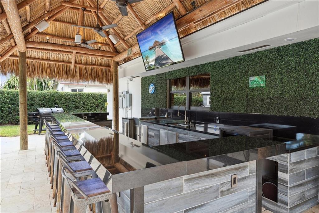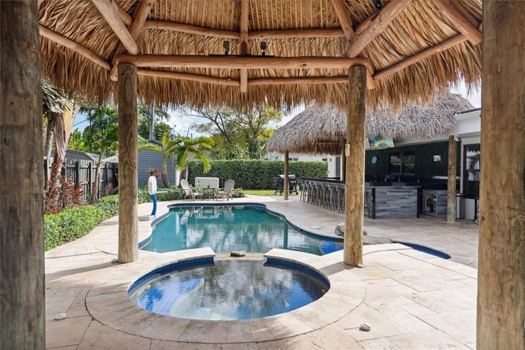 This renovated home is an entertainer’s dream! The backyard features a pool with jacuzzi (added 2017), ample patio space and an oversized bar covered by a 30x15 tiki hut. Outside there is an extra shed/workshop & generator. Inside the home you will find contemporary finishes throughout, and it has been wired for alarm, security cameras, full A/V rack, Lutron lighting & wifi thermostat. The open kitchen is surrounded by plenty of living space all with porcelain tile floors. The primary bedroom is split from the two guest bedrooms. All closets have custom cabinetry. Hurricane impact doors & windows. Great, convenient location! Situated in Pickwick Lake Estates just minutes to I-95 and houses of Worship, also close to Aventura Mall, Gulfstream and beaches.