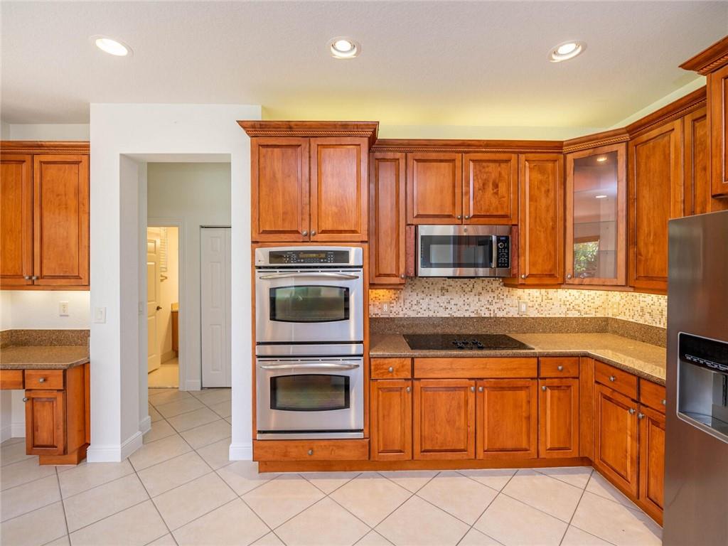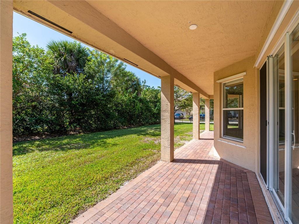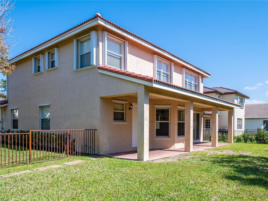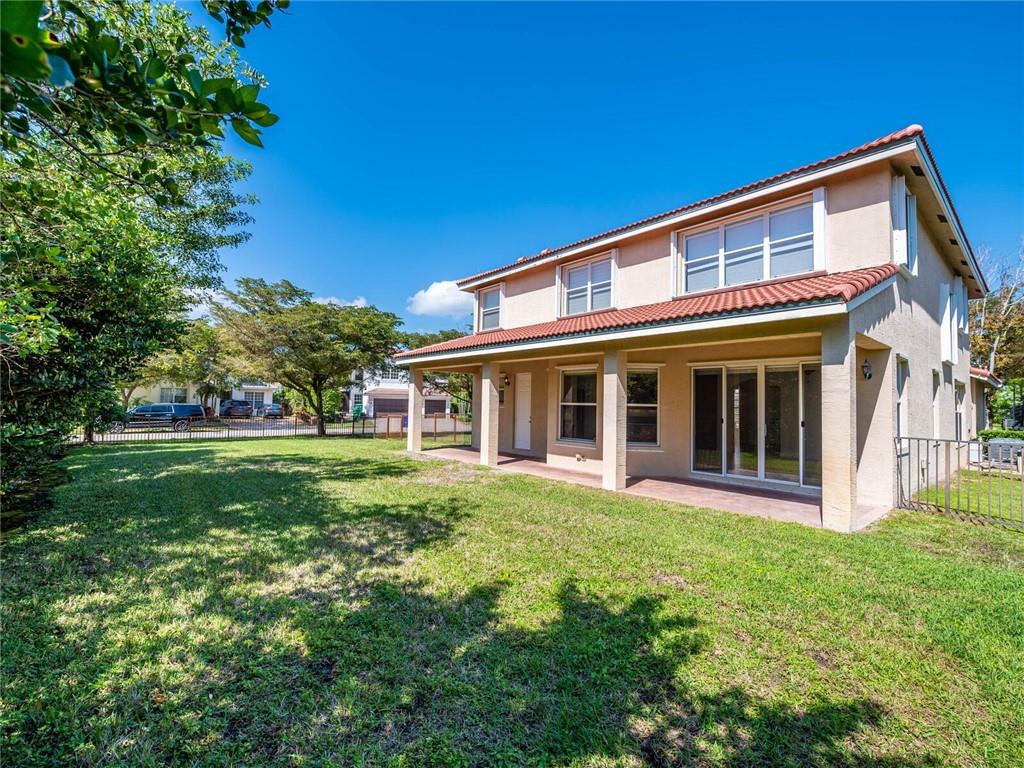 OPEN AIRY AND BRIGHT FEATURING 16X16 STONE FLOORS ON DIAGONAL, HARDWOOD FLOORS STAIRWAY AND UPSTAIRS, SOLID WOOD IRON RAILINGS. CUSTOM WINDOW TREATMENT THROUGHOUT, ROOF WITHIN 3 YEARS NEW, ACCORD SHUTTER 2ND FLOOR WITH HURRICANE PANELS BELOW, GRANIT AND STAINLESS KITCHEN WITH EXTENDED WOOD CABINETRY WITHIN 3 YEARS NEW, CUSTOM CLOSET BUILT INS, COVERED AND EXTENDED PAVERED PATIO, PRIMARY BEDROOM WITH EXTENDED SITTING AREA/OFFICE, ALL BEDROOMS WITH CUSTOM PLUSH CARPETING, THIS HOME HAS 5 BEDROOMS PLUS DEN, IMMACULATE AND BRIGHT, MUST SEE TO APPRECIATE!