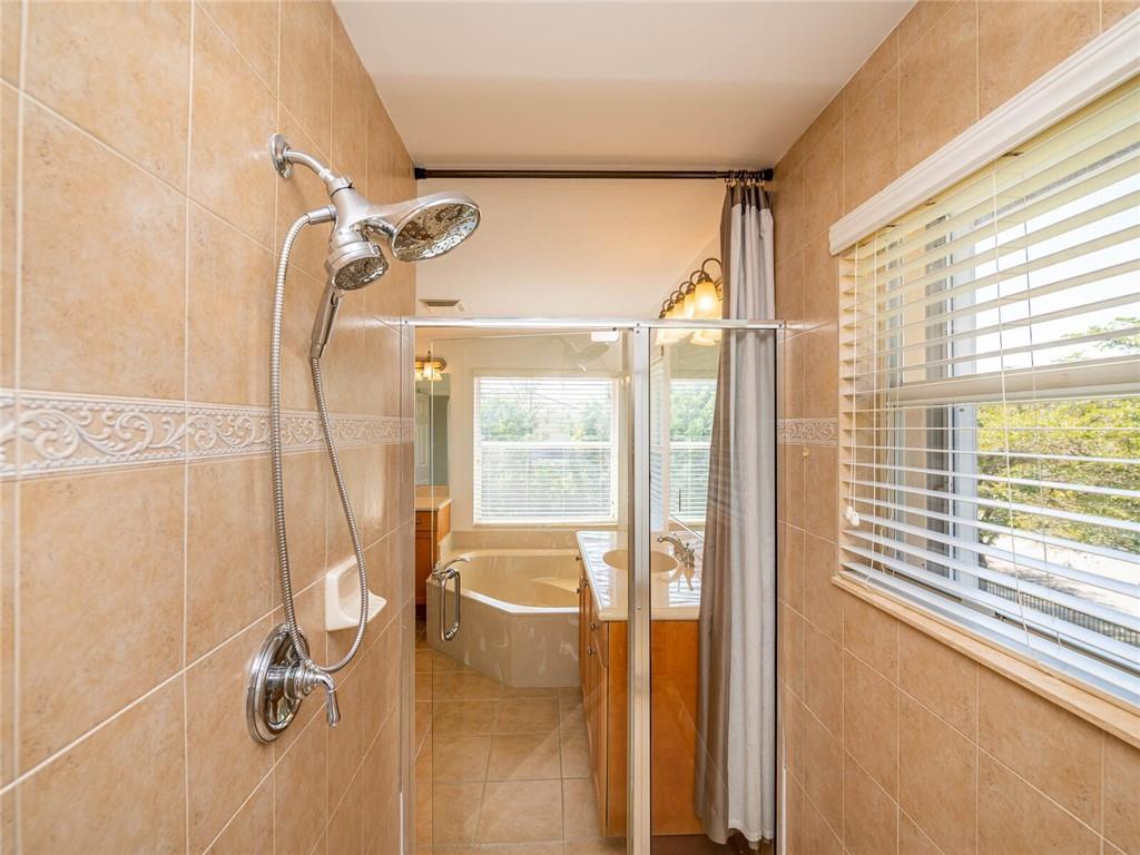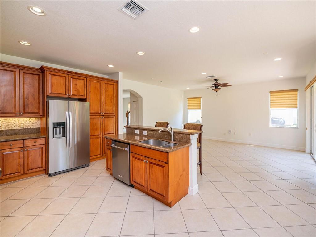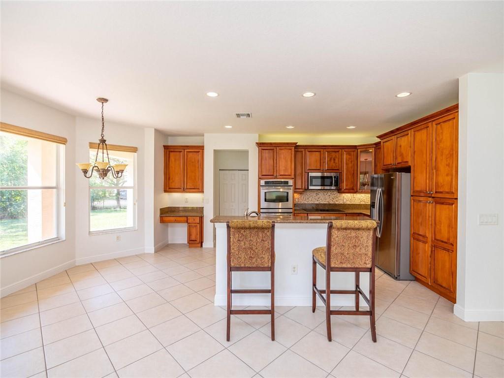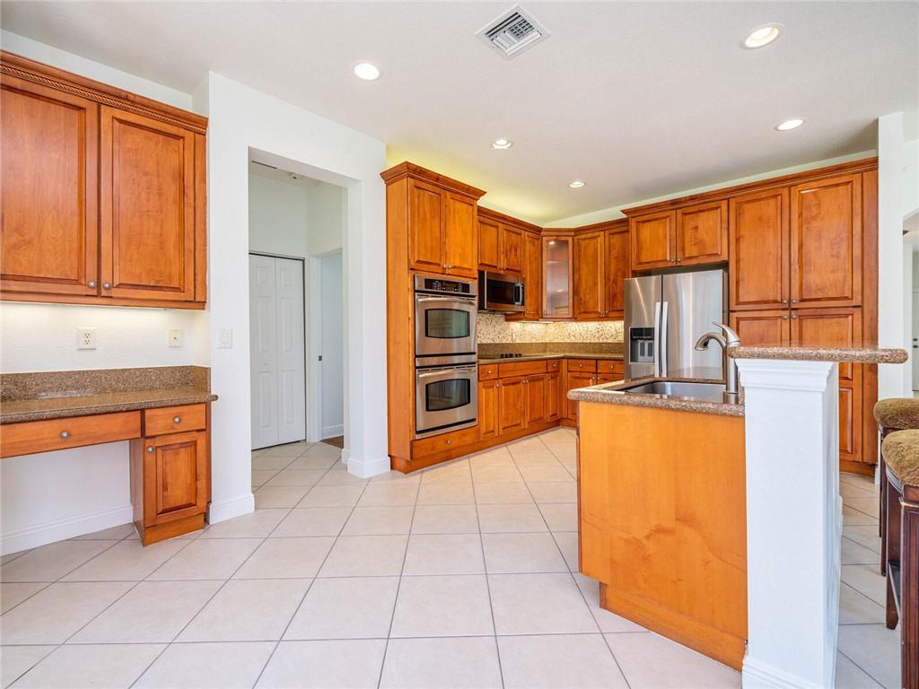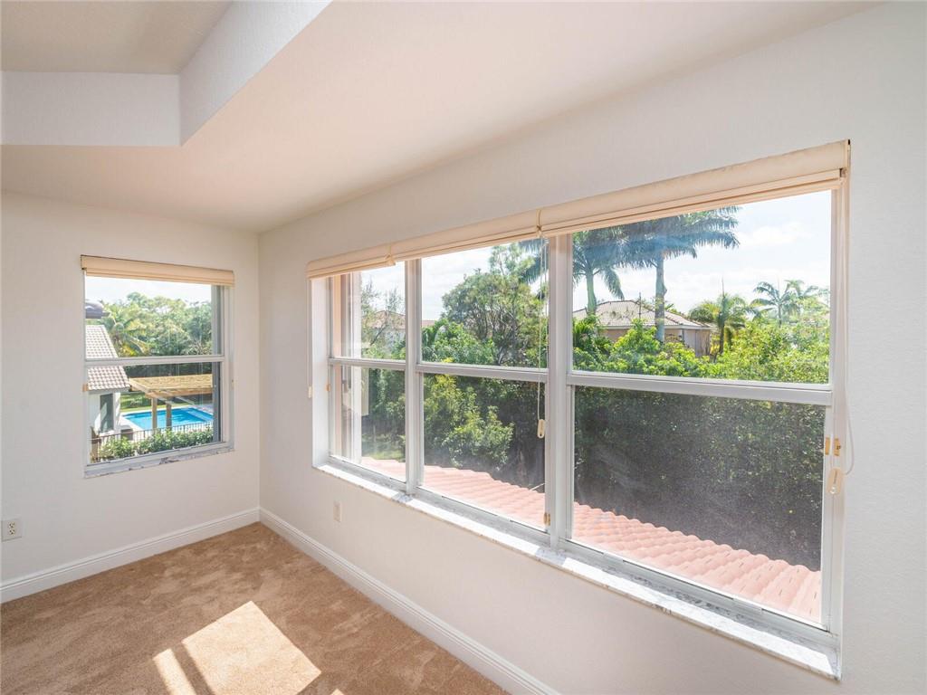 OPEN AIRY AND BRIGHT FEATURING 16X16 STONE FLOORS ON DIAGONAL, HARDWOOD FLOORS STAIRWAY AND UPSTAIRS, SOLID WOOD IRON RAILINGS. CUSTOM WINDOW TREATMENT THROUGHOUT, ROOF WITHIN 3 YEARS NEW, ACCORD SHUTTER 2ND FLOOR WITH HURRICANE PANELS BELOW, GRANIT AND STAINLESS KITCHEN WITH EXTENDED WOOD CABINETRY WITHIN 3 YEARS NEW, CUSTOM CLOSET BUILT INS, COVERED AND EXTENDED PAVERED PATIO, PRIMARY BEDROOM WITH EXTENDED SITTING AREA/OFFICE, ALL BEDROOMS WITH CUSTOM PLUSH CARPETING, THIS HOME HAS 5 BEDROOMS PLUS DEN, IMMACULATE AND BRIGHT, MUST SEE TO APPRECIATE!