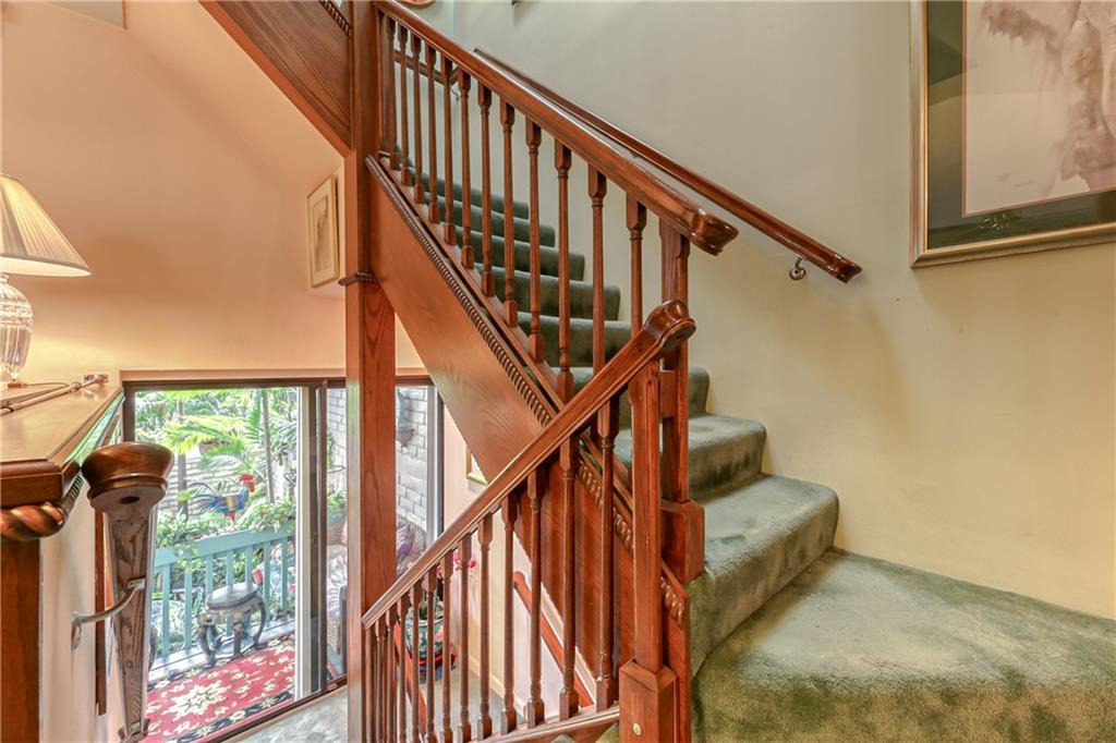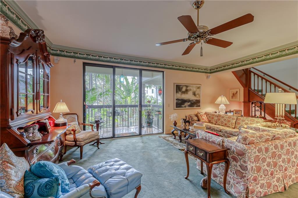 This Victoria Park Place townhouse has privacy in the back patio, with no other townhomes obstructing the breeze. This model has 2 bedrooms with an open den/office. Some owners have easily enclosed this area for a third bedroom. Large primary bedroom suite with dual sinks and two walk in closet. Main living area has a nice balcony overlooking the lovely garden patio. This unit has the A/C condenser located outside the back fence, so you do not hear that motor sound. Home has wooden Plantation shutters, protected by hurricane Roladen shutter system, metal front door, and impact garage door. #1408 is located "outside the gate", which means you have 2 parking spaces in front of your 2 car garage. Association coated roofs on in 2016. 2 pets OK. (Dining room chandelier NOT included).