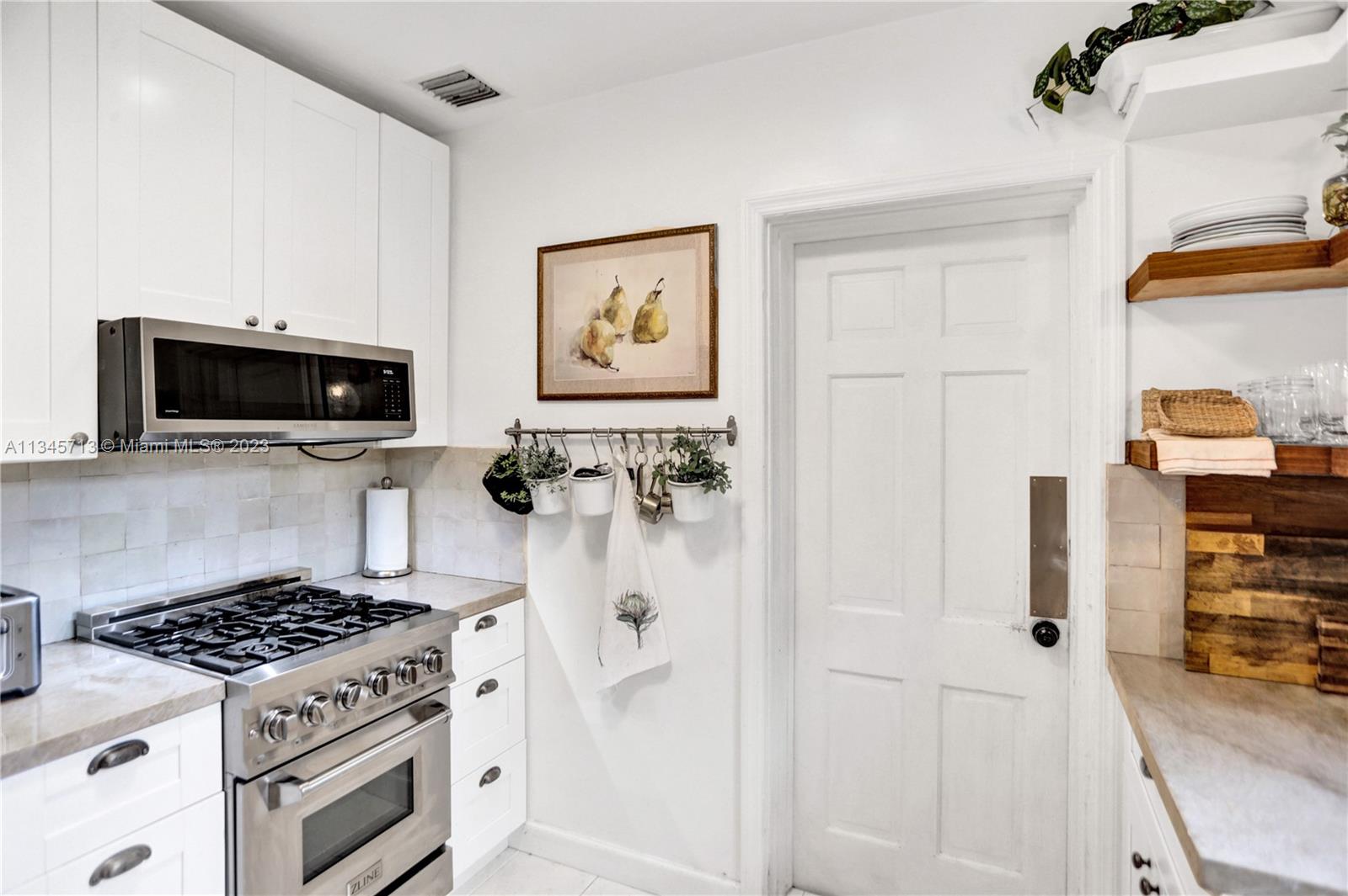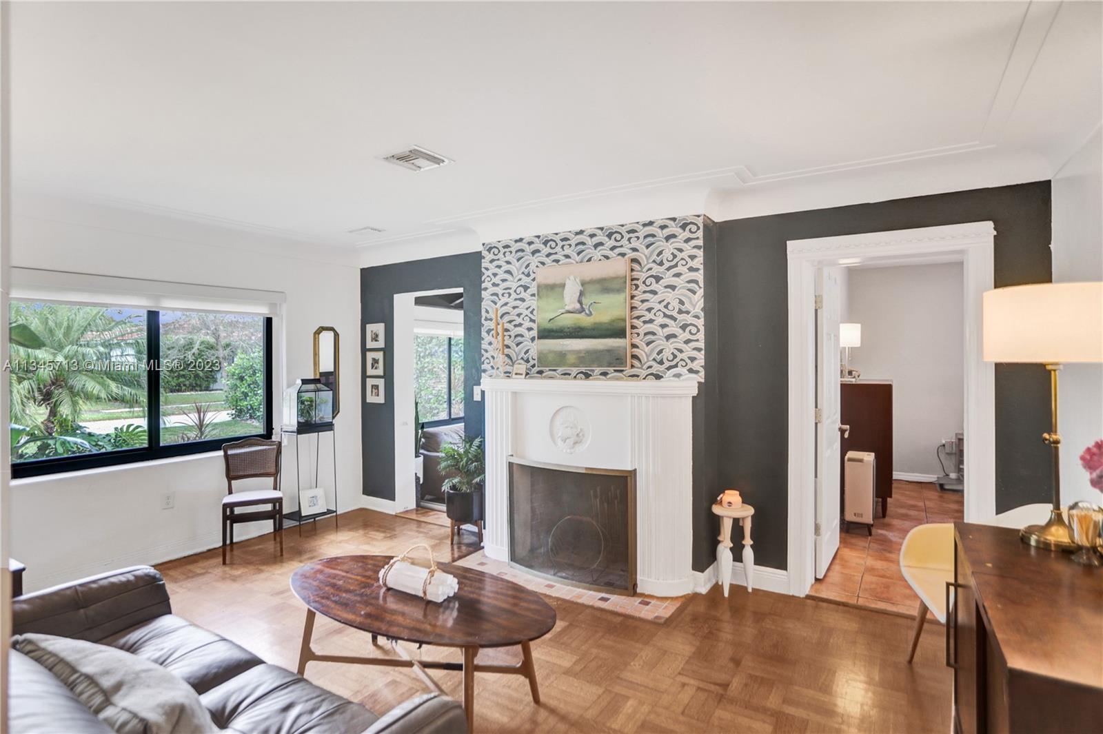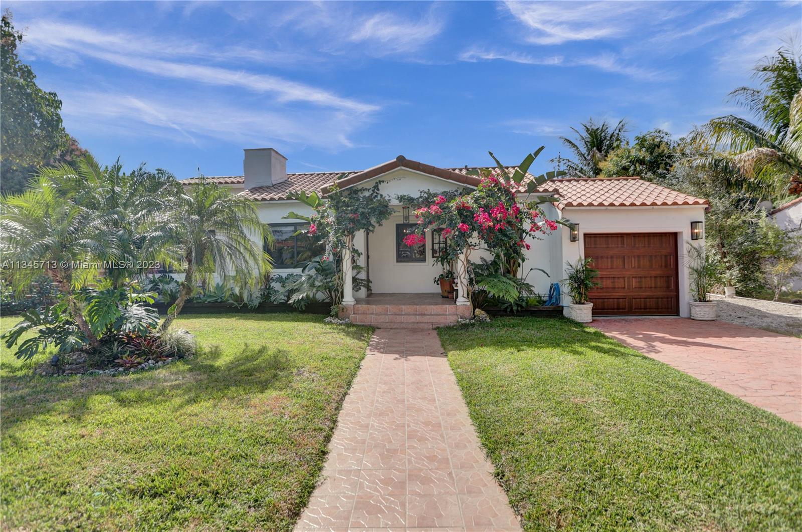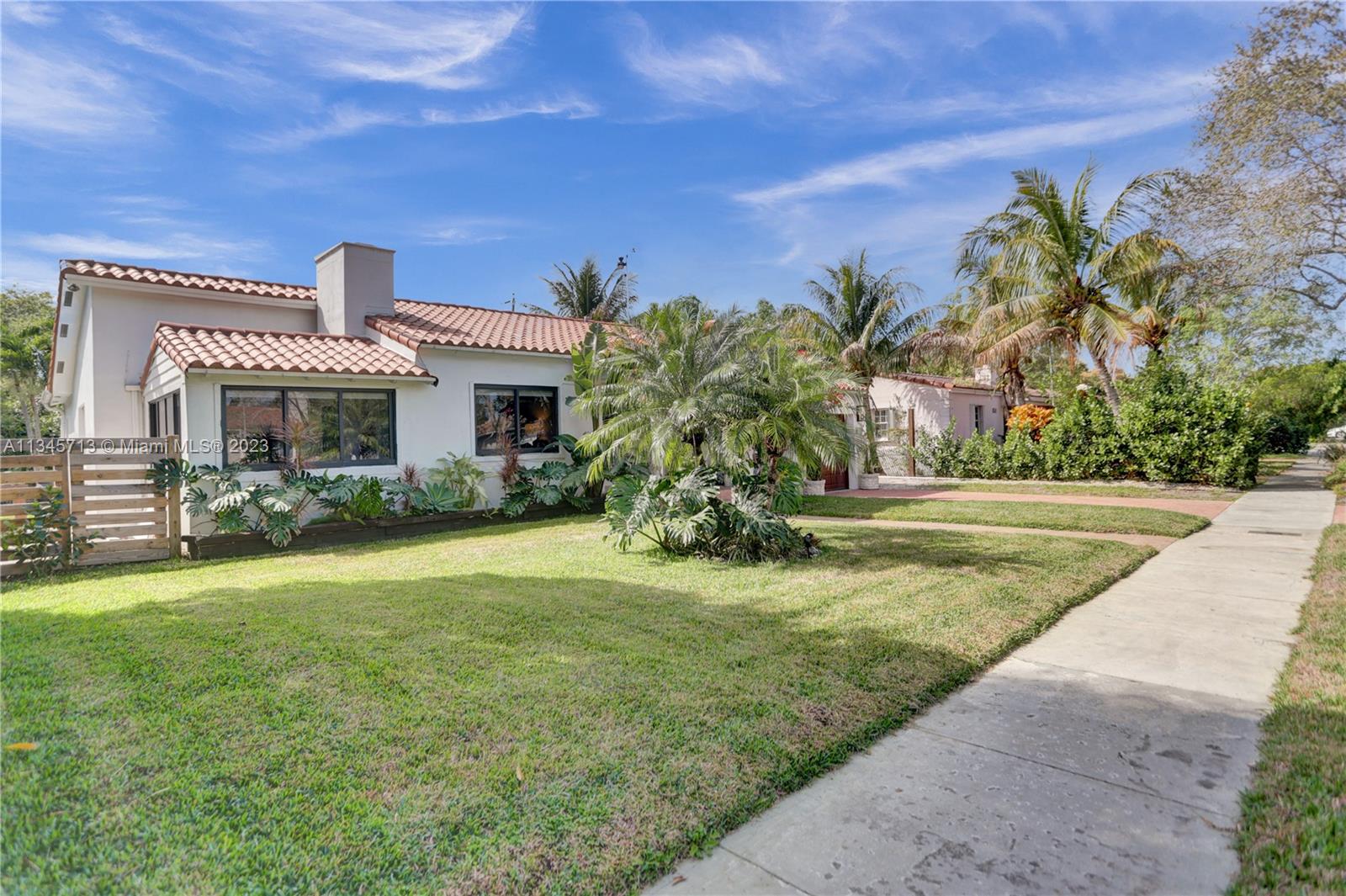 Stunning One-Of-A-Kind Vintage 3 bed, 2 bath, 1,679 SF on oversized 8,100 SF lot. Welcome to your new home in the exclusive Miami Shores Village nestled on a quiet cul-du-sac. Resplendent home has been lovingly updated while preserving rare design features such as cove ceilings, Deco fireplace with Bas-relief, original hardwood floors, intricately carved moldings. Unique finishes include hand cut Moroccan Zellige tile, quartzite stone counters, tumbled marble tile, beverage bar, South African Braai outdoor Fireplace/Grill, Pergola. Primary suite w/spa tub, separate shower, walk-in closet. Impact windows & doors, new HVAC, updated electric, new SS appliances, new washer & dryer, keyless entry, Bluetooth irrigation. Showstopping Bougainvillea and bird of paradise grace the covered entryway.