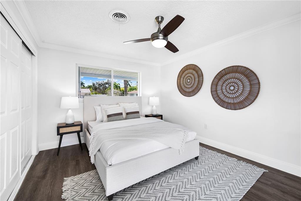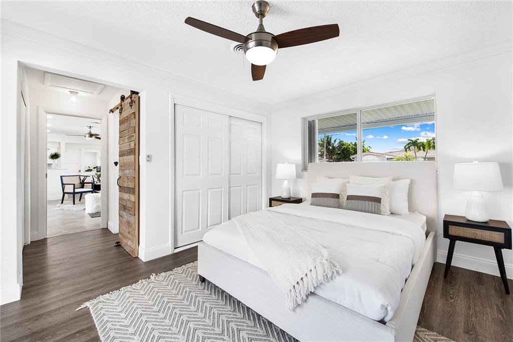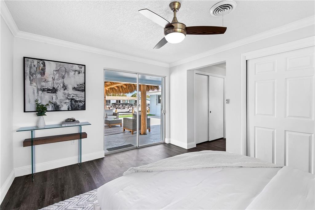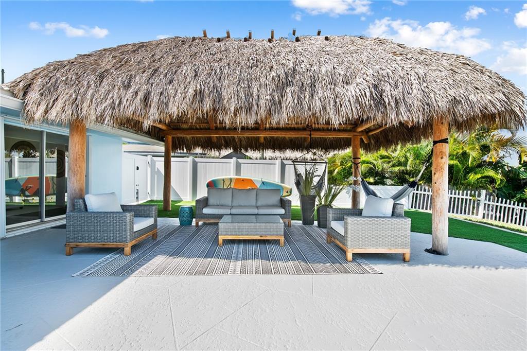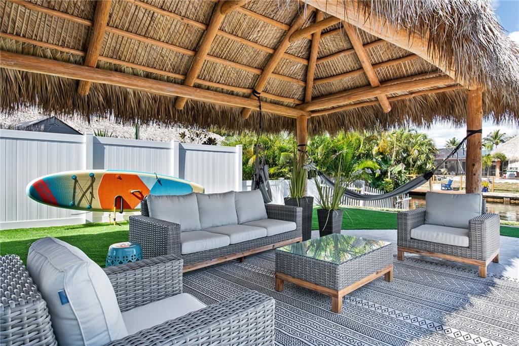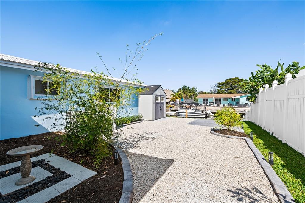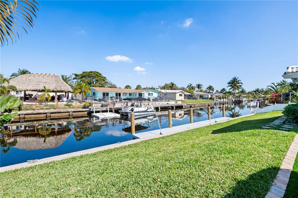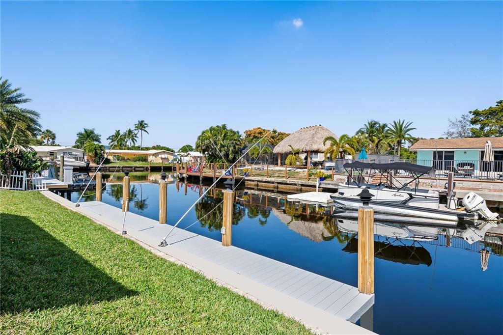Welcome Home to your waterfront tropical oasis! Enjoy ocean access (fixed bridges), private dock with power & water. Fully fenced meticulous outdoor space, complete with Tiki Hut, astro turf, shed, xeriscaped side yard and stamped concrete patio. Natural light abounds in this 3 bed 2 bath spilt floor plan. Home boats remodeled primary & guest baths, tile & laminate flooring throughout, warm wood interior & exterior accents, new water heater 2022, accordion storm protection, 2 car carport & spacious laundry / utility room. Contact us today!