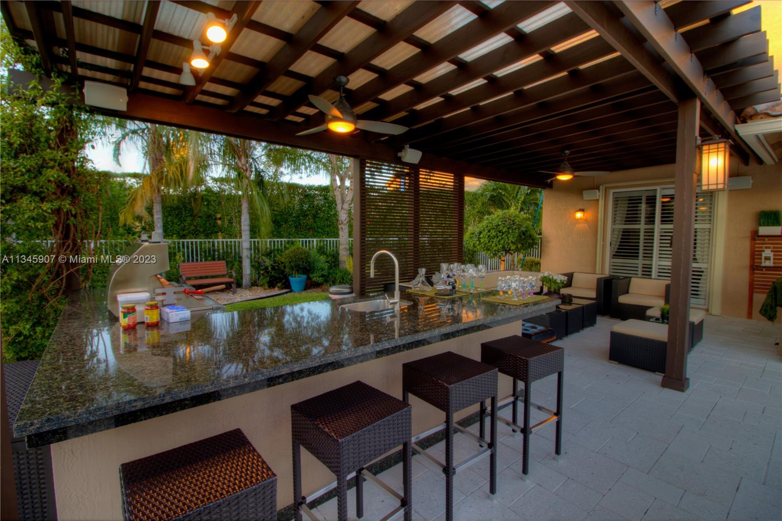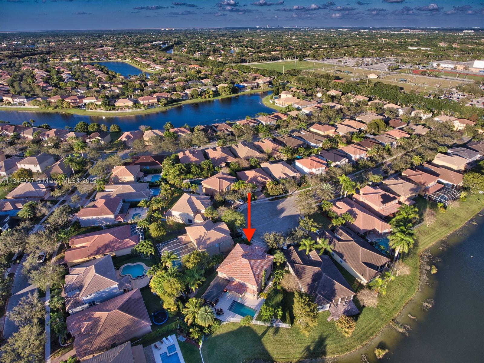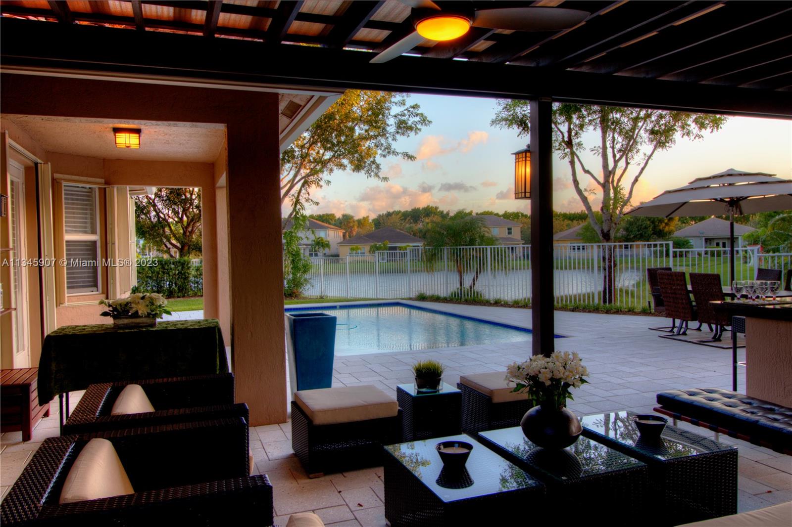 Stunning Waterfront home w/5 bedrooms + oversized 2nd floor den. At Cut-de-sac, gorgeous outdoor kitchen area with Salt water Pool and beautiful lake view! Huge backyard. Smart Home controlled via WIFI. Walking distance to A Rated Public Schools. Resort community amenities include pool/spa, basketball, tennis, volleyball, playground, clubhouse w/fitness center & more! Easy commute to Miami, Ft. Lauderdale, Ocean/beaches & nightlife!