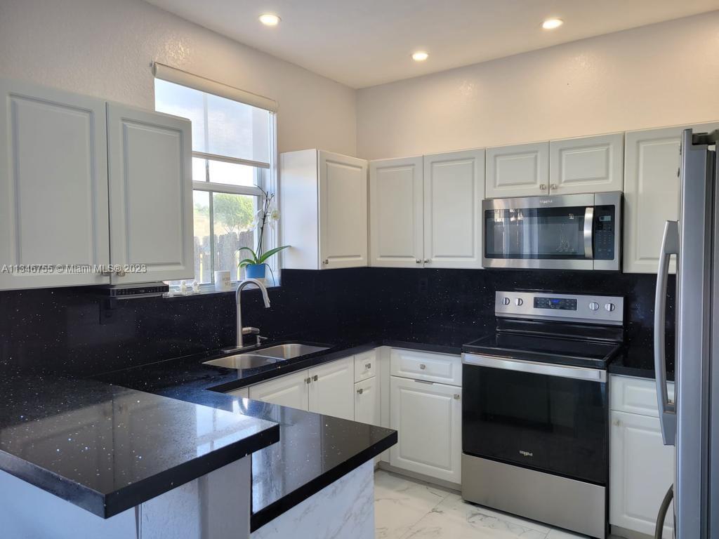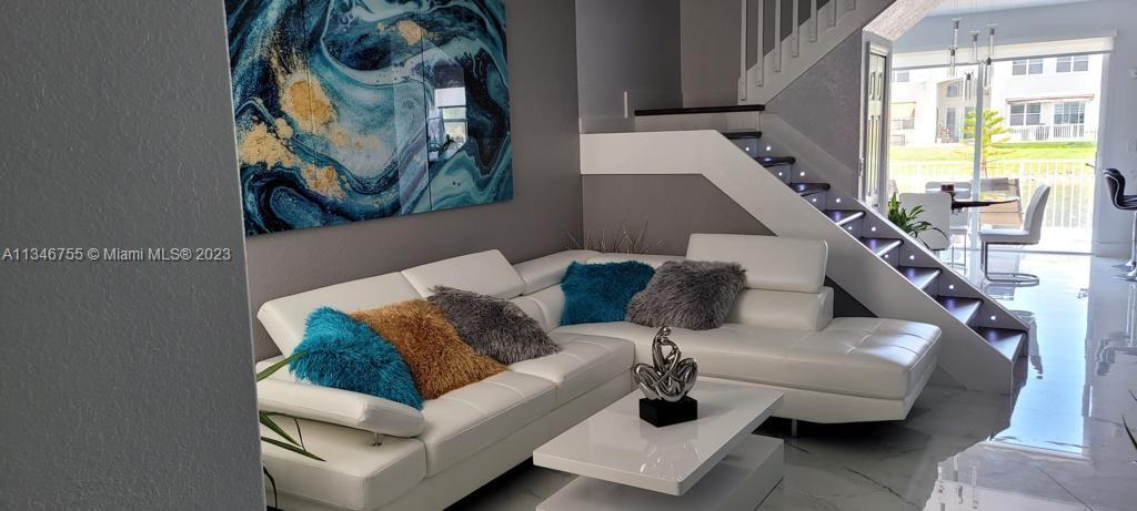 Stunning newly remodeled 3/2.5 with a lake view townhouse for sale in a Gated community Windward! Beautifully boasting its spacious area with modern kitchen with stainless appliances. Combination of porcelain on the first floor and laminate on the second floor. Car garage was converted into a 4th small room that can be used as an office or bedroom and the other part of the garage can be used as a storage room. 2 Parking spaces available in the driveway. Clubhouse w/ pool, tennis, basketball, meeting and event rooms, & gym are just steps away from house central. Very convenient as it is close to schools, shops, expressways, and malls! Close also to Miami International Airport! Be prepared for 'love at first sight'. Schedule your showing before it’s gone.