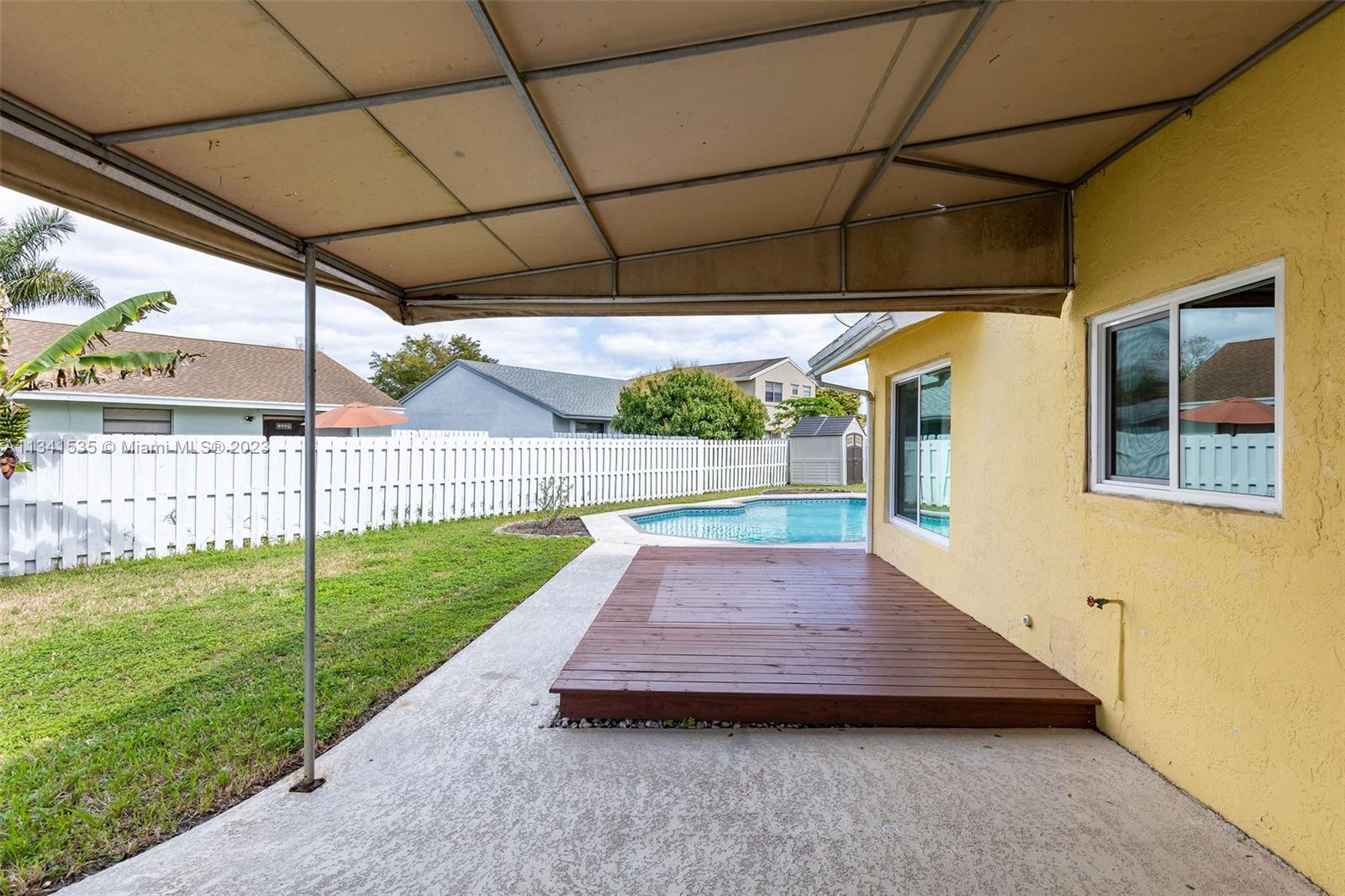 Great location in the quiet community of Shenandoah. This 4/2.5 home is located in a cul-de-sac and has a large lot with a covered porch and swimming pool in a fenced-in backyard. Oversized kitchen features island, granite countertops, double oven and wood cabinetry and adjacent media room. Impact windows and doors throughout, vaulted ceiling in the dining-living room area with multiple sliding doors allowing lots of natural light. Easy access to major highways, shopping, restaurants, good schools, playgrounds, and more. The community is very well maintained with a low HOA fee.