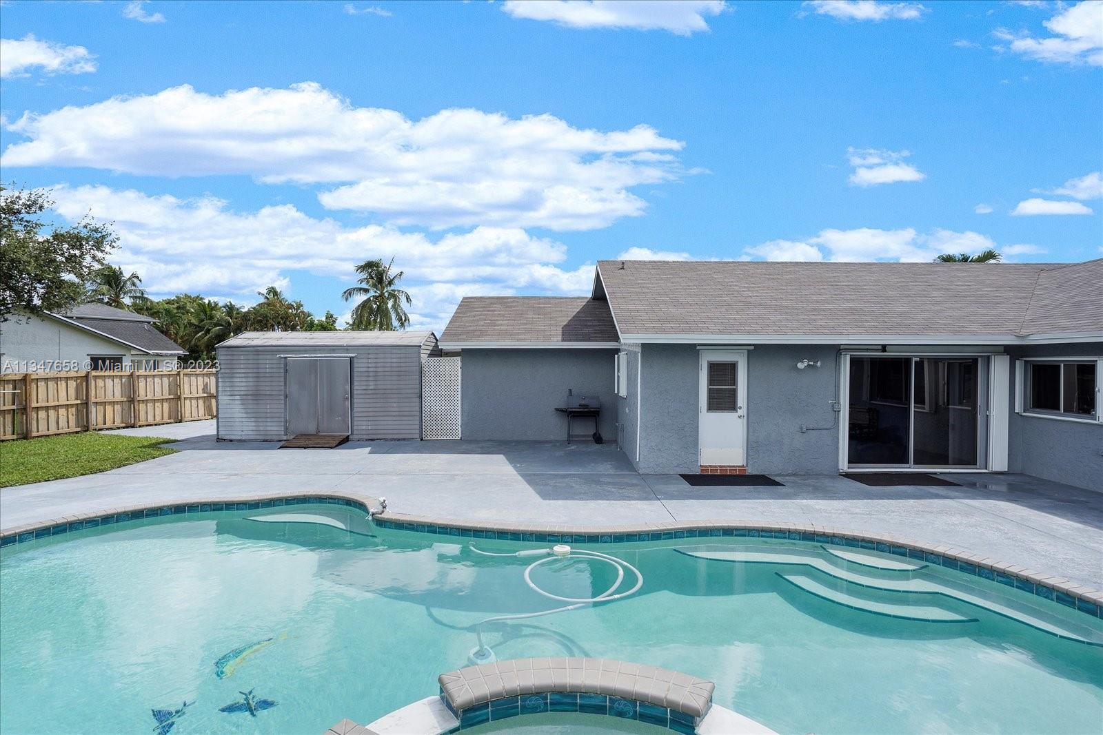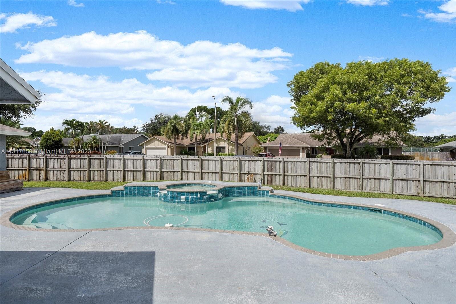 Spacious 4 Bedroom 2 Bath home WITH Pool & New Roof in Davie! This home features a formal living & dining room, an eat-in split floor plan, and large rooms. There is an eat-in kitchen that is open to the large family room. The Primary Suite is beautifully remodeled with custom closets & stunning ensuite bath. This corner lost has a massive yard that is completely fenced. There’s lots of green space, the pool, covered patio, and a concrete pad to park boat or RV.