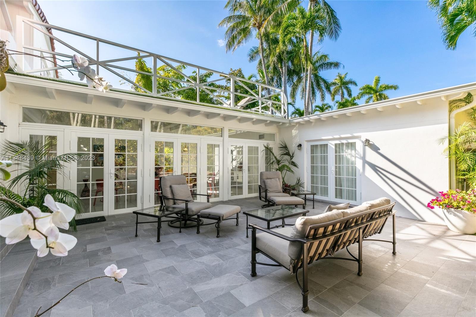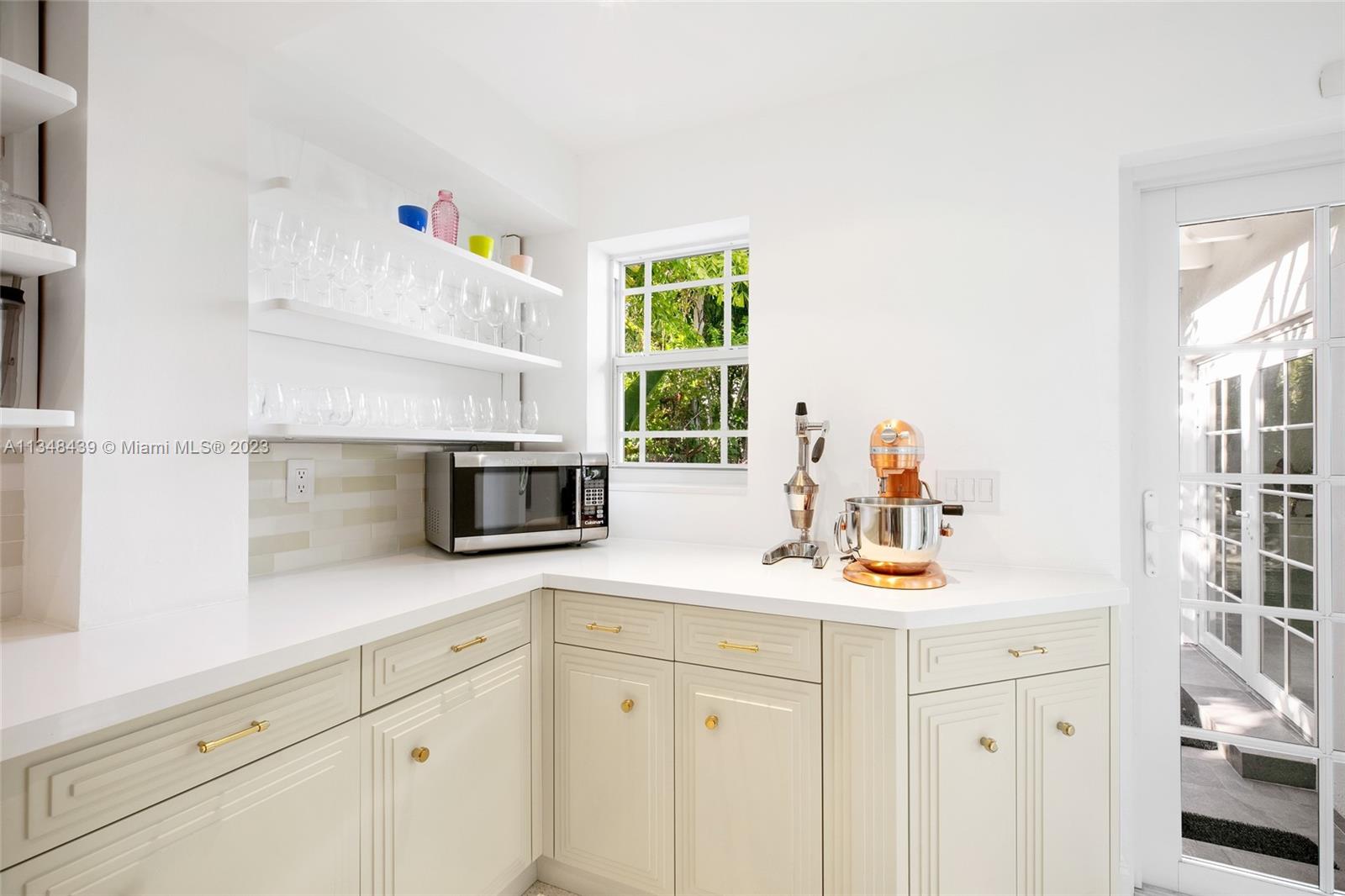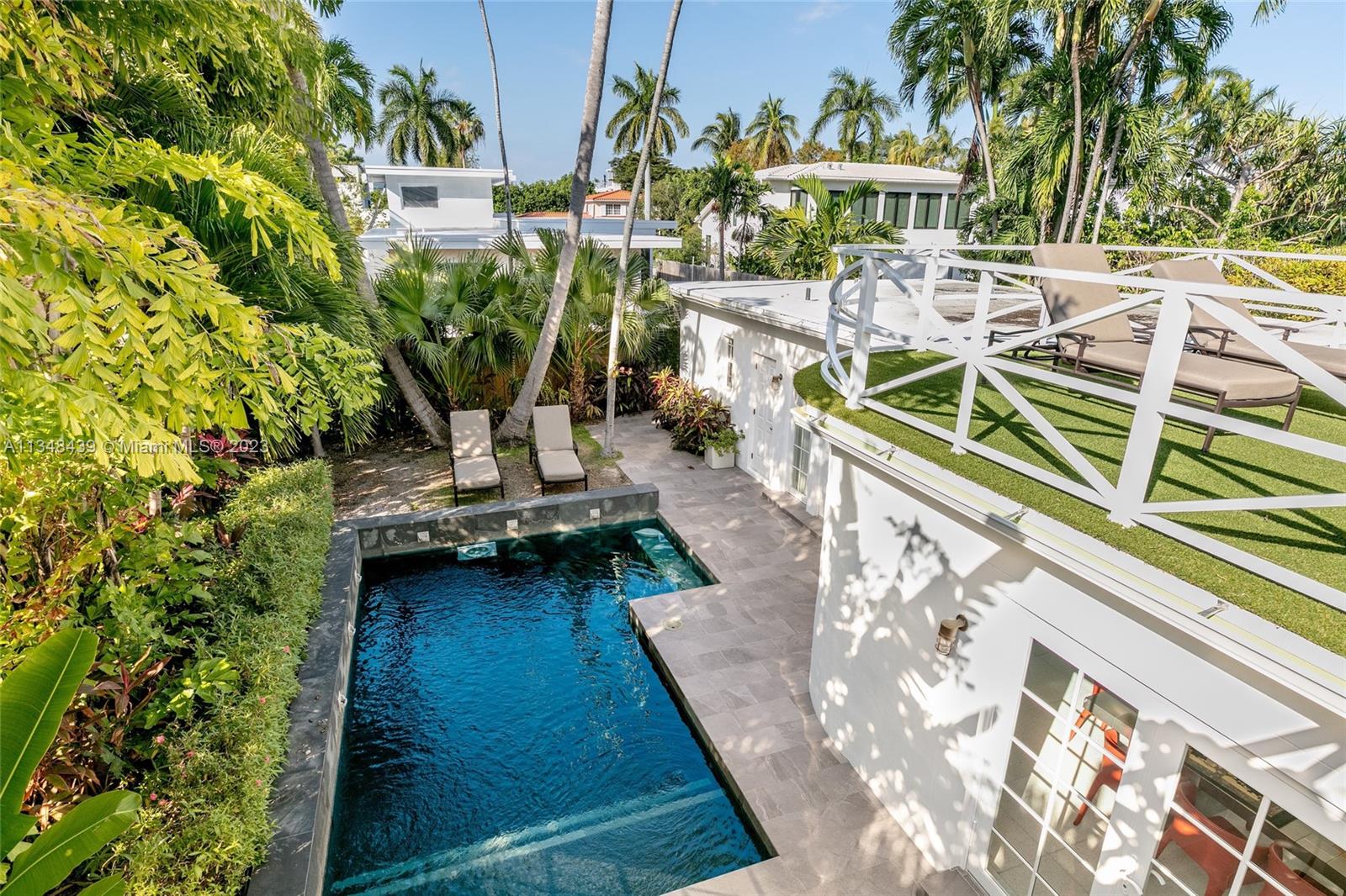 Tucked behind lush landscaping, this fully renovated Miami Beach Bungalow exudes charm & features vaulted ceilings, immaculate terrazzo floors, custom built-ins and abundant natural light through high impact floor-to-ceiling windows. A Gourmet kitchen has a Viking gas range stove & stunning white cabinetry. The home features Updated electric and plumbing as well as a brand new Roof. The ground floor primary suite has a large walk-in closet & spa-like bathroom w/ intricate tiles, free-standing tub & dual sinks. Enjoy a salt water pool & open patio which features French doors that lead into the dining room & access to the primary suite. 2 Car driveway w/ electric for charging. Walking distance to the trendiest shops, restaurants, Trader Joes, Fresh Market & fitness studios in Sunset Harbour.