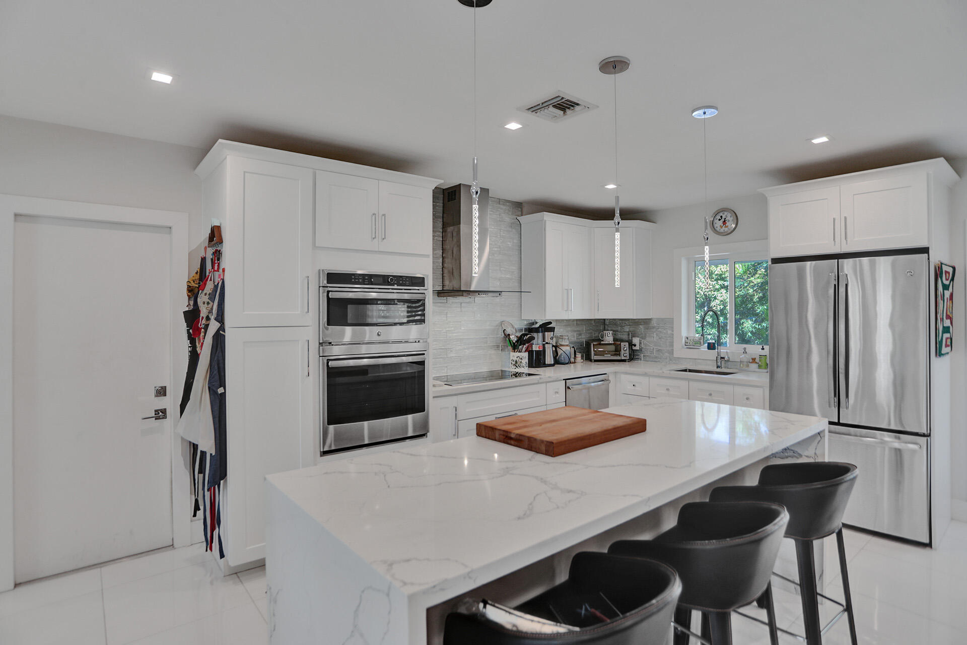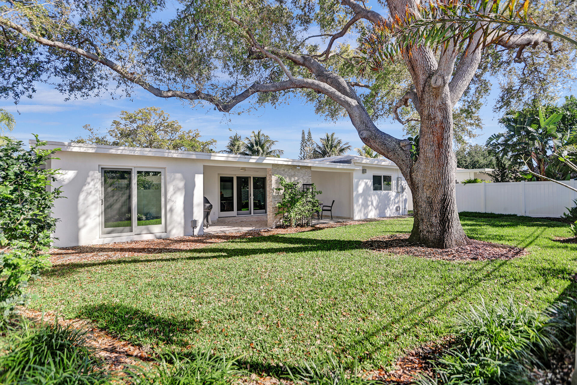 The Sophisticated interior by Ed Albers of DCOR, Rehobeth DE, really shines in this 3/3 Coral Shores gem...thoughtful, elegant finishes throughout this fully updated home in a wonderfully convenient location less than 2 miles from the beach and all that FLL has to offer...Full impact windows and doors, beautiful open kitchen with quartz countertops, island and GE Profile appliances including induction cooktop, 3 bedrooms and 3 full bathrooms (2 en-suite), updated electric, built-in queen sized murphy bed, LED lighting and large format porcelain tile throughout, fantastic covered patio area with built-in bio fuel fireplace and electric for TV, fully fenced backyard with plenty of room for a pool if desired, one car garage and circular drive for plenty of parking...gorgeous and move in read