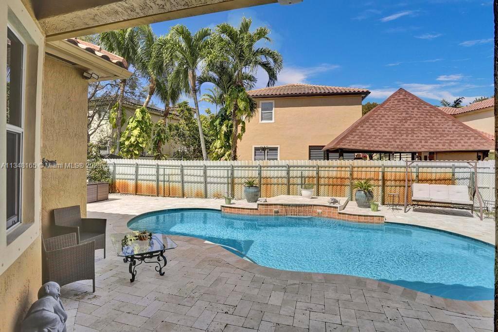 Great Escada Estate, well maintained home with 4 bed / 3 bath and pool. Remodeled bathrooms, 1y.o. AC, new floors. Lots of natural light, open floor plan, plenty of entertainment space. This one story Bergamo model has a 3 way split plan. Large Master bedroom with a huge built in walk in closet. Large Family room overlooking the pool and a private back yard. Viscaya is a gated community with plenty of amenities, including a gym, a clubhouse, a pool. Great schools, minutes to major highways. Won't last long - call today.