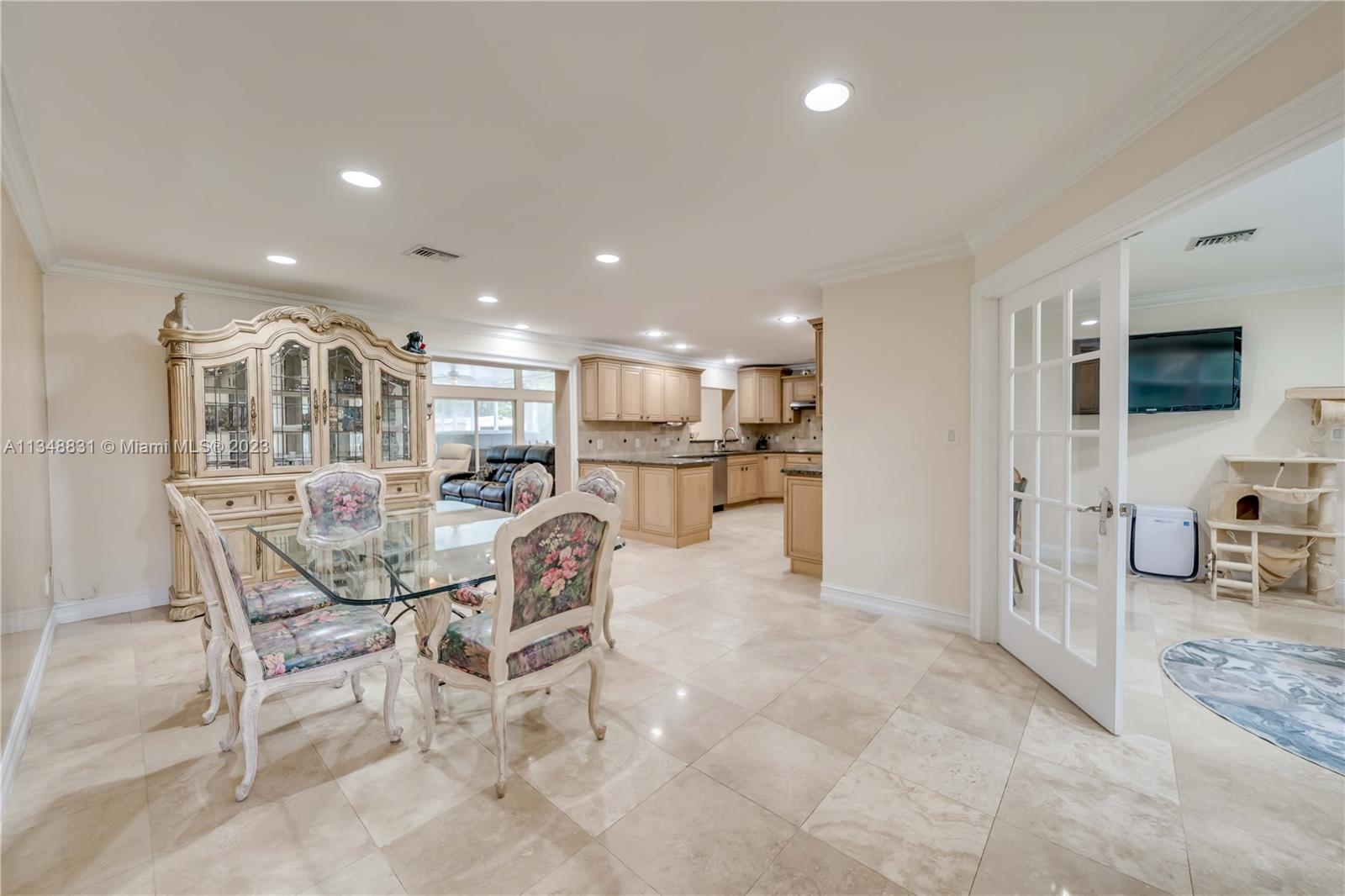 Fantastic 4 bedroom/ 2 bath home on a deep 1-acre lot in Davie! No HOA! Renovated kitchen features wood cabinetry, granite countertops, stainless steel appliances, double oven. Impact glass windows/doors throughout & impact garage door! Gas generator installed in 2018! Rheem AC (2016). Water heater (2018). Marble floors throughout main living areas. Crown molding & recessed lighting. Screened in patio area w/ oversized, above ground swim spa and jacuzzi. Wood burning fireplace. 4th bedroom, currently functioning as an office-has large walk-in closet. Open layout, great for entertaining. Well-manicured backyard. Bring your horses, RVs/ATVs!