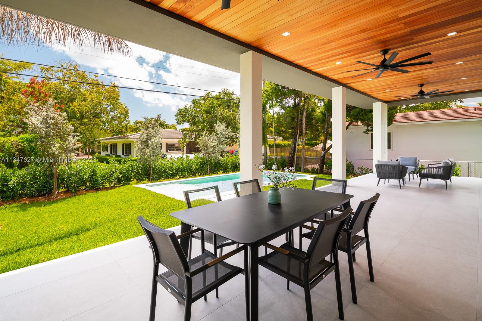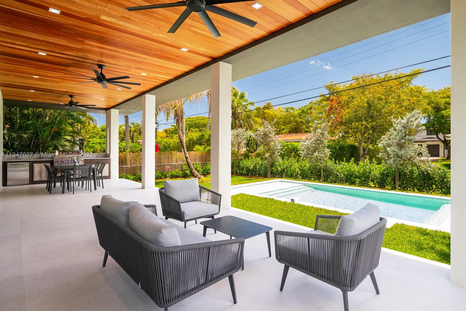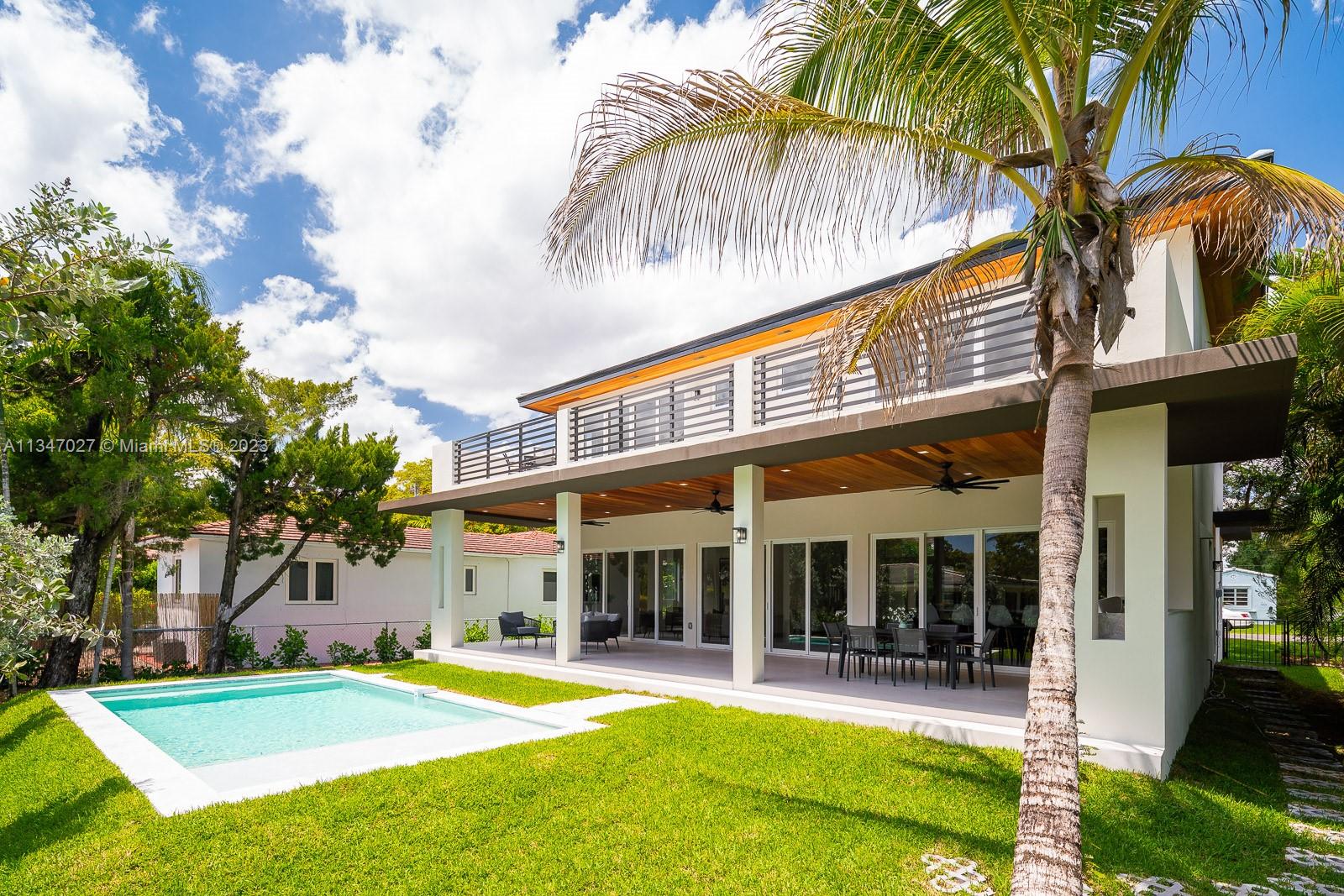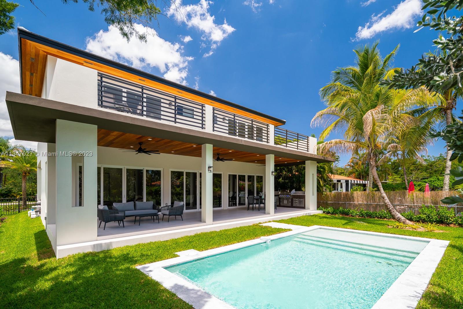 Indulge in luxury living at this magnificent 2-story residence in the highly-coveted Coral Gables. With 4 bedrooms and 4.5 bathrooms, the property is a testament to fine craftsmanship, blending both classic & modern styles in perfect harmony. The main level boasts open-concept social areas, complete with a modern Italian kitchen, showcasing a spectacular array of premium appliances. The upper floor features bedrooms with walk-in closets and a laundry room. Features such as high ceilings, eco-wood flooring, designer bathrooms with matte black fixtures, create a refined ambiance. Outside, the large pool & covered patio provide an ideal setting, whilst the fully-equipped summer kitchen is perfect for dining alfresco. Pre-installed internet & 1-car garage complete this luxurious haven.