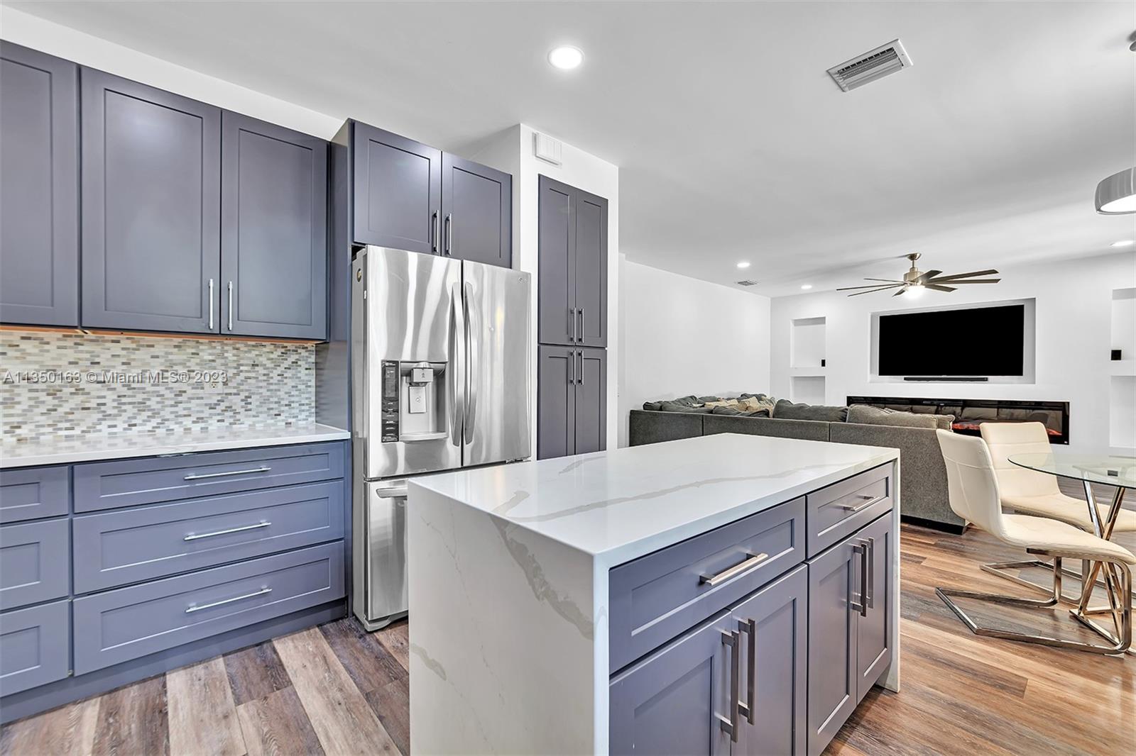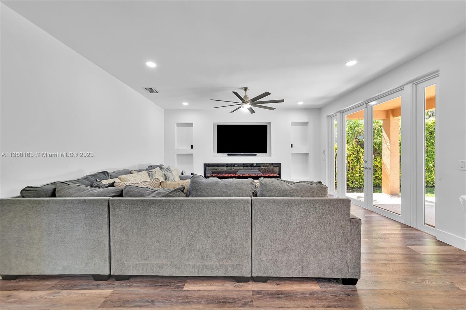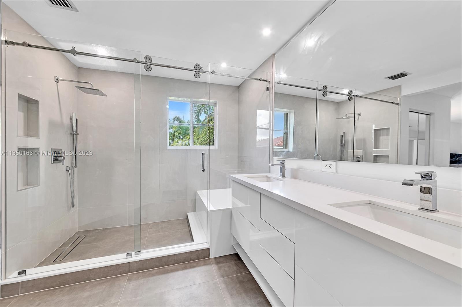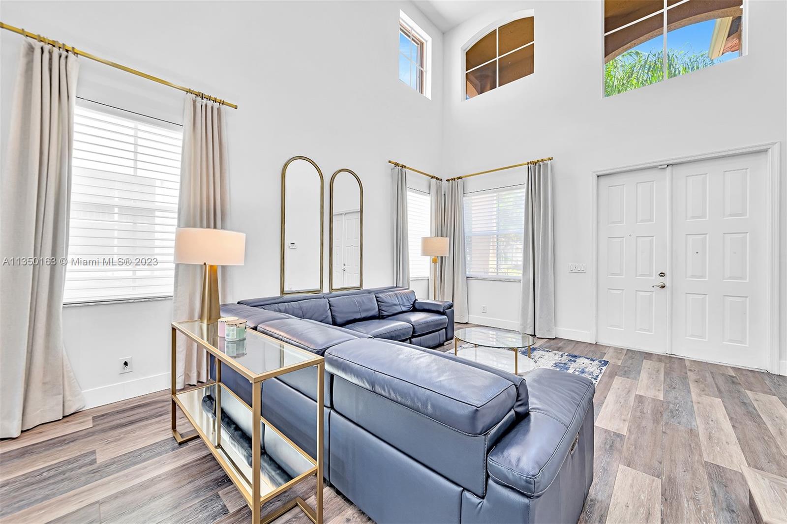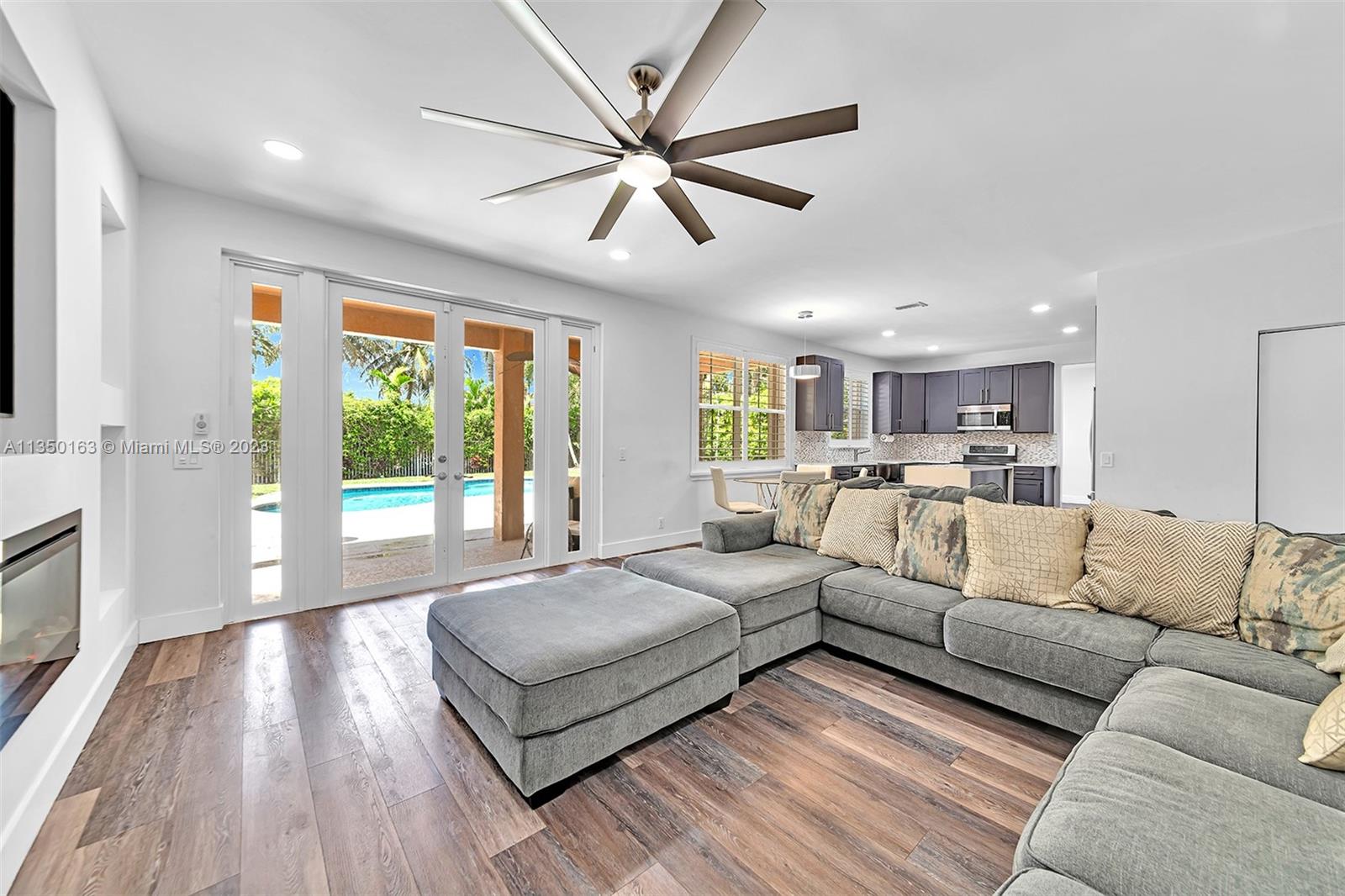 This exquisitely remodeled 6 bedroom/4 bath pool home is located in one of the most desirable neighborhoods in Weston and offers high end appointments throughout.The main floor opens to a sun-filled great room with soaring ceilings and features a gourmet kitchen with modern cabinetry, farmhouse sink, upgraded quartz countertops, waterfall quartz island, stainless-steel appliances and glass tile accents. Formal dining room, large family room with fireplace. One bedroom and bath on the first floor. Large owner's suite features walk-in closet. The master bath features seamless/frameless glass shower doors and dual sinks. Additional amenities include a private fenced backyard with resort style pool, covered patio and 3-car garage. A/C 2017. 24hr Guard Gated Community. A rated Weston schools.