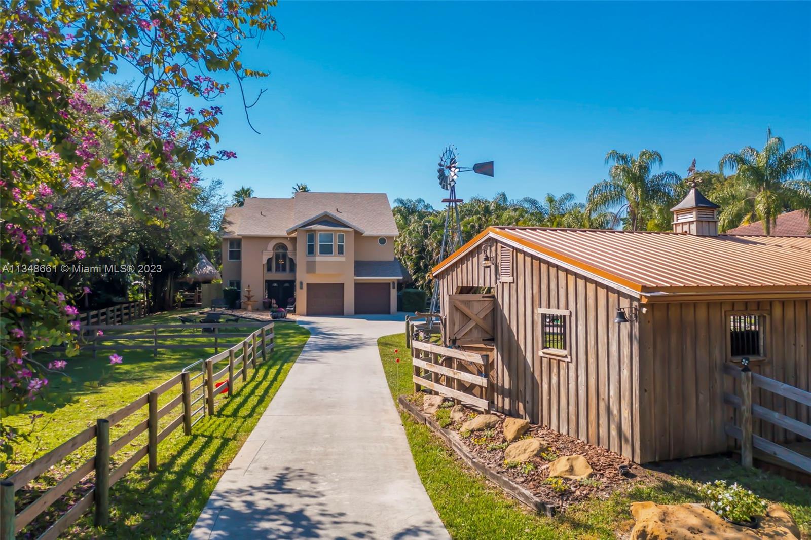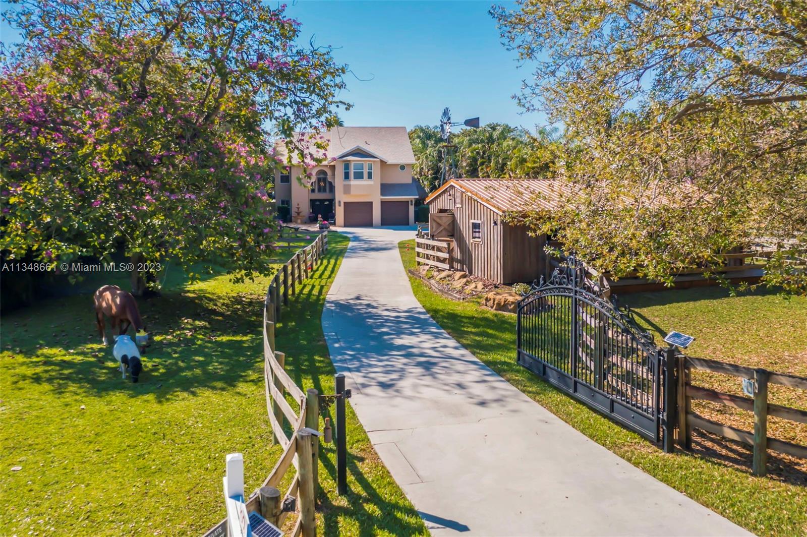 HOME SHOWS LIKE A MODEL! *BRAND NEW 2023 ROOF* & *HURRICANE IMPACT WINDOWS AND DOORS!* LOCATED IN WEST DAVIE, ON A BUILDERS ACRE, W/*NO HOA*. THE INTERIOR OF THIS HOME FEATURES STUNNING TILE FLOORING ON LOWER LEVEL, WROUGHT IRON STAIR RAILINGS, VOLUME CEILINGS, CROWN MOLDING, PLANTATION SHUTTERS, REAL WORKING FIREPLACE & A DECORATIVE ROCK WALL. OPEN KITCHEN IS COMPLETE W/GRANITE COUNTERTOPS, SS APPLIANCES, HARDWOOD CABINETRY. ON THE UPPER LEVEL YOU HAVE 3 BEDROOMS AND A LOFT THAT CAN EASILY BE CONVERTED INTO 4TH BEDROOM. ALL BATHS ARE UPGRADED W/GRANITE COUNTERTOPS, WOOD CABINETRY & MODERN SHOWERS. PERFECT ENTERTAINING BACKYARD W/ 2 OVERSIZED TIKI HUTS, BUILT-IN BAR, HUGE SALTWATER POOL, SPA, WATERFALL & LUSH LANDSCAPE. ADD FEATURES: PERMITTED 2 STALL BARN, GATED ENTRY, CIRCULAR DRIVEWAY.