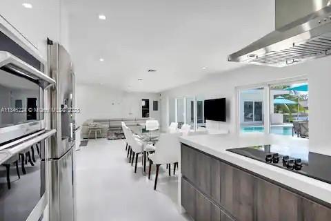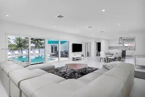 Gorgeous completely renovated Mid-Century Modern Designed Home 5 BR 3 Bath with Heated Pool, Cabana and Lake front view. All Renovations were completed with Permits. Relax outside at the kidney shaped pool, enjoying the lake view, under the large umbrella awning with seating for 10. Spacious kitchen with Quartz Island and Italian style cabinets and waterfall counter tops. Master Bedroom with en-suite spacious bathroom with soaking tub. Built in closets thru-out the home. Impact windows and doors. Brand new sprinkler system. Great quite neighborhood. Great short term rental with City permits and proven income. Sold completely furnished. Minutes to Aventura Mall, Shopping, Fine Dining, A+ Schools and Houses of Worship. A must see!
