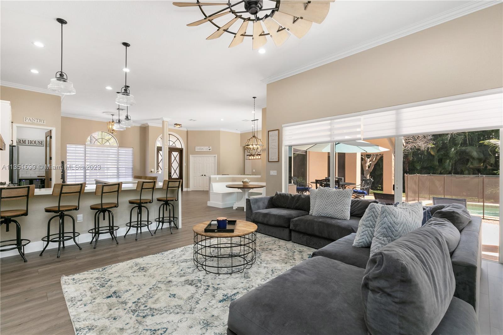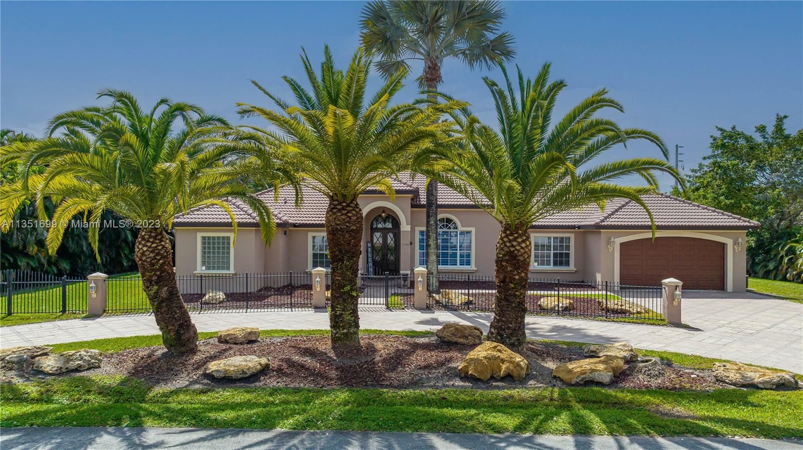Your dream home is here located in the equestrian Town of West Davie on a builder's acre. The home features a split bedroom floor plan with 5 bedrooms, and 5 bathrooms, plus a bonus room/office and a 2-car garage with a large circular driveway for up to 10 cars. Open living spaces and large floor plan with 12' ceilings. Brand new gourmet kitchen has wood cabinetry, quartz countertop and stainless steel gas appliances with a double oven and wine fridge. Newly updated primary bath with dual sinks, custom cabinets, and a dual shower stall. Two brand new AC units, 4k security system, wifi/smart thermostats/lights/garage door, Heated pool/Jacuzzi. Glass sliding doors that lead out to the rear patio terrace, where you will enjoy a perfect setting for relaxing and entertaining.