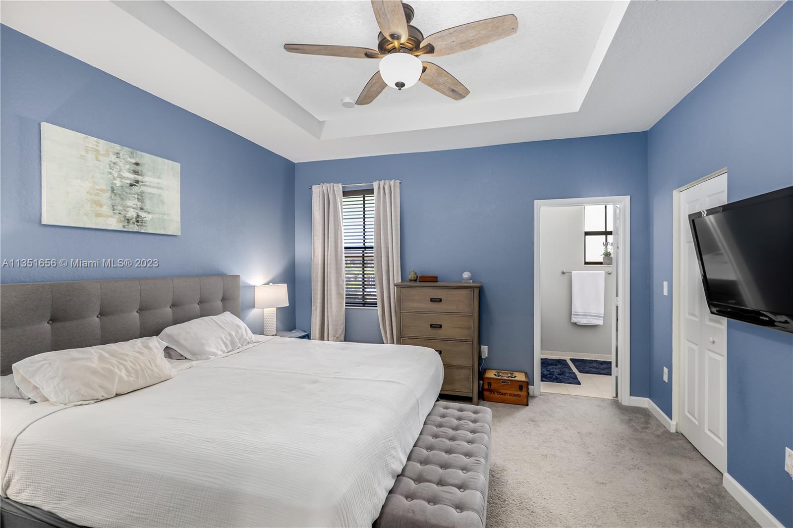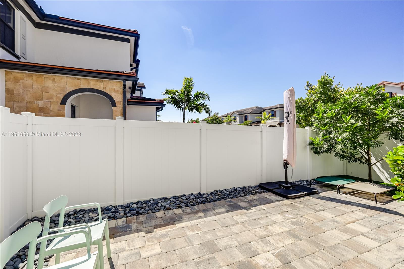 Built in 2019 & Priced to sell end unit, this well kept townhouse features an open concept. Carpeted stairs and upstairs for maximum comfort. 3 bedrooms upstairs with two full baths and a laundry room for convenience. The kitchen has granite counters, stainless steel appliances and a backyard with pavers, privacy fence with gate to the outside, and synthetic grass. The driveway is big enough for 3 cars and plenty of guest parking across the street. Aquabella has 2 clubhouses with a gym, a pool, and cabanas. The Main clubhouse has a kids splash park, jacuzzi, and outdoor kitchen. Come and check out the house and the community, look forward to seeing you!