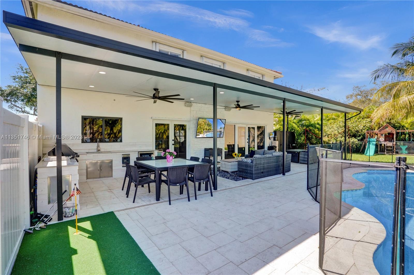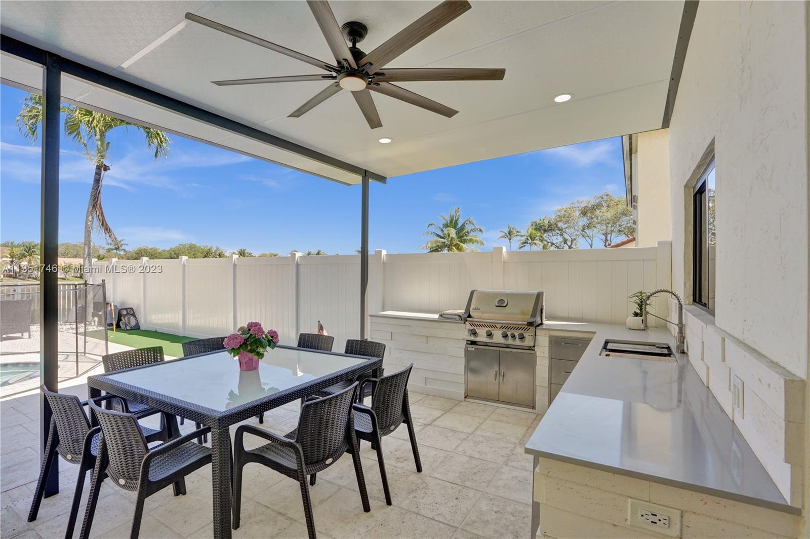 Beautiful 4-bedroom 2.5-bathroom two story home. Park in the newly insulated garage with A/C or one of the 6 spots in the driveway. Enter thru the brand new gorgeous double doors into the sitting, living & dining area with natural light & plantation shutters on all the windows. Tile floors throughout the first floor, kitchen with SS appliances, gas range, & granite countertops. 4 Bedrooms upstairs, very spacious master with built-in office space, leading into the walk-in closet (w&d inside) & updated primary bath with dual sinks & vanity. Enjoy your the backyard hosting a bbq in the brand-new outdoor kitchen, overlooking the lake & enjoying a dip in the salt water, heated pool. Have some fun jumping on the in-ground trampoline! & don’t forget to get creative in the SheShed/ManCave.