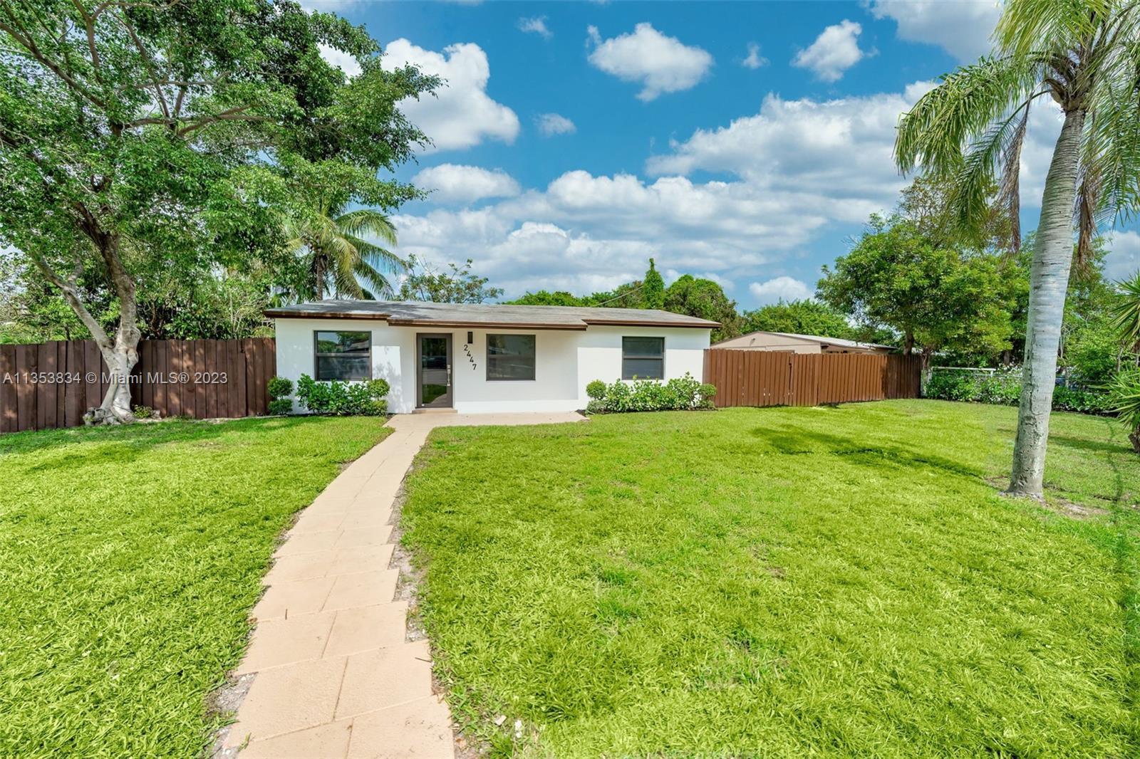Beautiful COMPLETELY remodeled home minutes away from the Hollywood beaches. Enjoy your oversized corner lot, completely fenced for privacy and an inground backyard pool with new pool equipment. Perfect for entertaining! No expense has been spared. This Home comes with hurricane impact windows, stainless steel appliances, wood shaker cabinets, bathroom and lighting fixtures, as well as wood-like tile throughout. The home boasts a chic kitchen backsplash and elegantly tiled bathroom. This home is ideal for a single family, rental investment property or Airbnb. Come and see it today!