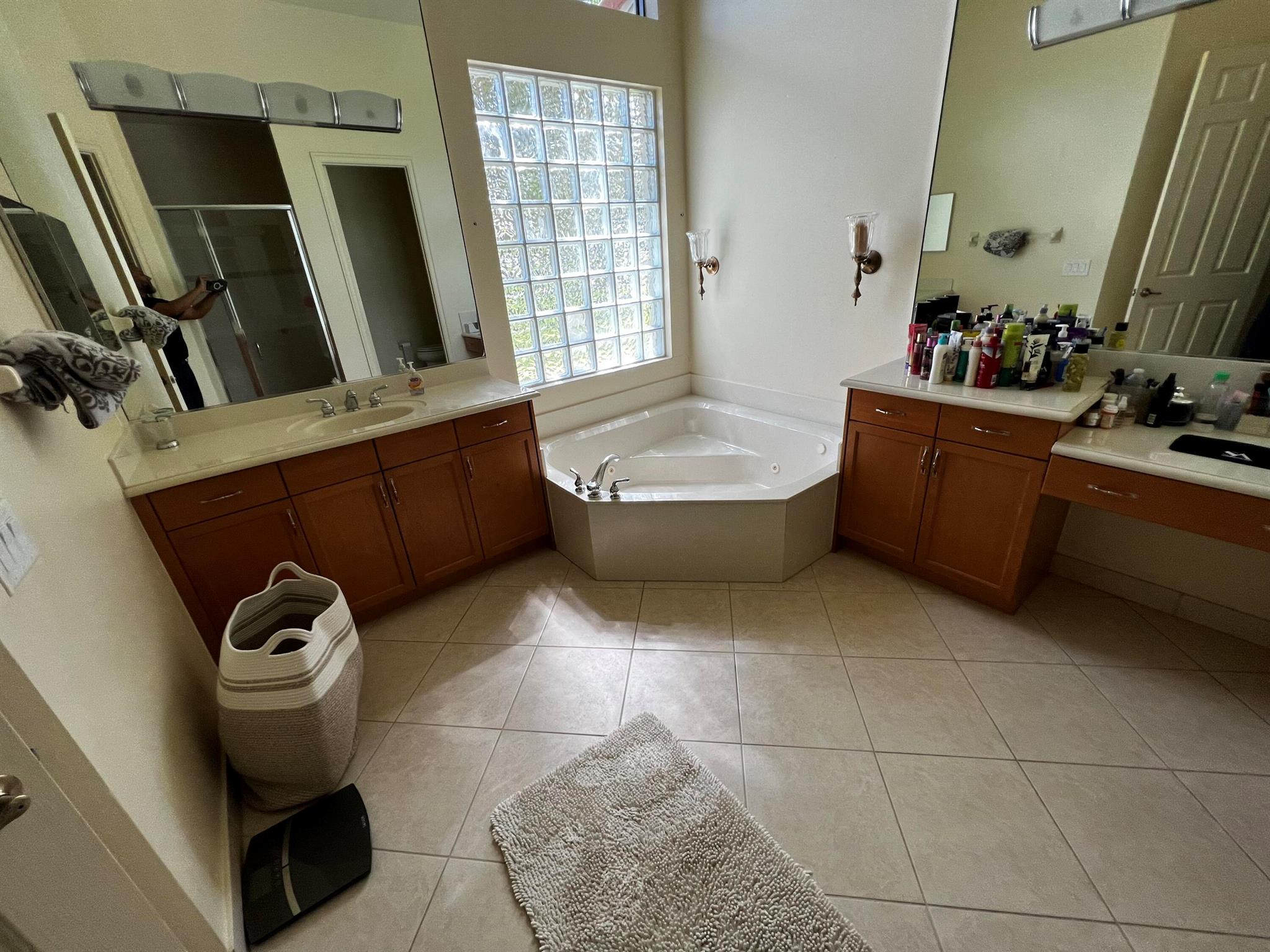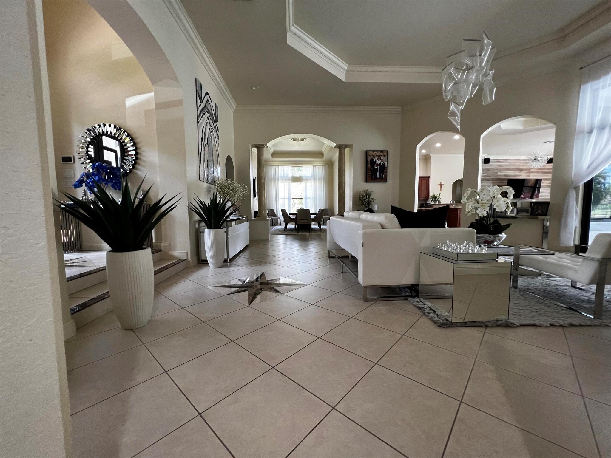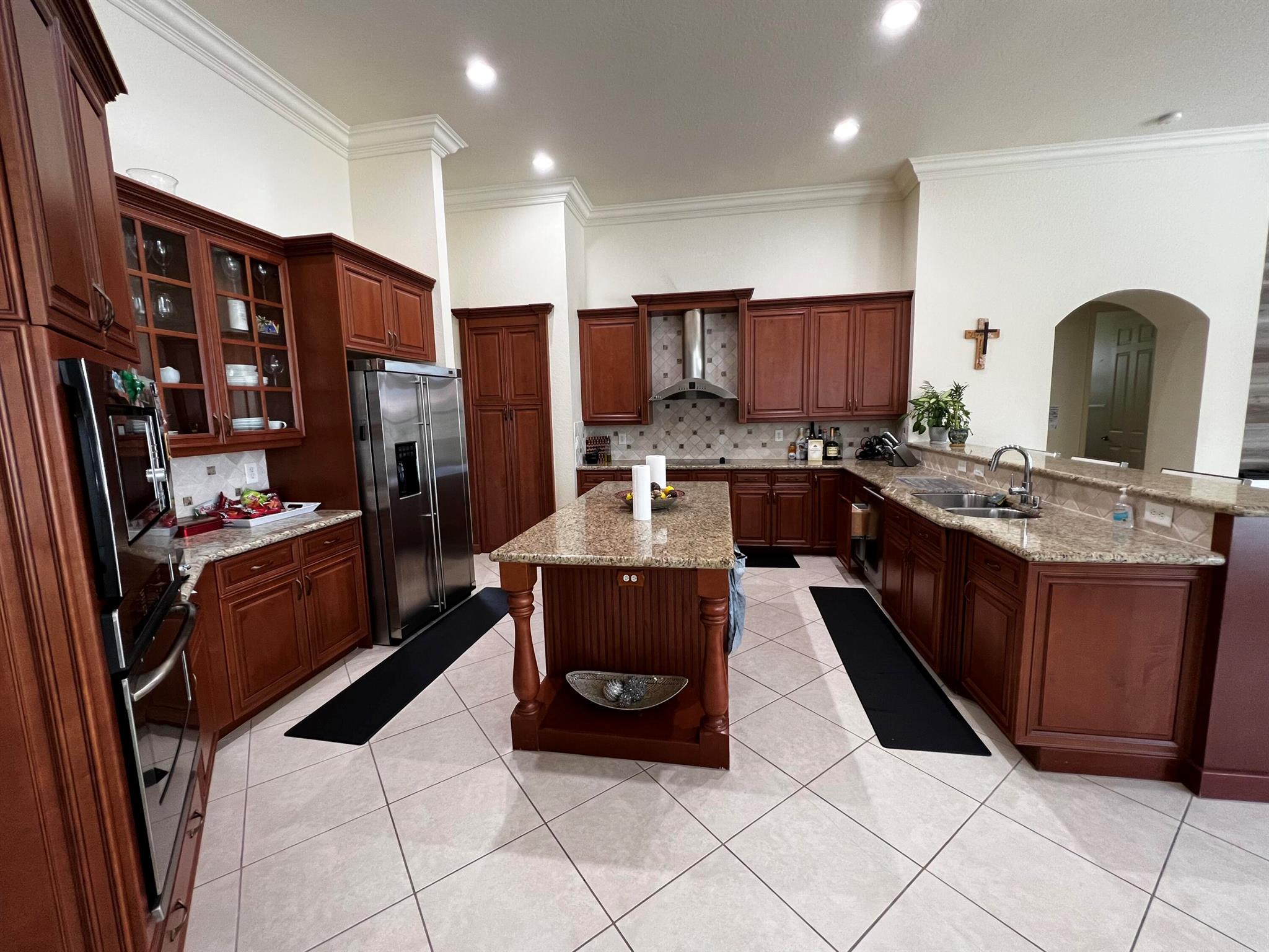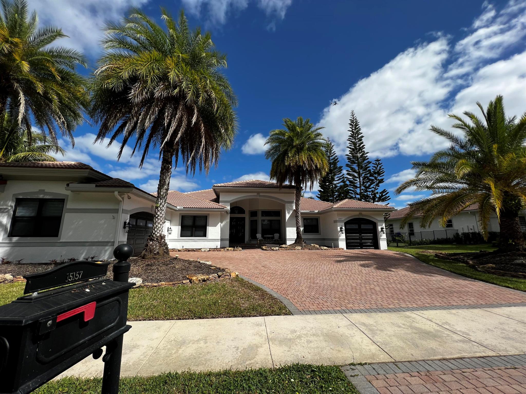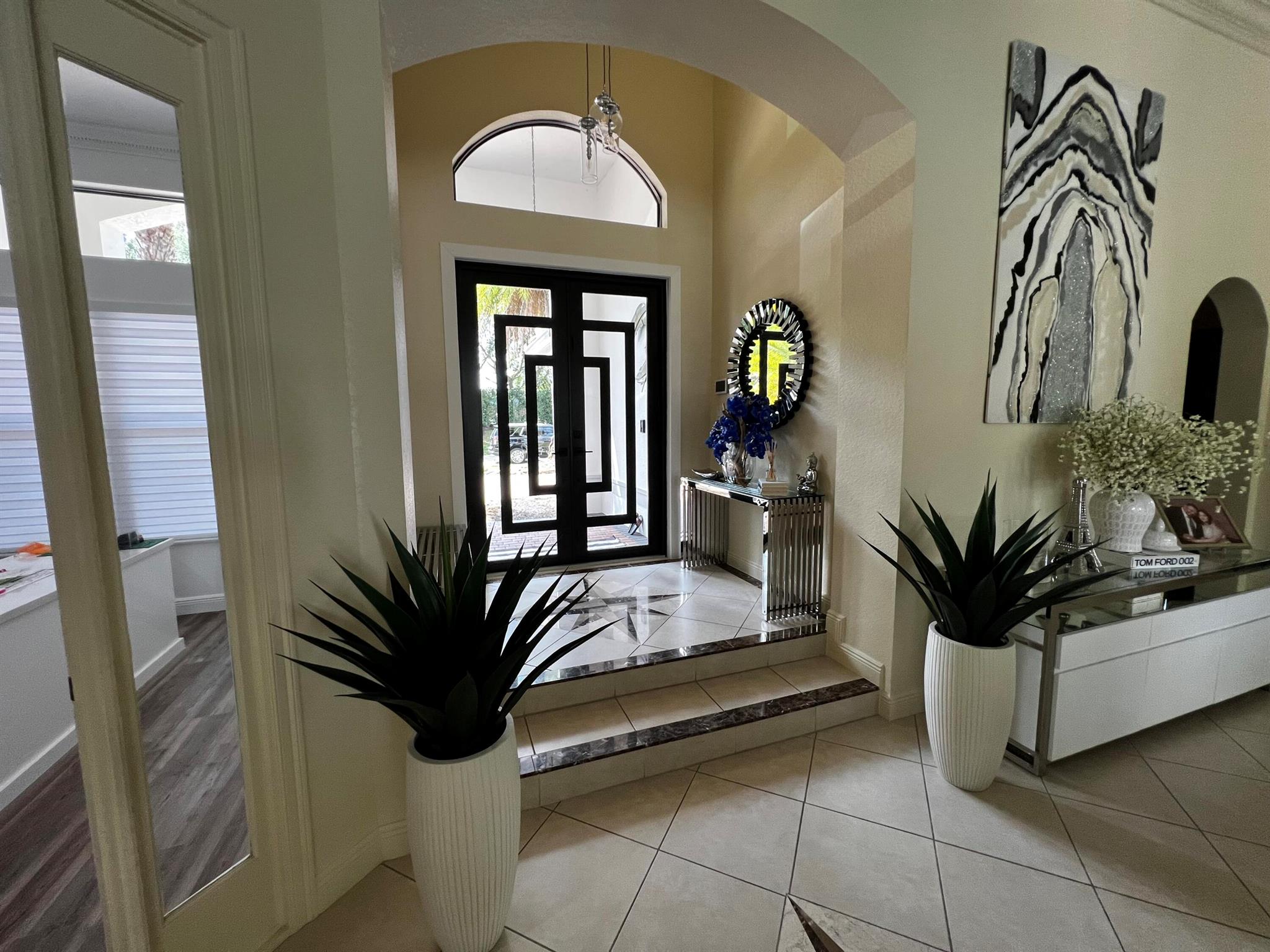 Located in prestigious Riverstone community uniquely situated on the lake with just over 39K Sqft Land. Freshly painted 5 Bedrooms PLUS DEN and 4 Full and 1 Half Baths. Large Lakeview Master Bedroom has new laminate flooring with sitting room and access to the Patio. Spacious Bathroom with Jacuzzi Tub and separate shower. Kitchen with Granite countertop and Island. GE PROFILE SS Appliances, walk-in Pantry. Gorgeous Lakeview from the entry raised foyer, family room. Draperies & Furniture sold separately. Backyard is your little private resort with heated spa/pool, updated Gazebo, built in kitchen for any chef overlooking panoramic water views perfect for peace, relaxation & entertaining family & friends. Complete IMPACT Windows & Doors, New Water Heater