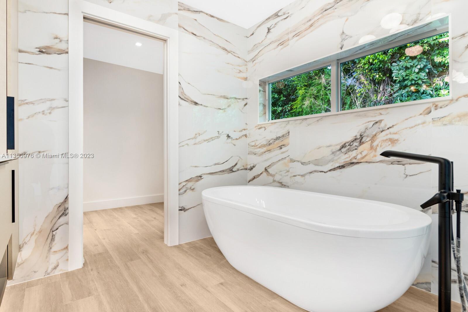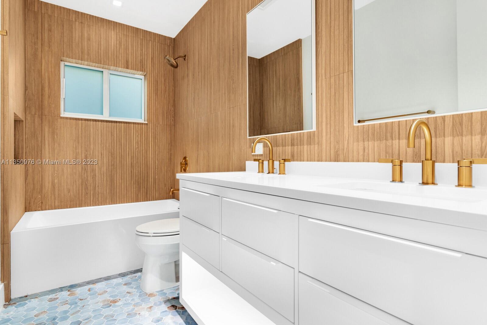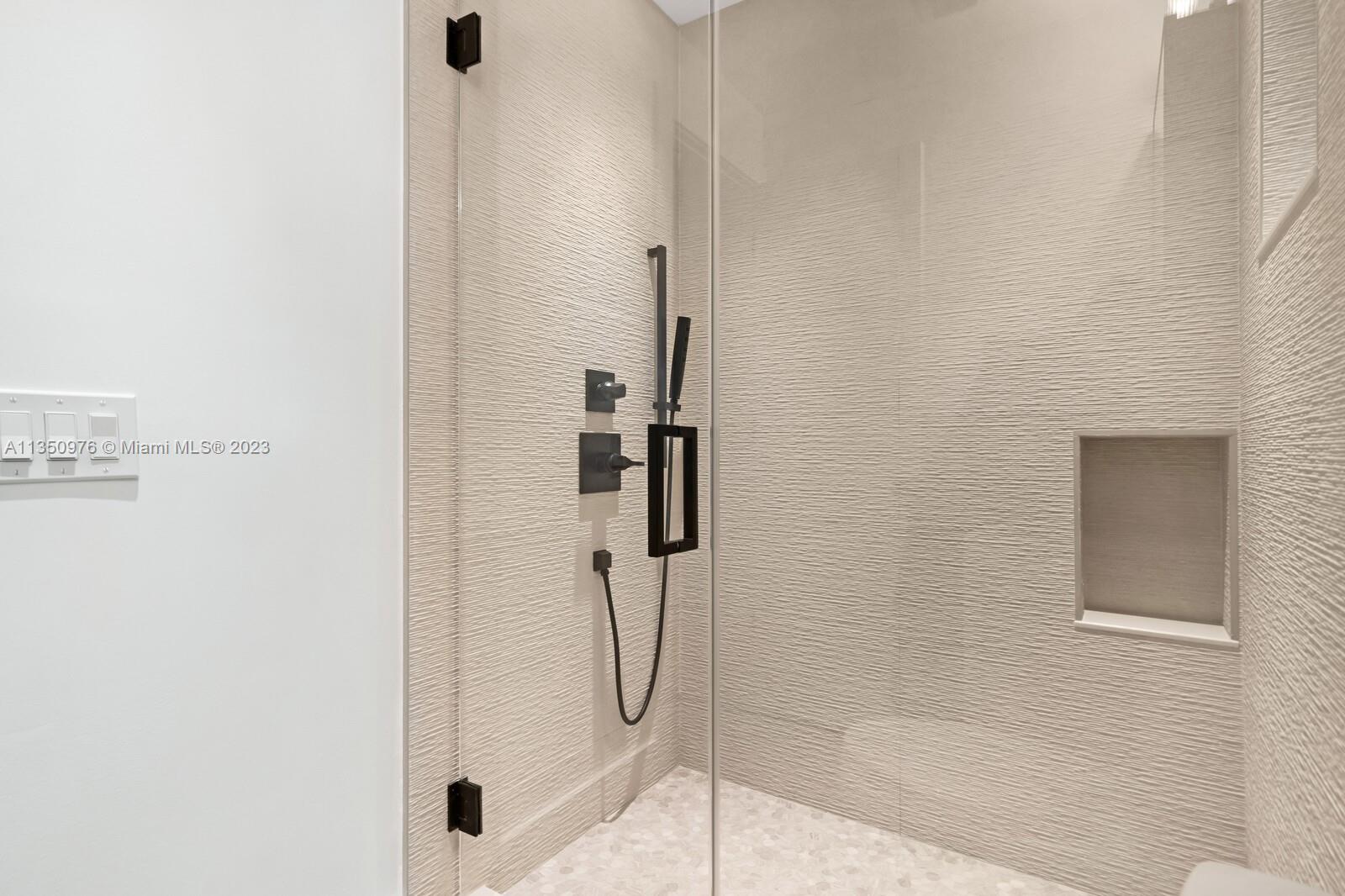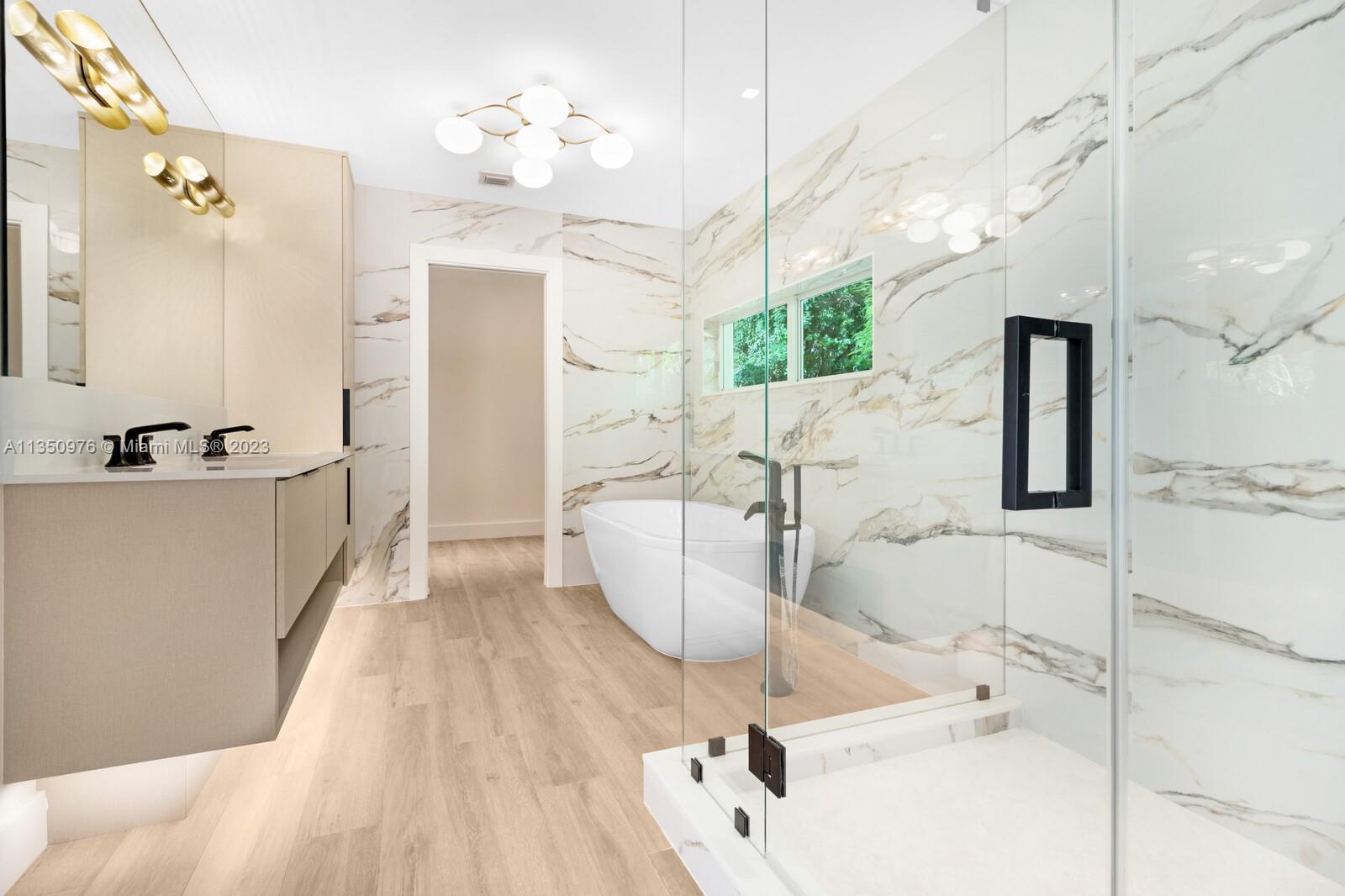 Florida living at its finest with custom curated home by local designer builder in desirable area of Miami Shores. Entry Foyer opens to expansive living overlooking lush backyard & pool. Two wings separate the home with 2 VIP suites equal in size to create 4 bedrooms, 3 full bathrooms & 1 half bath. The primary overlooks pool with private access, 2 walk-in closets, along with 2-person shower & soaking tub. With design in mind, the kitchen delivers custom cabinetry with oversized island that allows seating for more than 6 and commercial grade appliances including gas stove with dual oven. Plus, separate laundry room off kitchen. Retreat outdoors to 300 sq ft covered patio, 15x26 pool with water feature & green space. Rear parking for 2 vehicles. All new with permits.