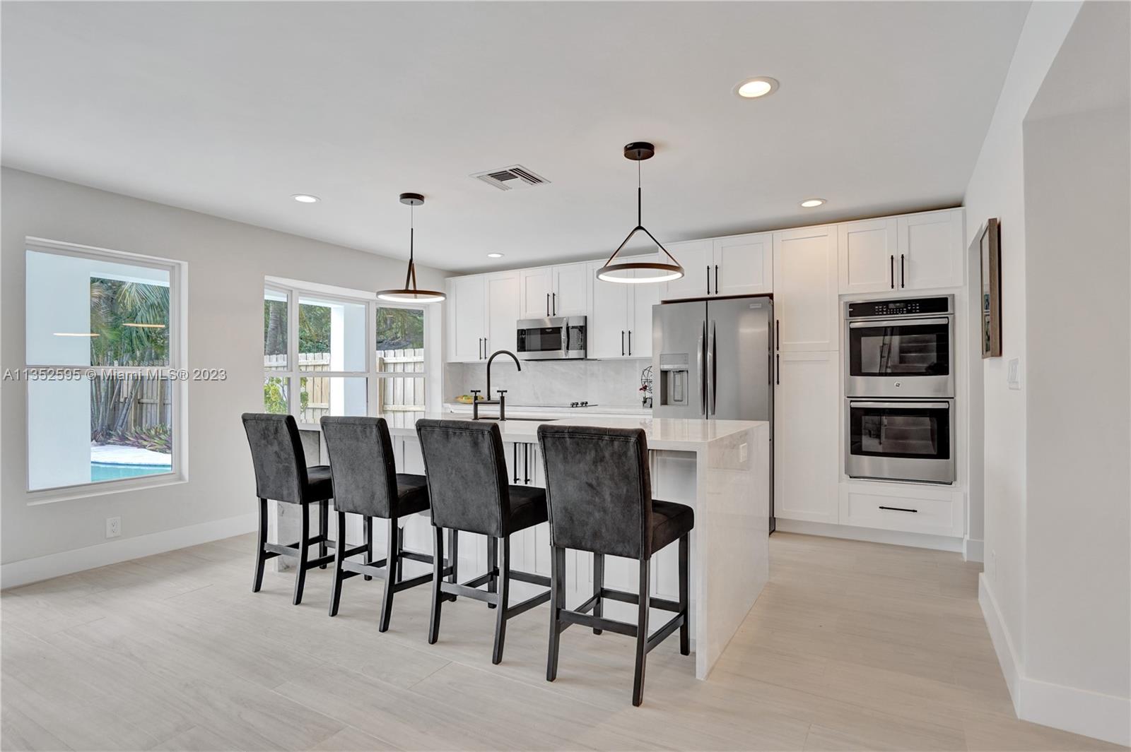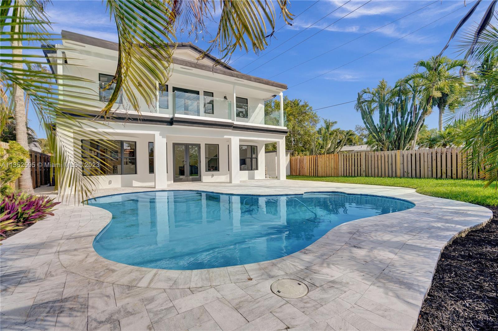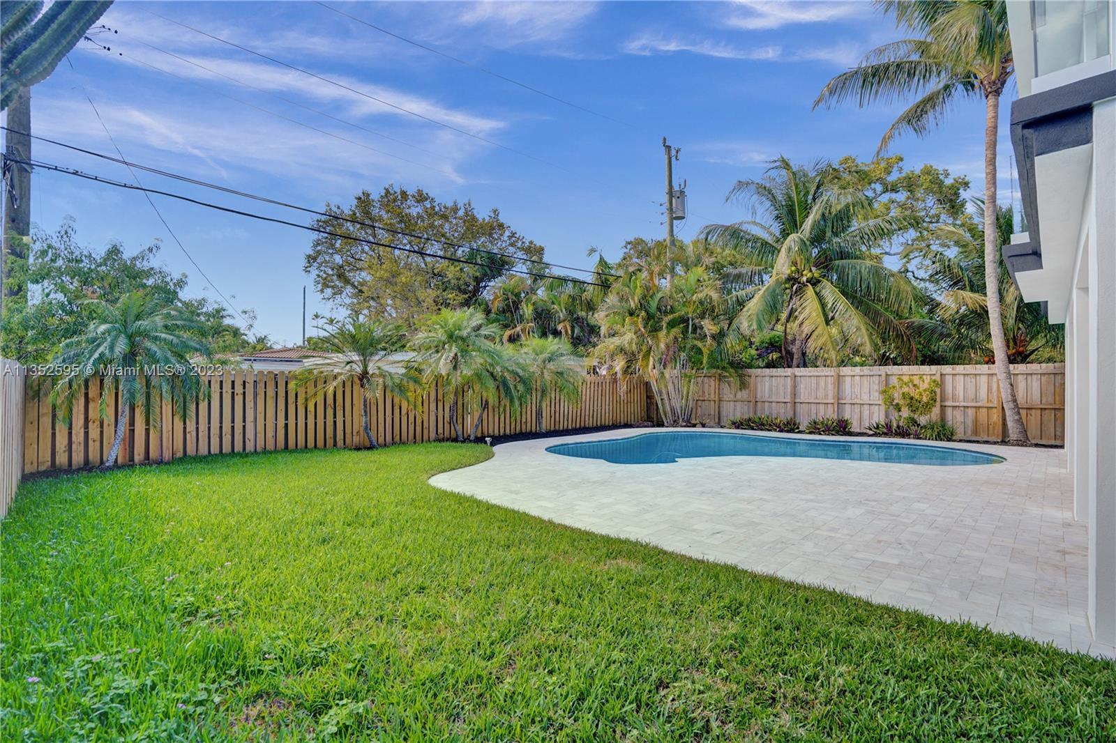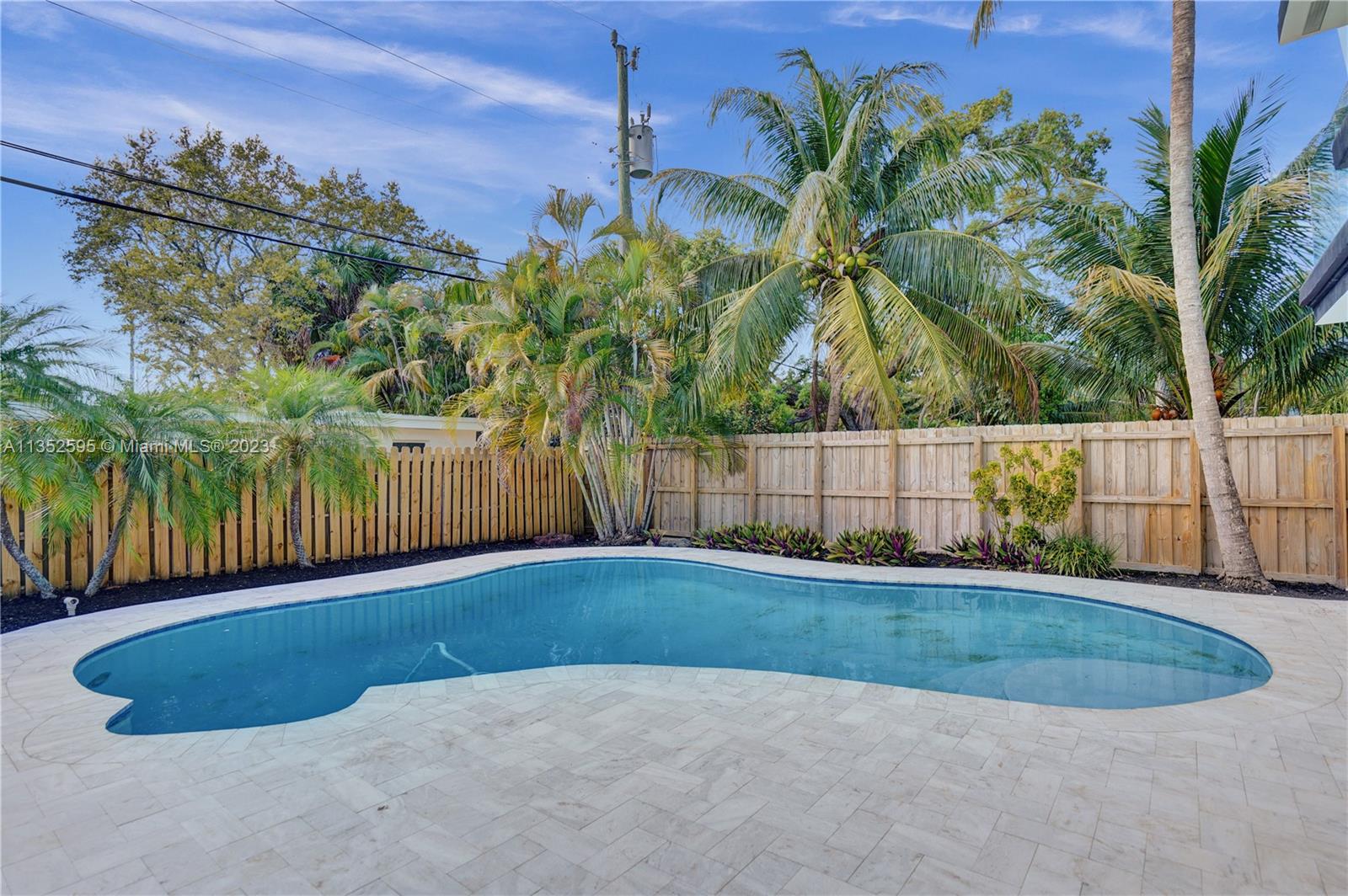 Bright updated 4 bedroom home with a pool 10-minute walk to Las Olas. Open kitchen and living room with views out to the backyard. The kitchen has a nice-sized island made with real stone, which is great for entertaining. There are three bedrooms on the first floor and the primary is on the second floor with a beautiful balcony with a glass banister where you can see out to the pool and backyard when you are relaxing in bed. The primary closet is a great size, made for someone who loves to have a lot of closet space. It even has a skylight to bring in extra light. The primary bathroom has a large walk-in shower, a nice soaking tub, and double sinks. The backyard is so nice for entertaining and relaxing, with a nice-sized pool to cool off from the Florida heat. House is ready to move into.