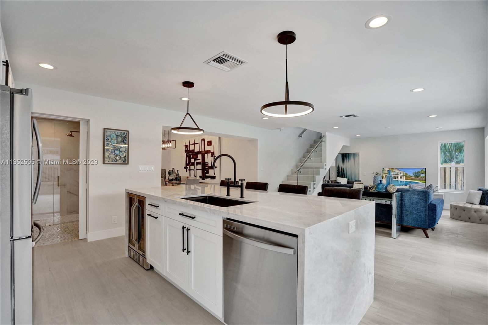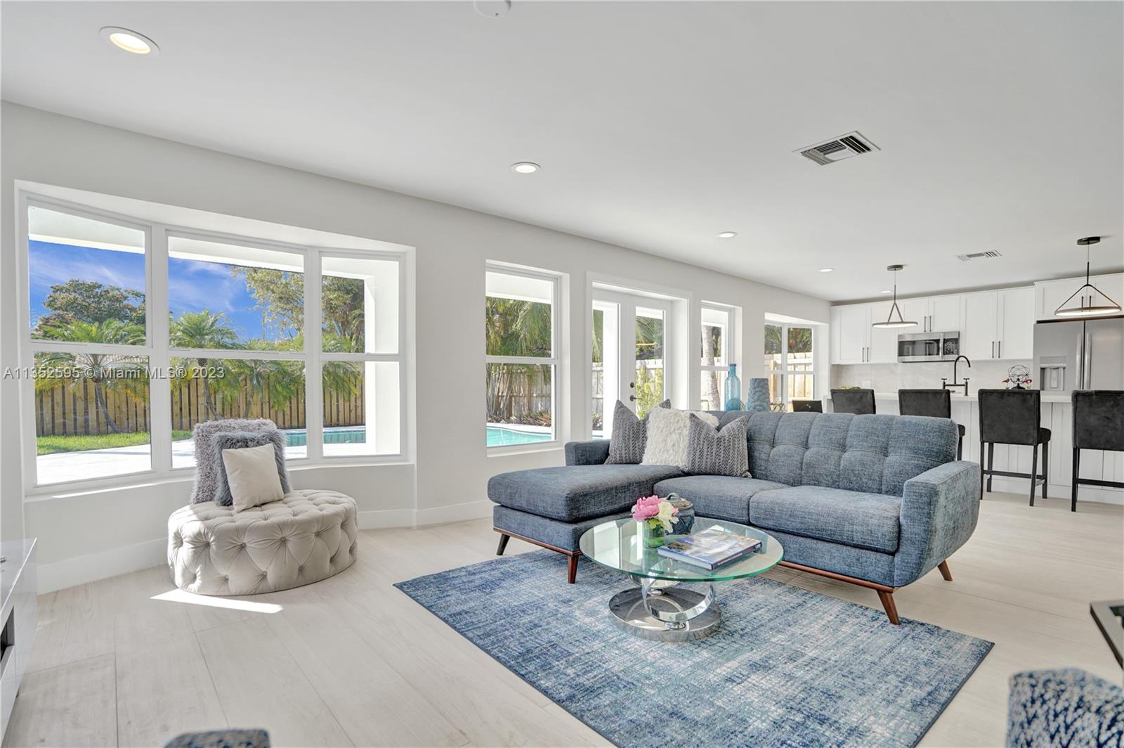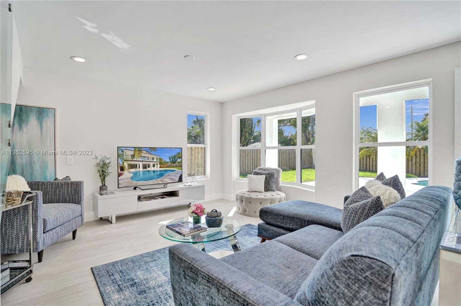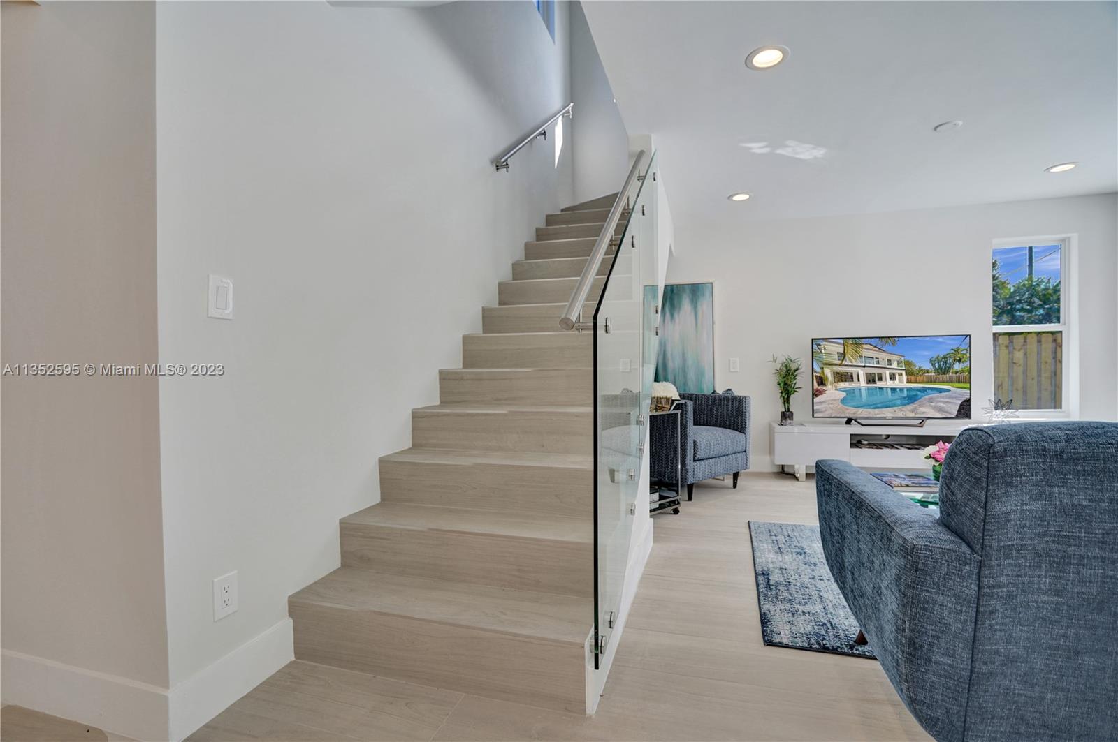 Bright updated 4 bedroom home with a pool 10-minute walk to Las Olas. Open kitchen and living room with views out to the backyard. The kitchen has a nice-sized island made with real stone, which is great for entertaining. There are three bedrooms on the first floor and the primary is on the second floor with a beautiful balcony with a glass banister where you can see out to the pool and backyard when you are relaxing in bed. The primary closet is a great size, made for someone who loves to have a lot of closet space. It even has a skylight to bring in extra light. The primary bathroom has a large walk-in shower, a nice soaking tub, and double sinks. The backyard is so nice for entertaining and relaxing, with a nice-sized pool to cool off from the Florida heat. House is ready to move into.